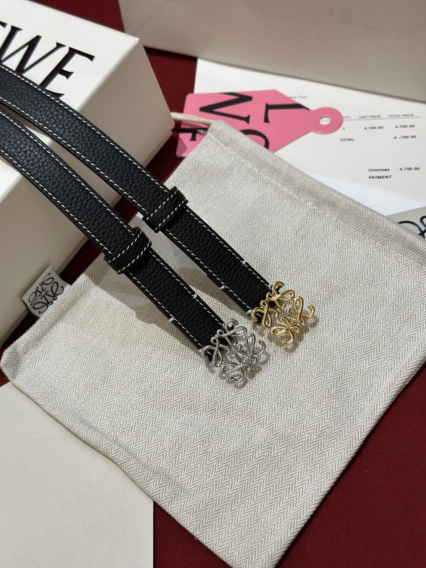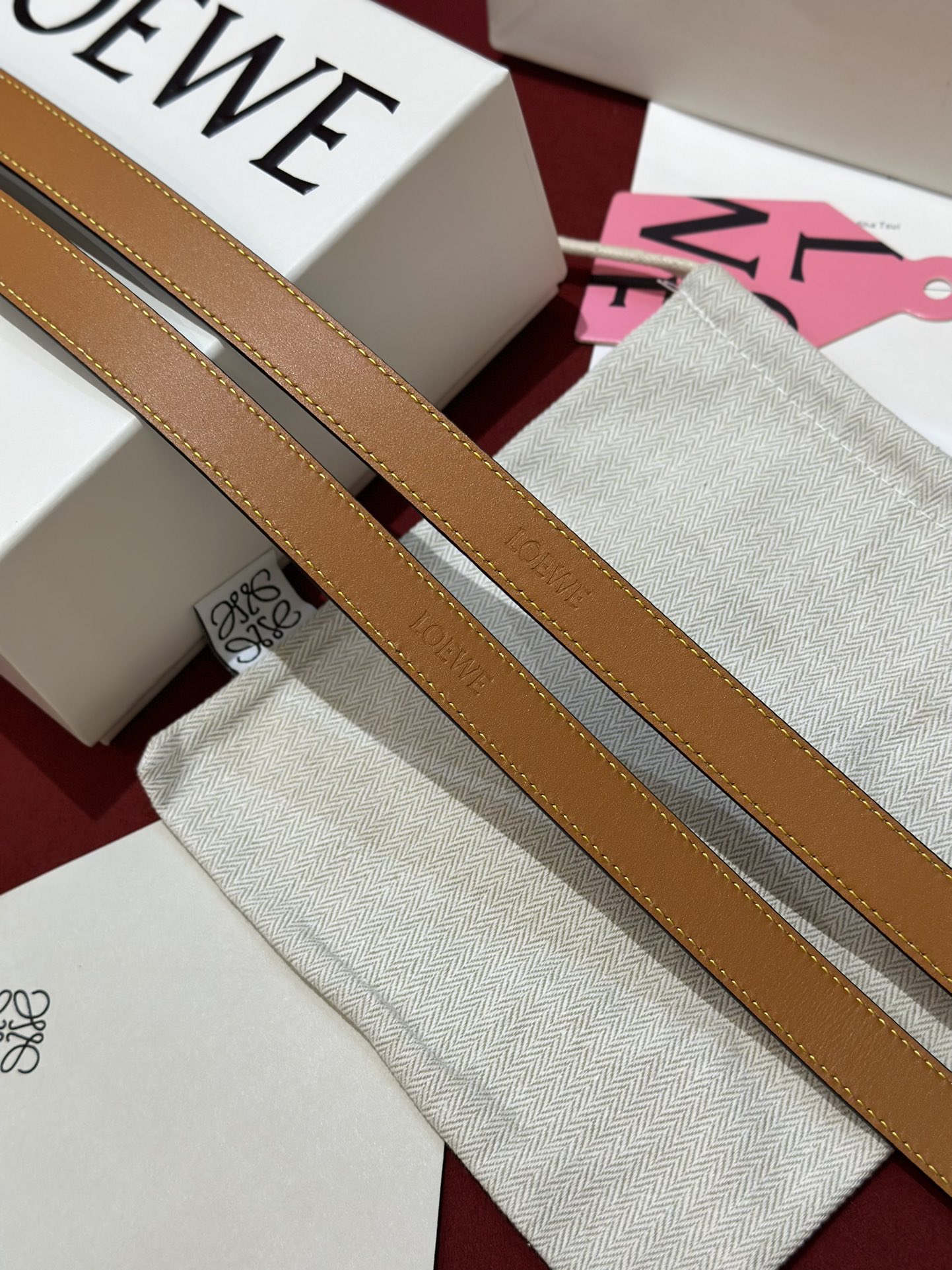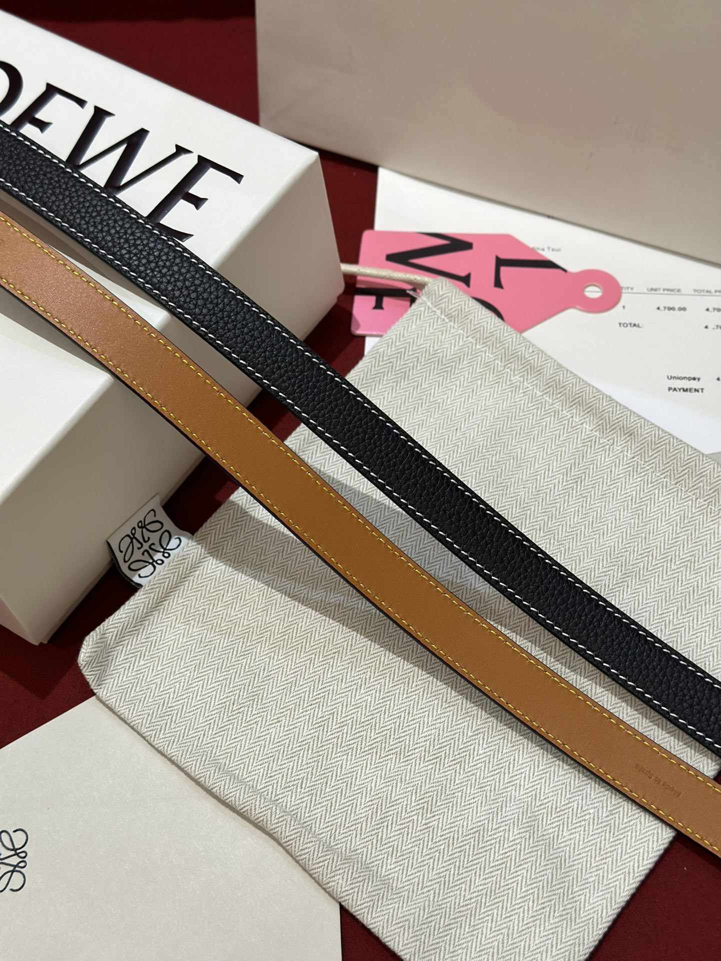 这款皮带是AAAAA 1:1 质量 (非常棒). 使用了和原版一模一样的材料. 商标部分也保持了和罗意威/Loewe一样. 图片拍摄是实物皮带拍摄, 您所收到的实物保证和我们图片一模一样.
