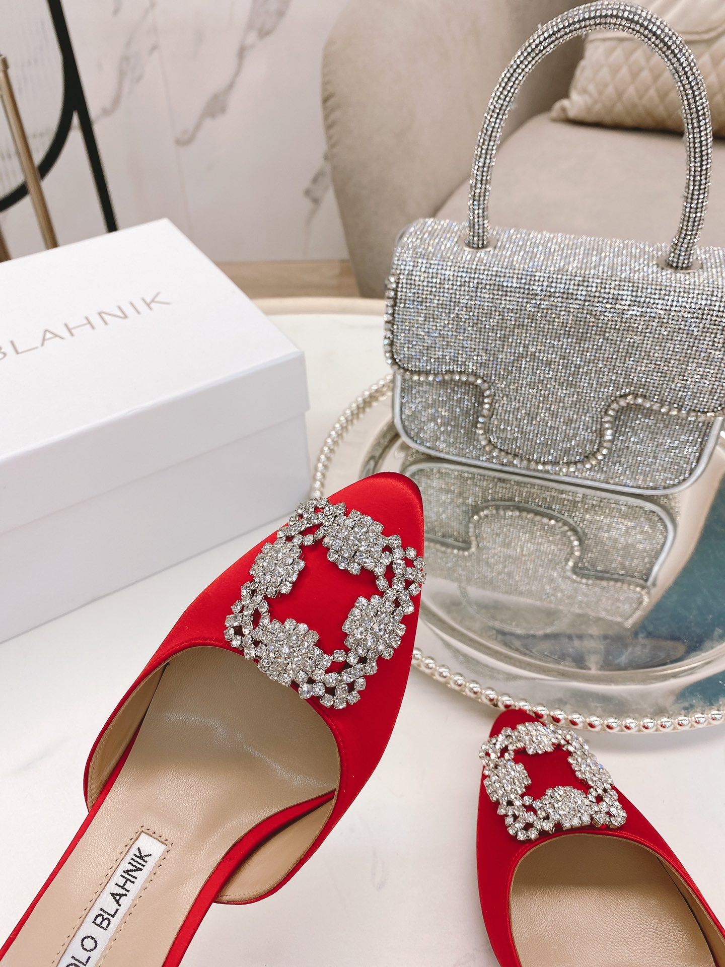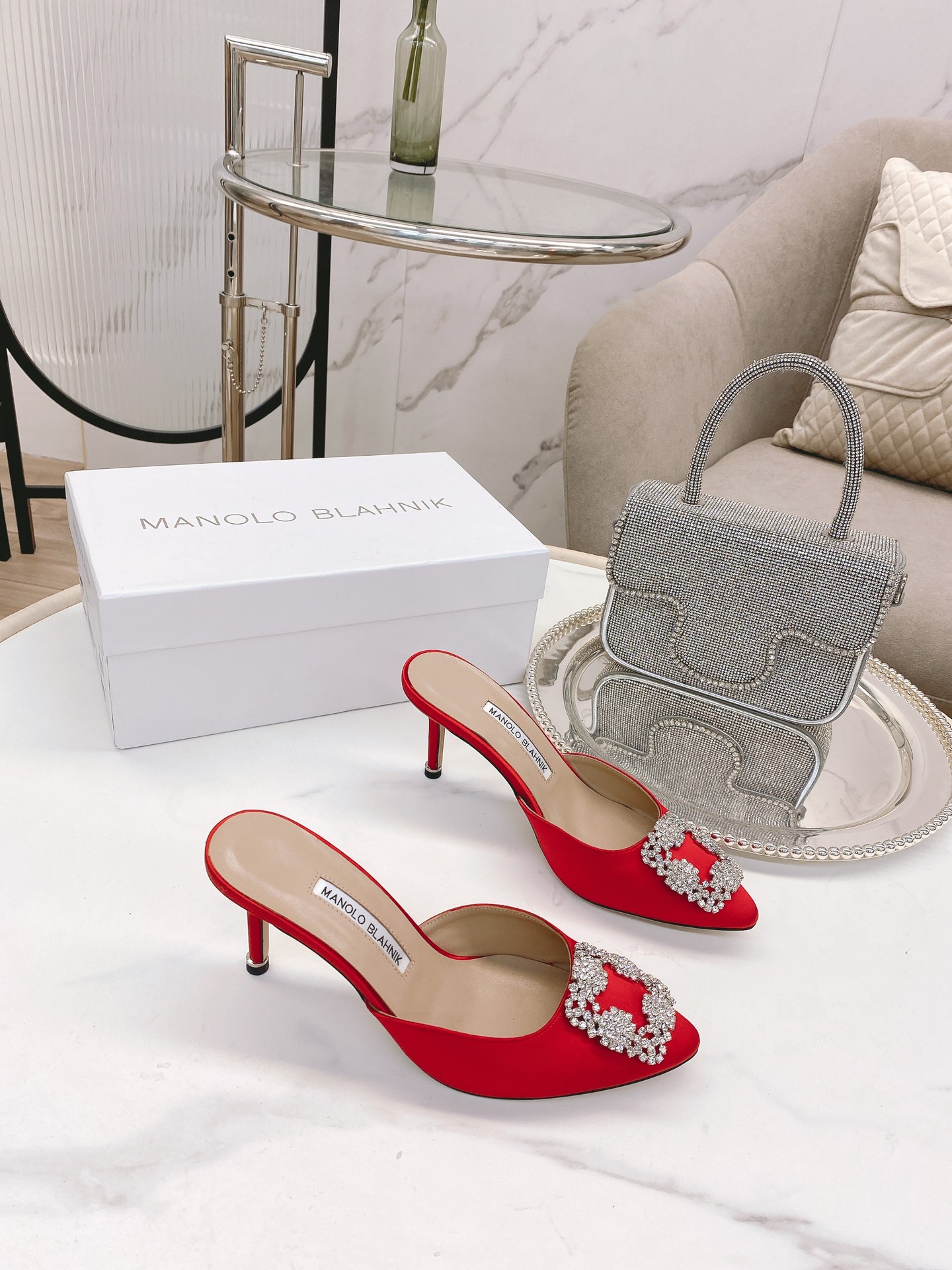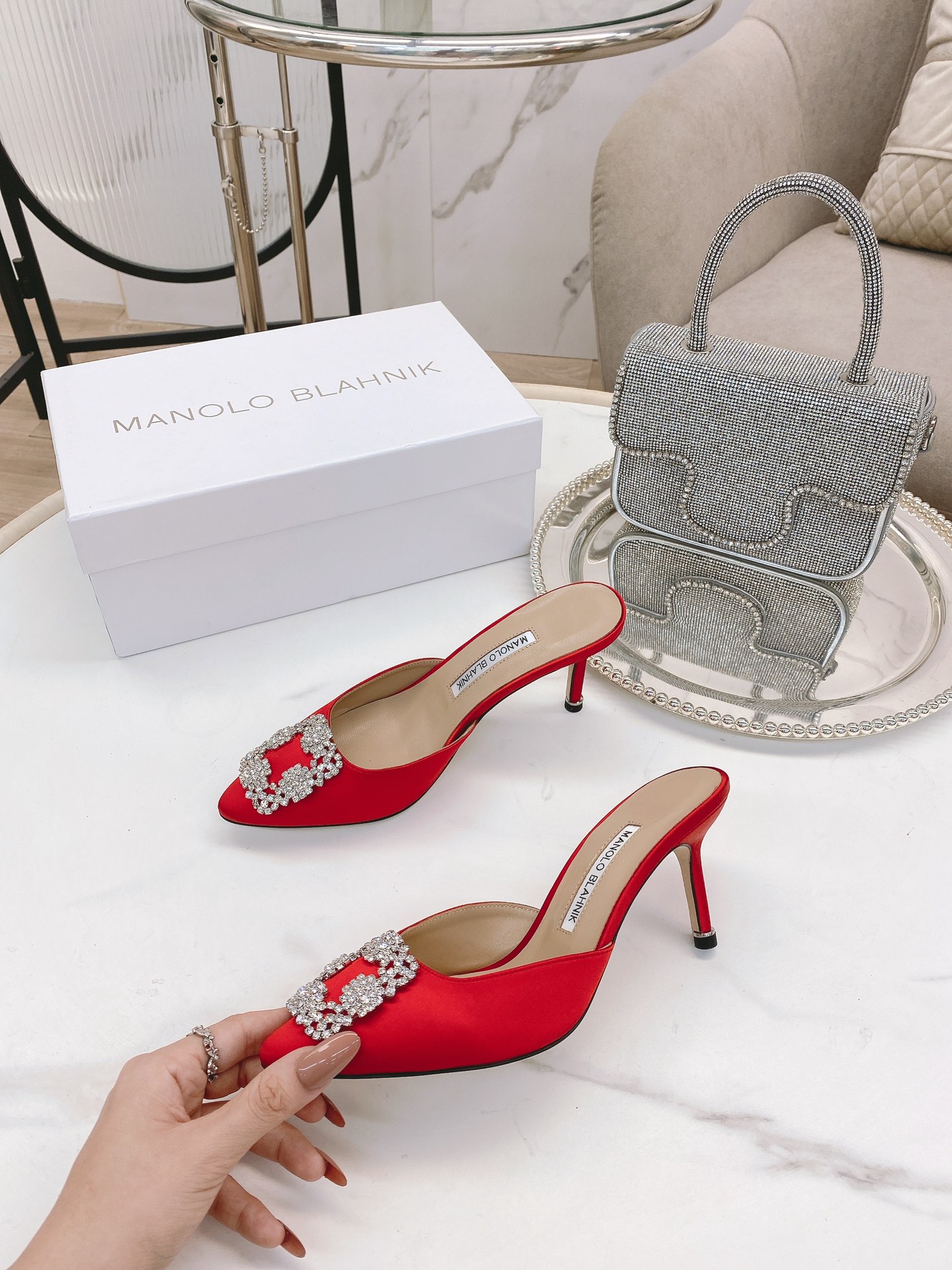 这款鞋子是AAAAA 1:1 质量 (非常棒). 使用了和原版一模一样的材料. 商标部分也保持了和马诺洛·布拉尼克/Manolo Blahnik一样. 图片拍摄是实物鞋子拍摄, 您所收到的实物保证和我们图片一模一样.