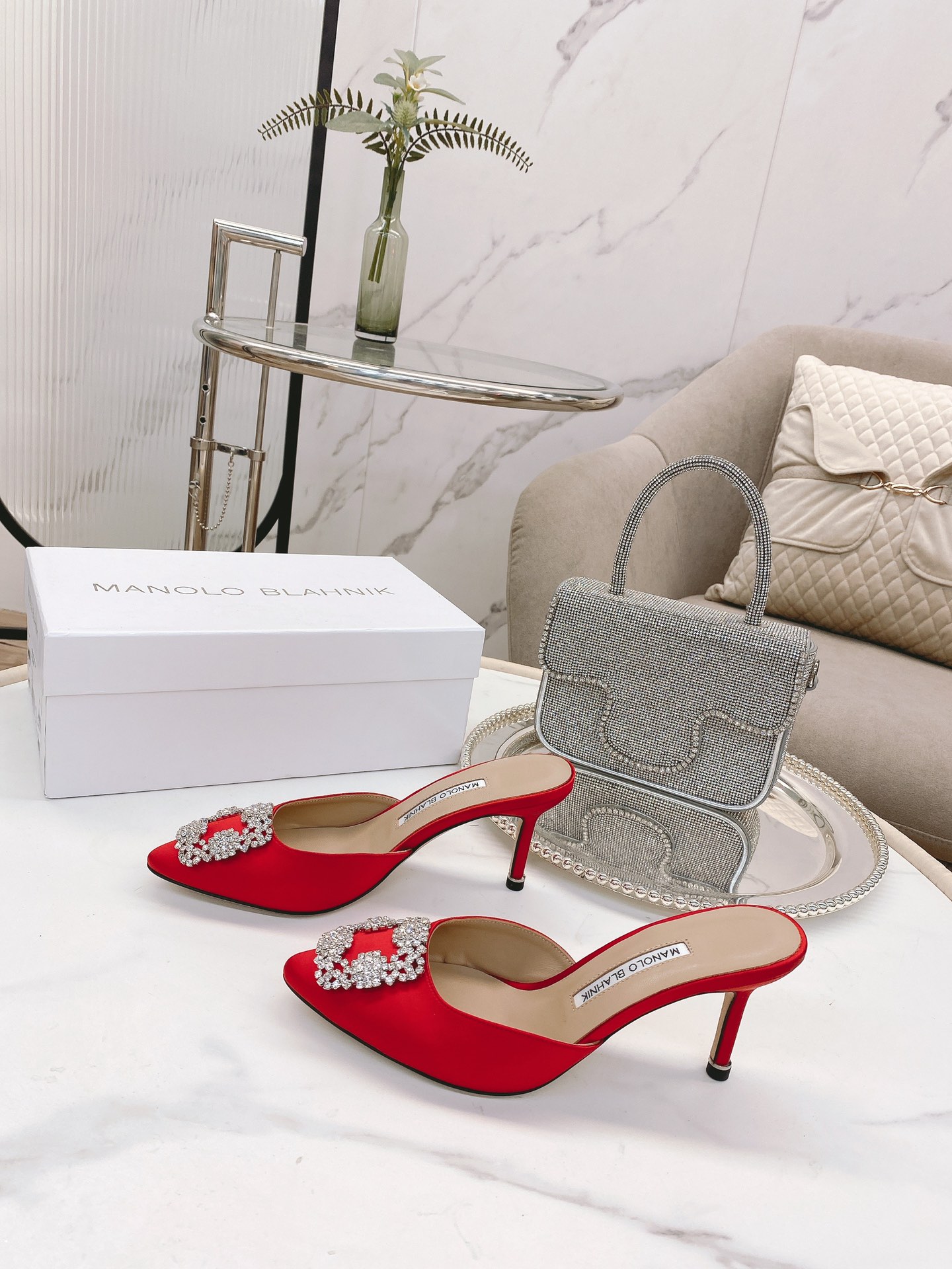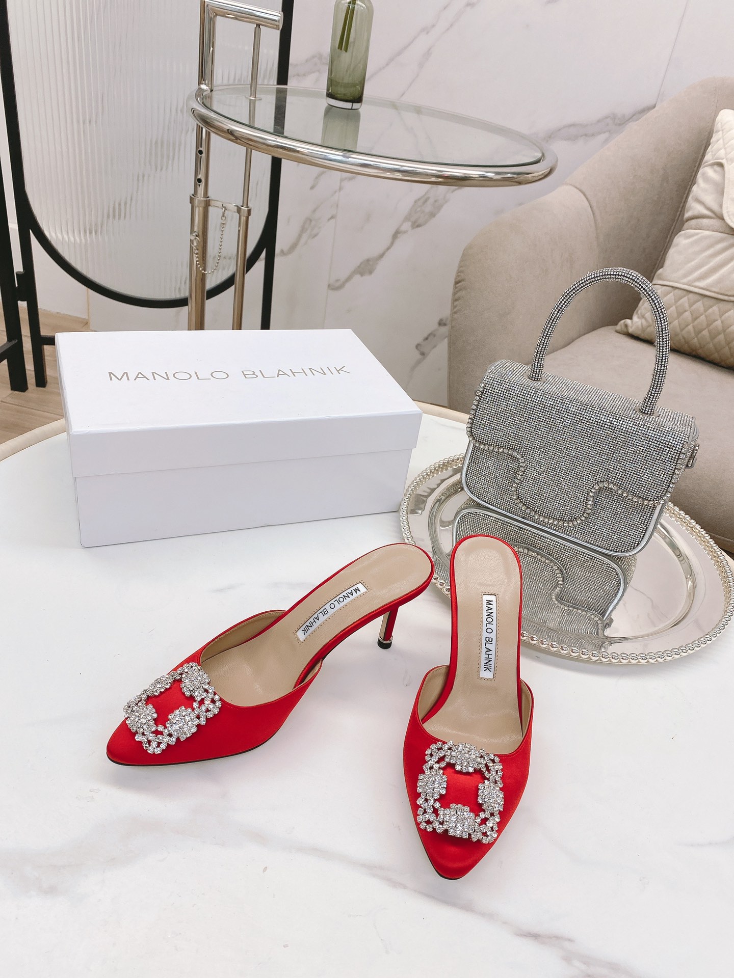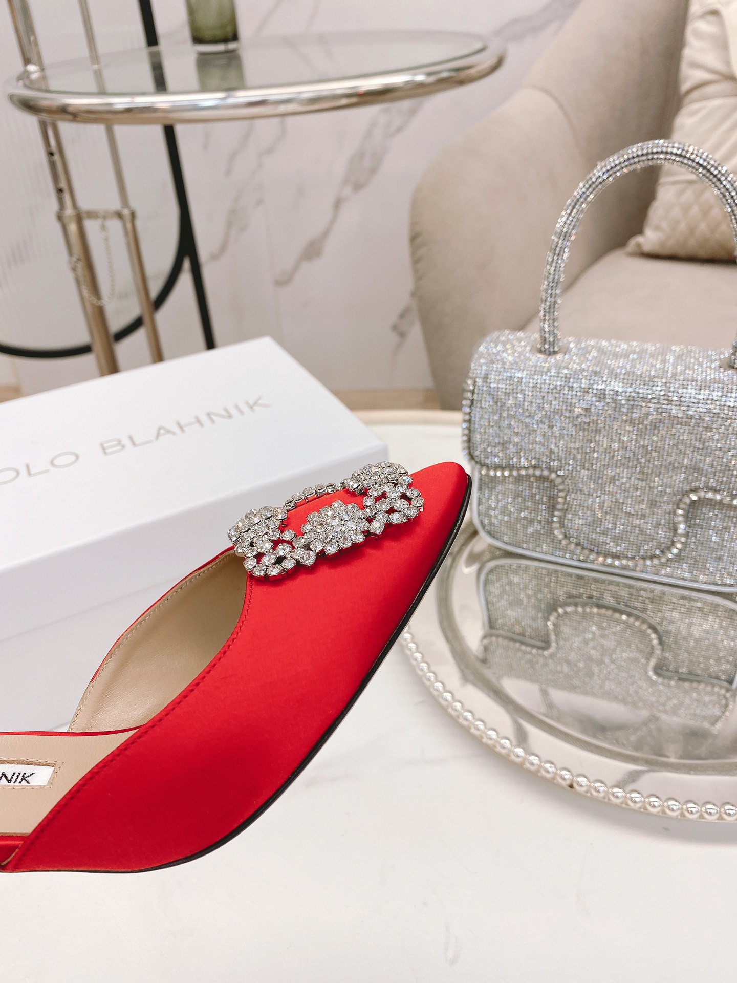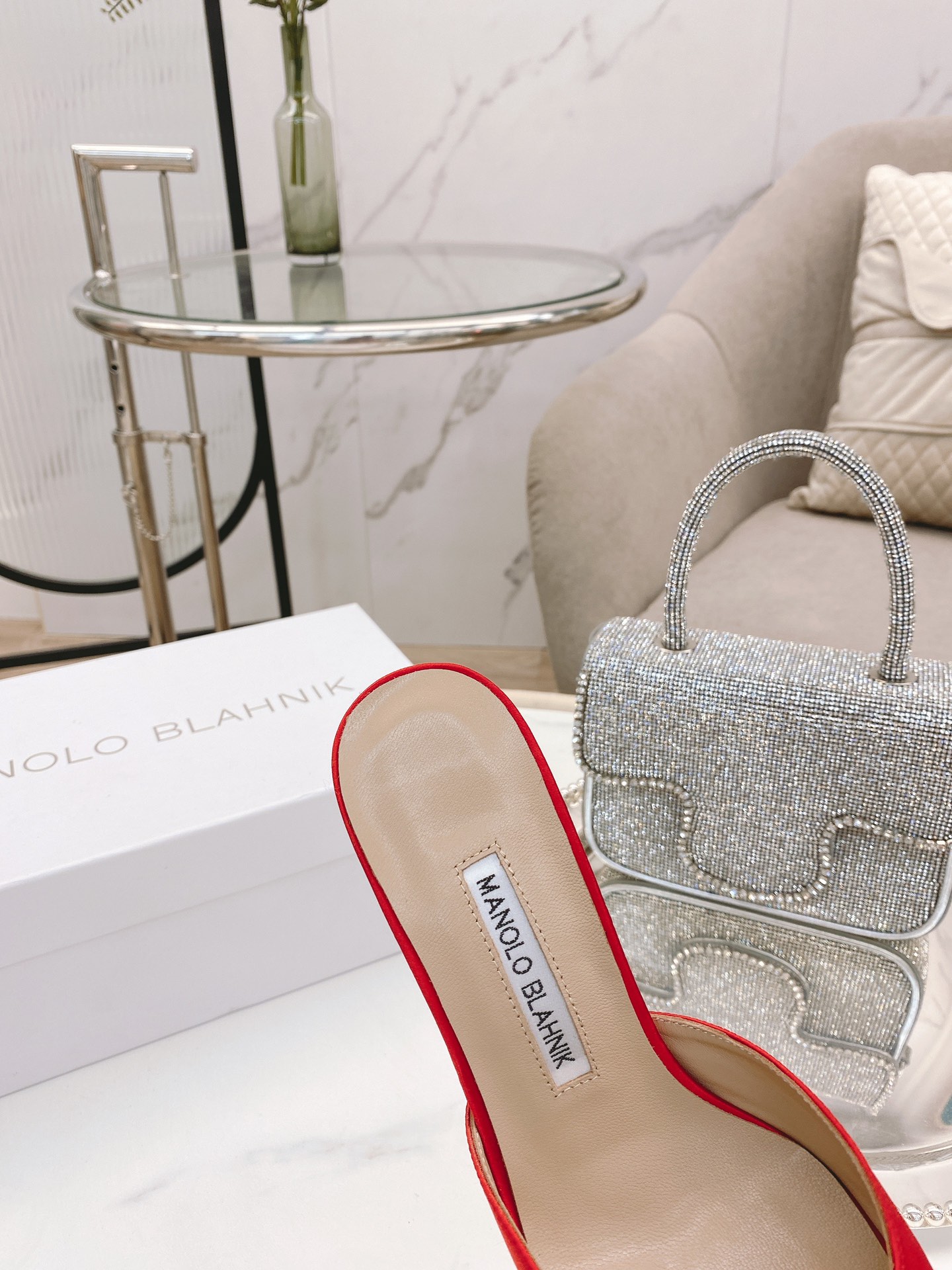 这款鞋子是AAAAA 1:1 质量 (非常棒). 使用了和原版一模一样的材料. 商标部分也保持了和马诺洛·布拉尼克/Manolo Blahnik一样. 图片拍摄是实物鞋子拍摄, 您所收到的实物保证和我们图片一模一样.