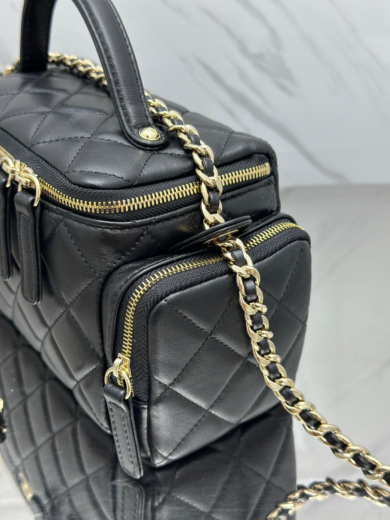 这款包包是AAAAA 1:1 质量 (非常棒). 使用了和原版一模一样的材料. 商标部分也保持了和香奈儿/Chanel一样. 图片拍摄是实物包包拍摄, 您所收到的实物保证和我们图片一模一样.