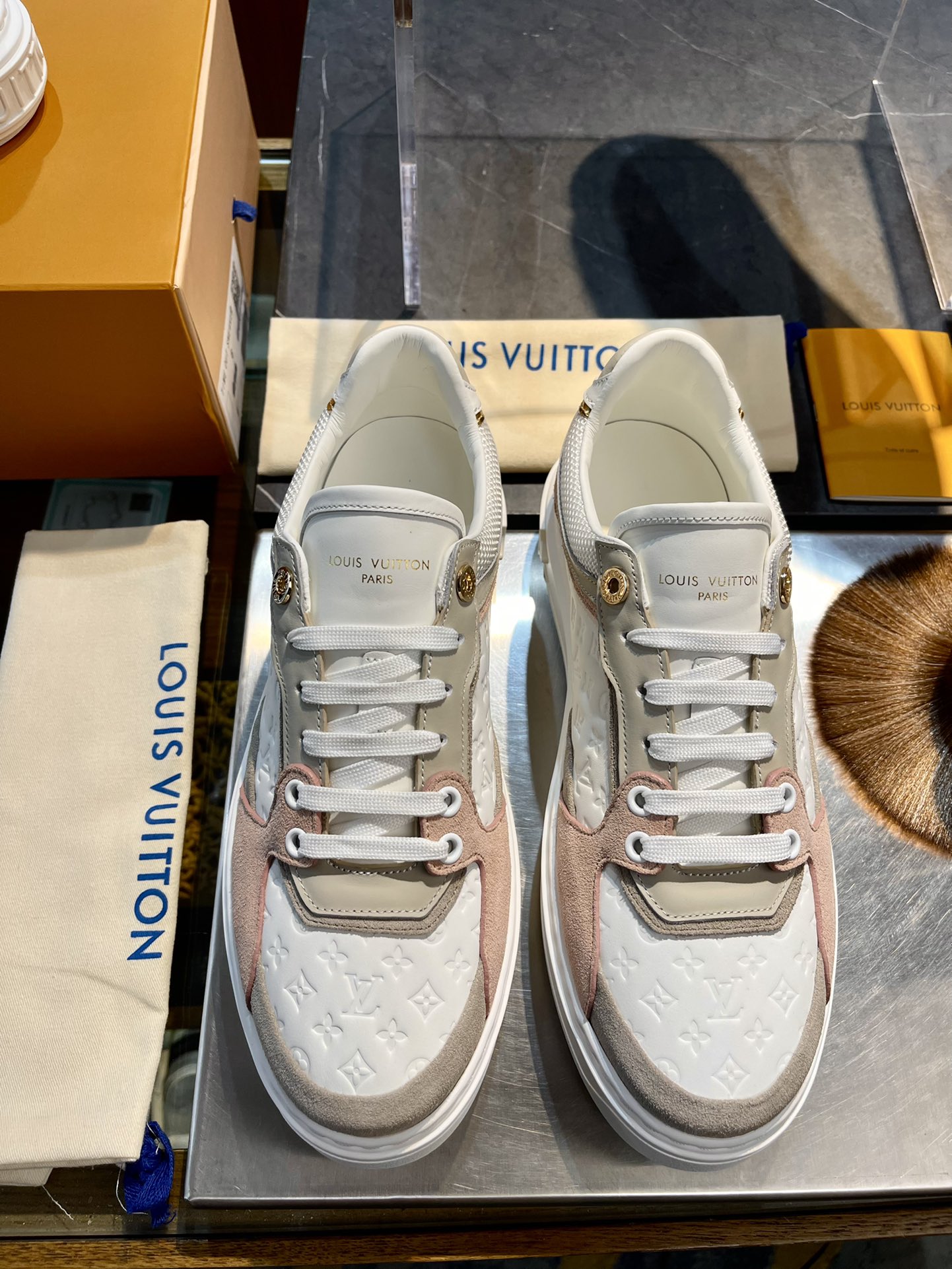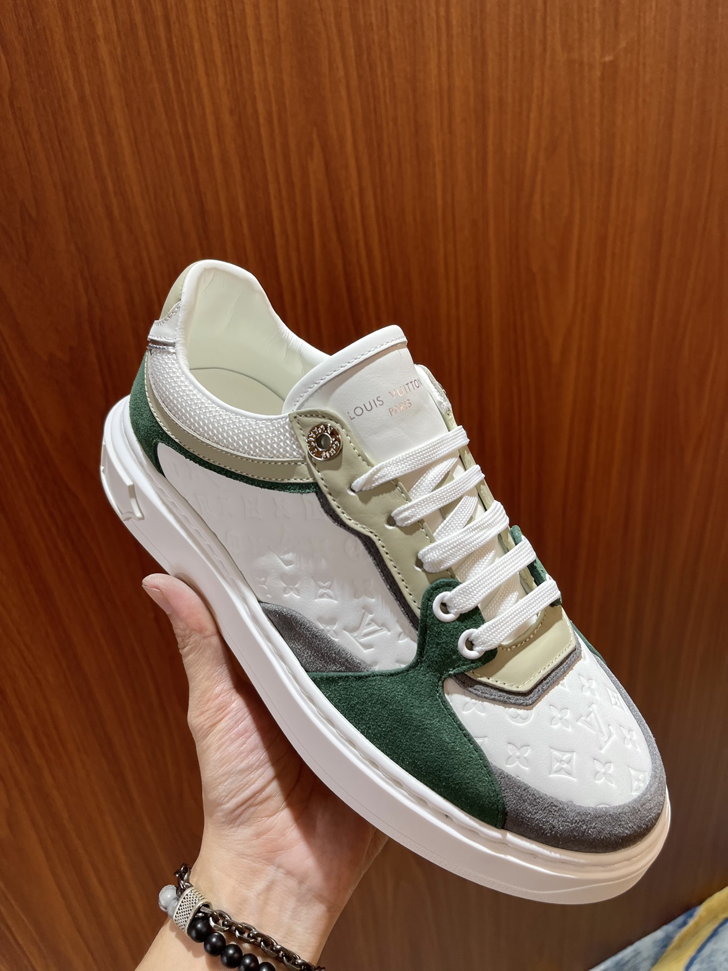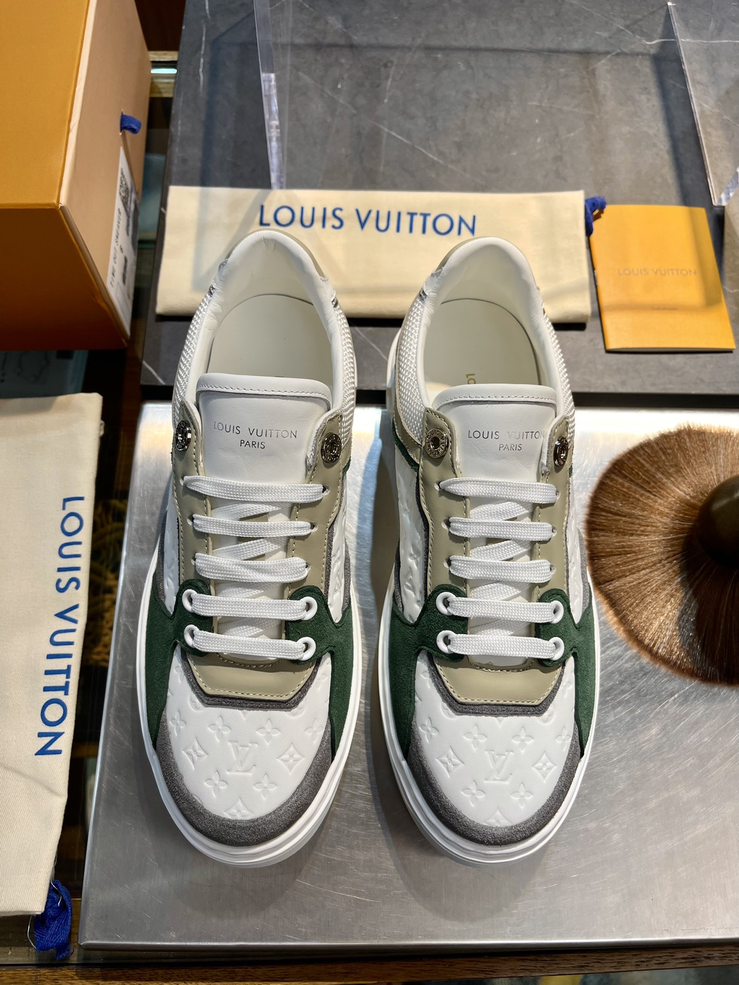 这款鞋子是AAAAA 1:1 质量 (非常棒). 使用了和原版一模一样的材料. 商标部分也保持了和路易威登/Louis Vuitton一样. 图片拍摄是实物鞋子拍摄, 您所收到的实物保证和我们图片一模一样.