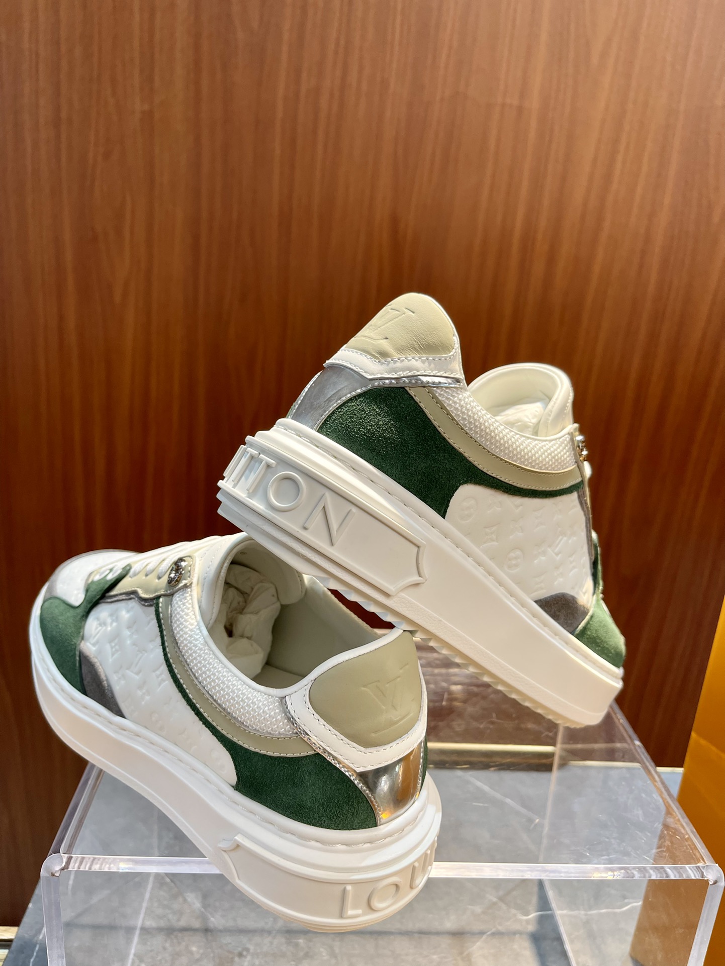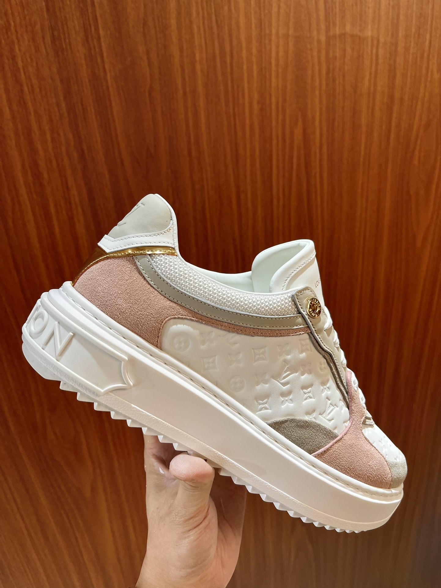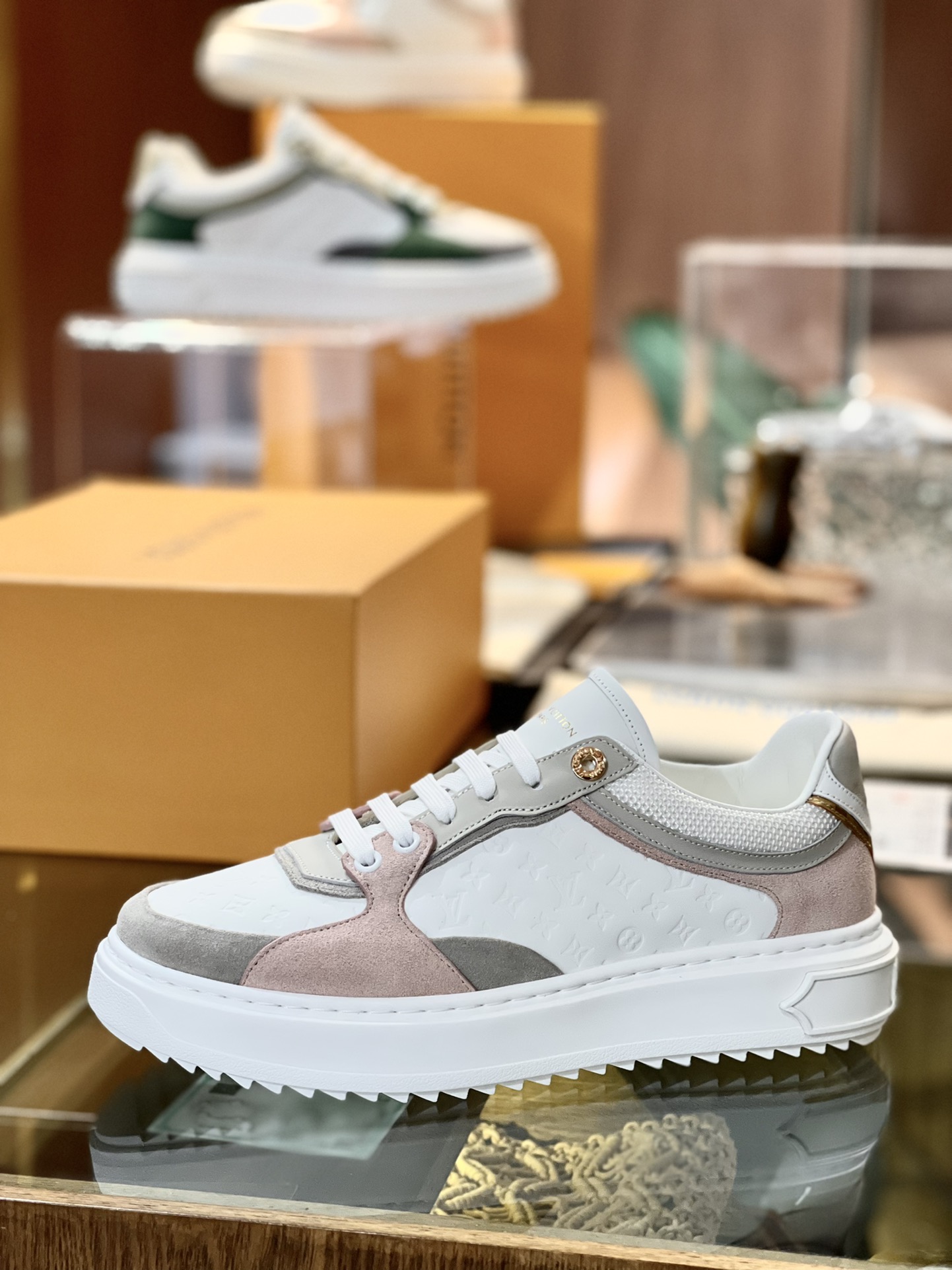 这款鞋子是AAAAA 1:1 质量 (非常棒). 使用了和原版一模一样的材料. 商标部分也保持了和路易威登/Louis Vuitton一样. 图片拍摄是实物鞋子拍摄, 您所收到的实物保证和我们图片一模一样.