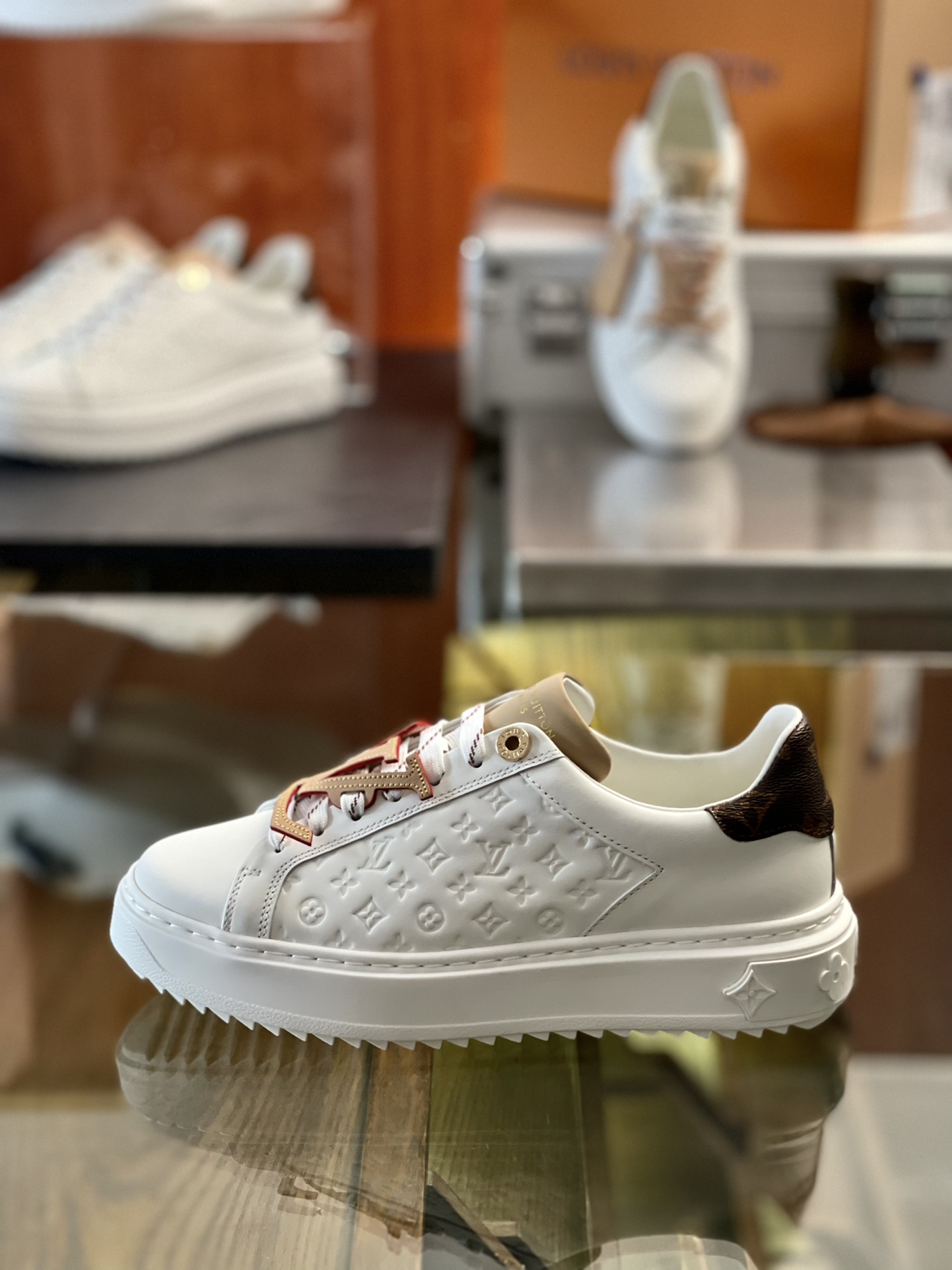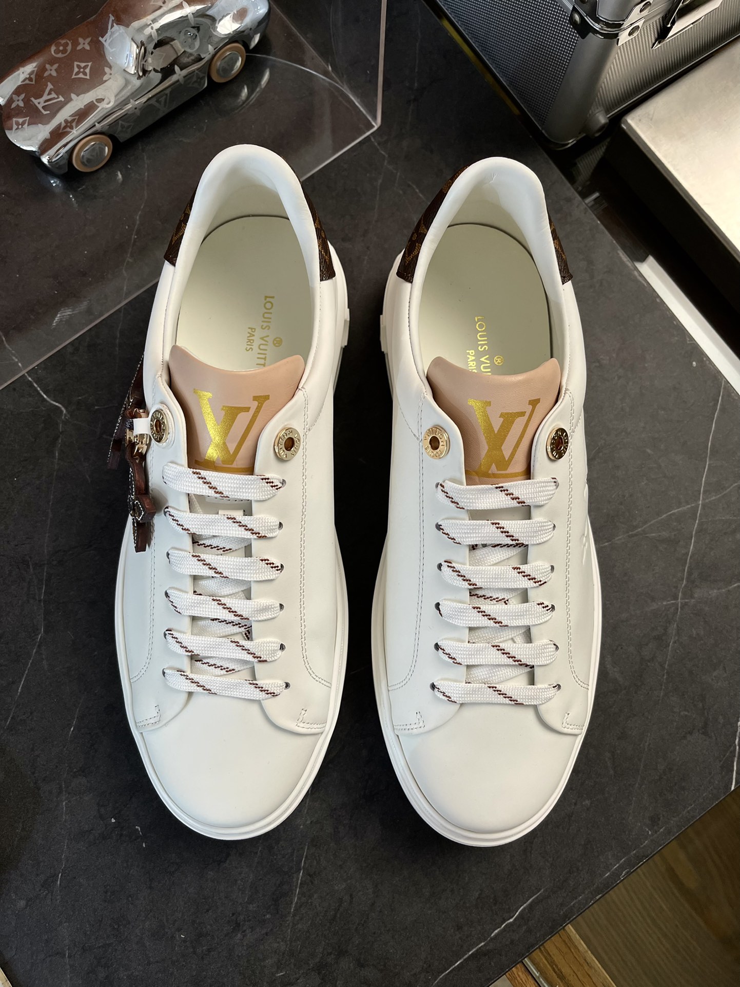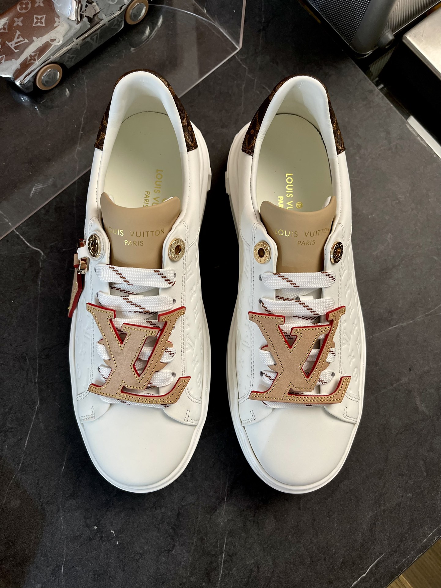 这款鞋子是AAAAA 1:1 质量 (非常棒). 使用了和原版一模一样的材料. 商标部分也保持了和路易威登/Louis Vuitton一样. 图片拍摄是实物鞋子拍摄, 您所收到的实物保证和我们图片一模一样.