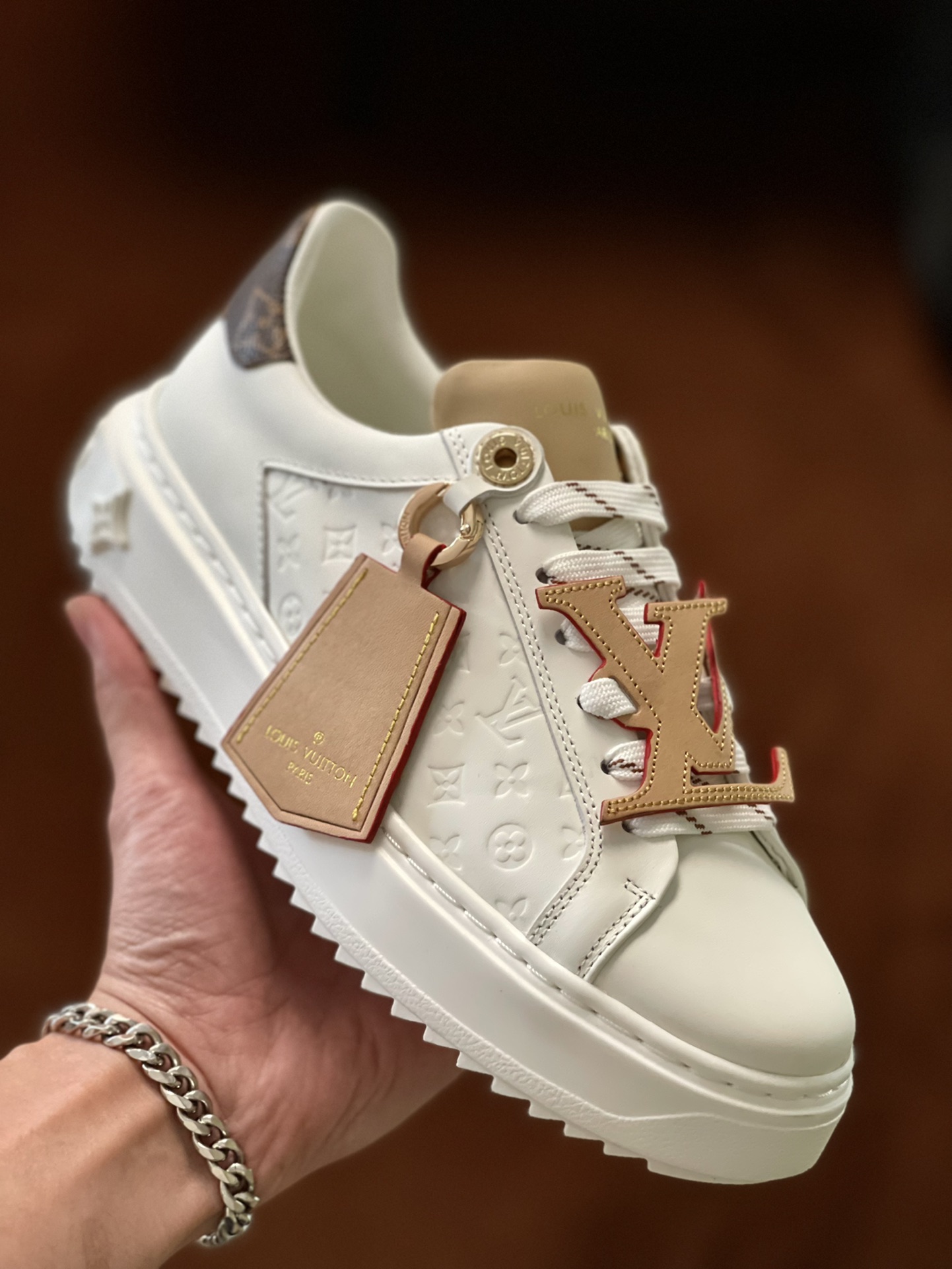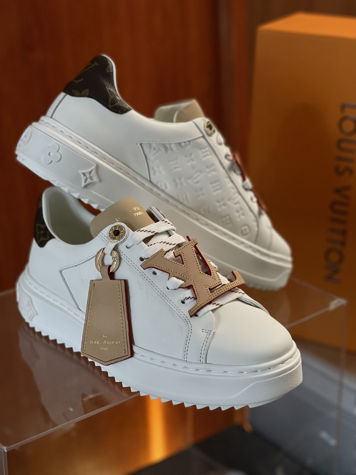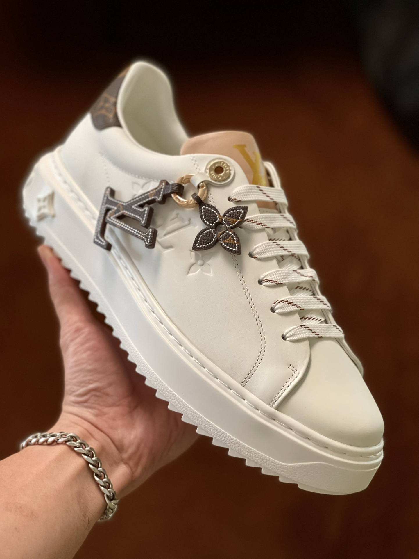 这款鞋子是AAAAA 1:1 质量 (非常棒). 使用了和原版一模一样的材料. 商标部分也保持了和路易威登/Louis Vuitton一样. 图片拍摄是实物鞋子拍摄, 您所收到的实物保证和我们图片一模一样.