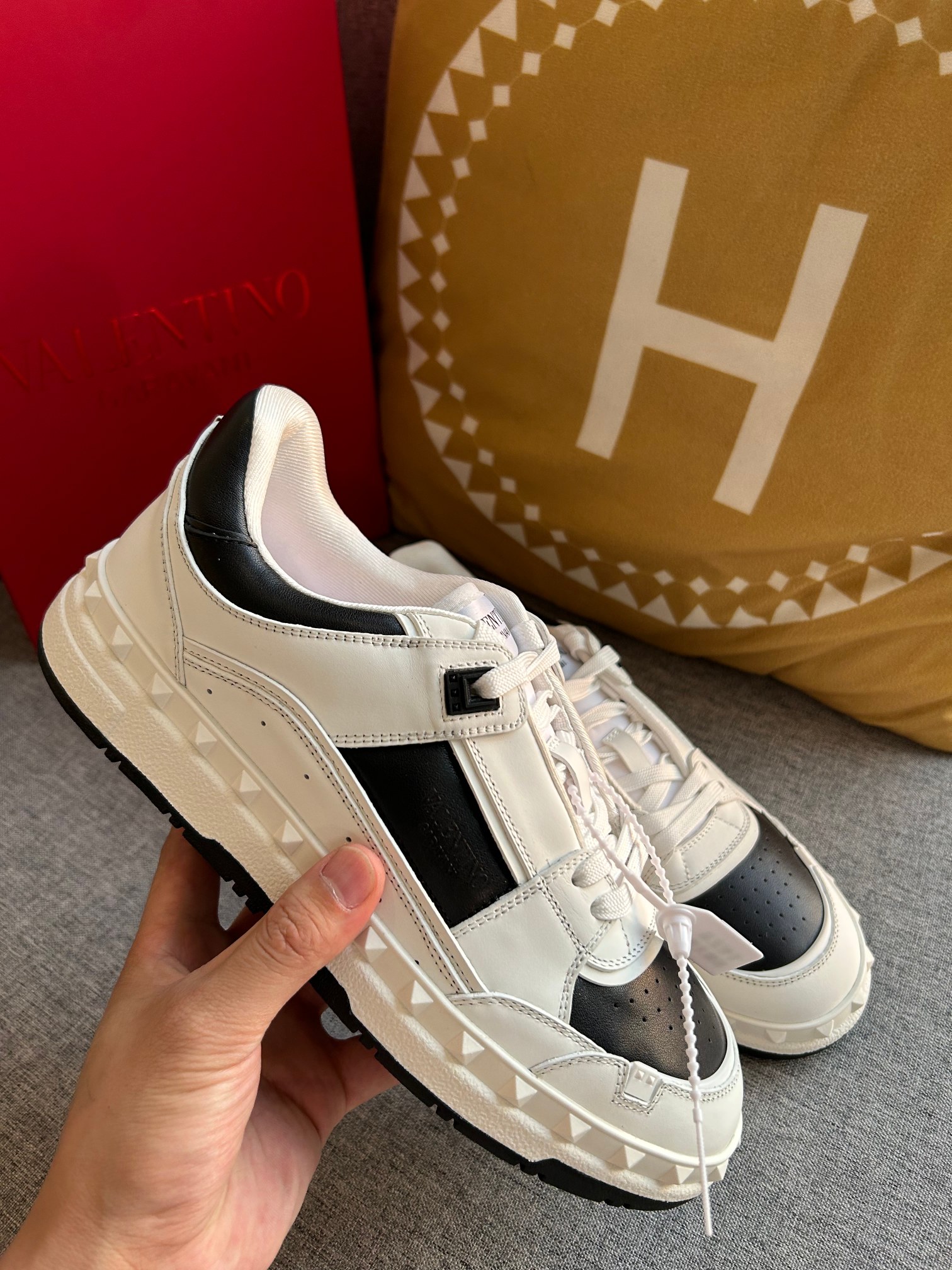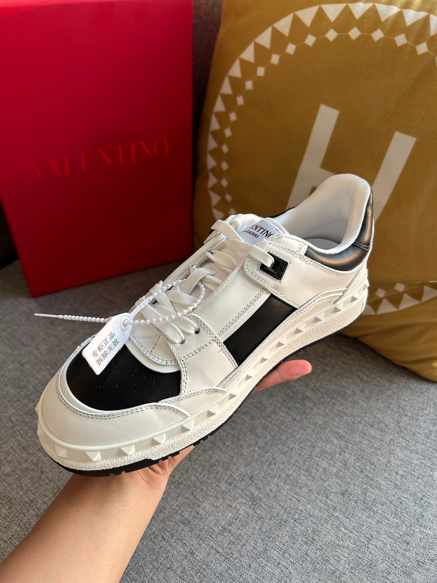 这款鞋子是AAAAA 1:1 质量 (非常棒). 使用了和原版一模一样的材料. 商标部分也保持了和华伦天奴/Valentino一样. 图片拍摄是实物鞋子拍摄, 您所收到的实物保证和我们图片一模一样.
