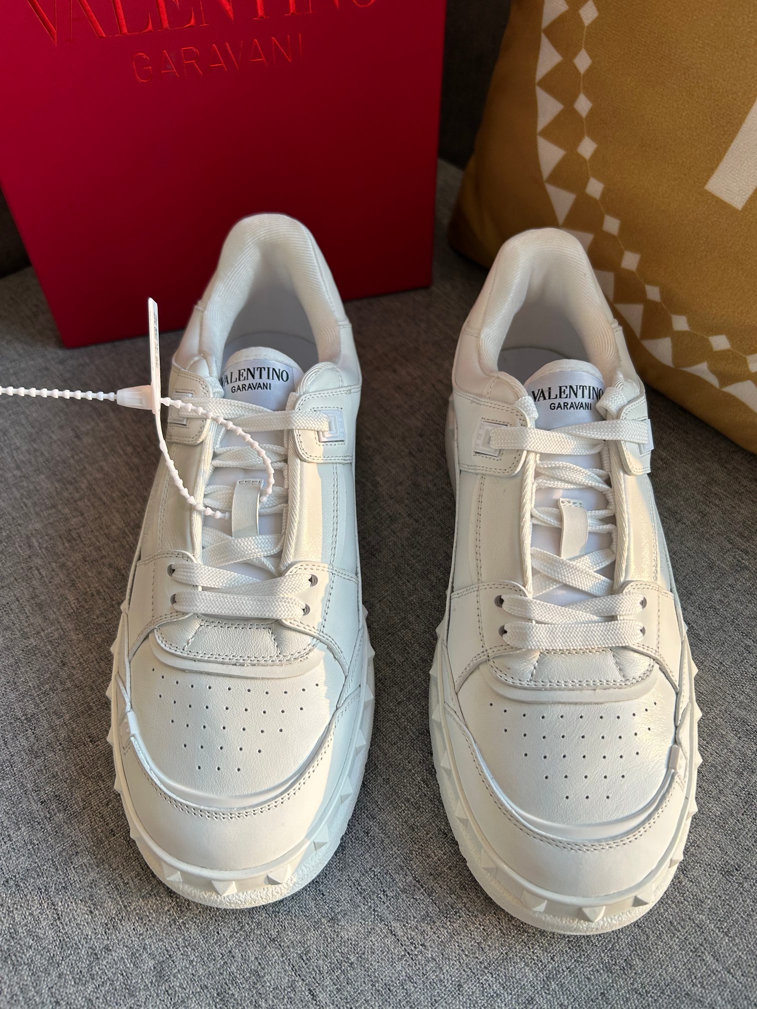 这款鞋子是AAAAA 1:1 质量 (非常棒). 使用了和原版一模一样的材料. 商标部分也保持了和华伦天奴/Valentino一样. 图片拍摄是实物鞋子拍摄, 您所收到的实物保证和我们图片一模一样.