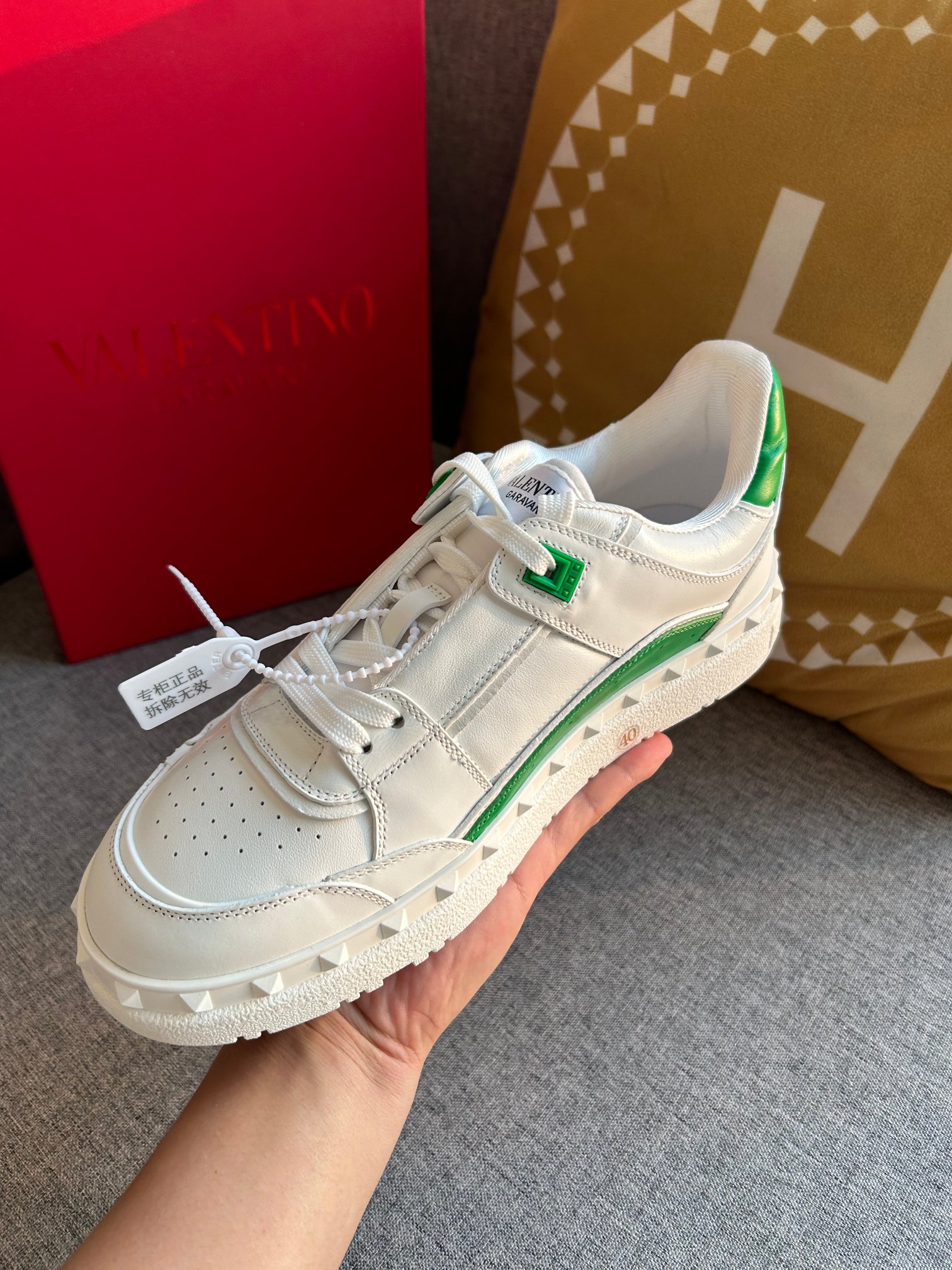 这款鞋子是AAAAA 1:1 质量 (非常棒). 使用了和原版一模一样的材料. 商标部分也保持了和华伦天奴/Valentino一样. 图片拍摄是实物鞋子拍摄, 您所收到的实物保证和我们图片一模一样.