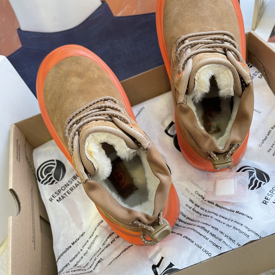 这款鞋子是AAAAA 1:1 质量 (非常棒). 使用了和原版一模一样的材料. 商标部分也保持了和UGG雪地靴一样. 图片拍摄是实物鞋子拍摄, 您所收到的实物保证和我们图片一模一样.