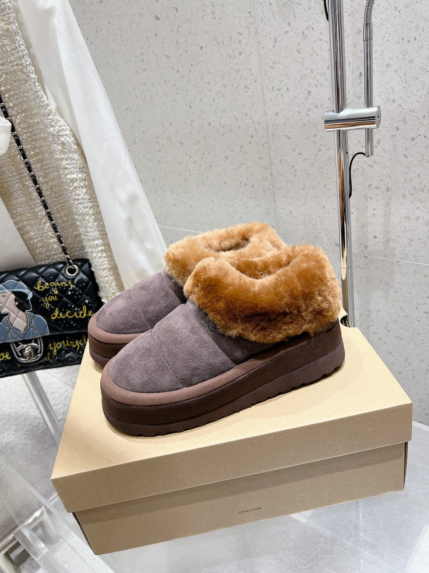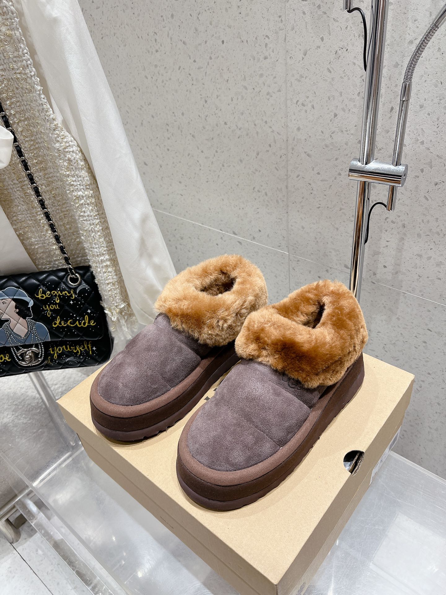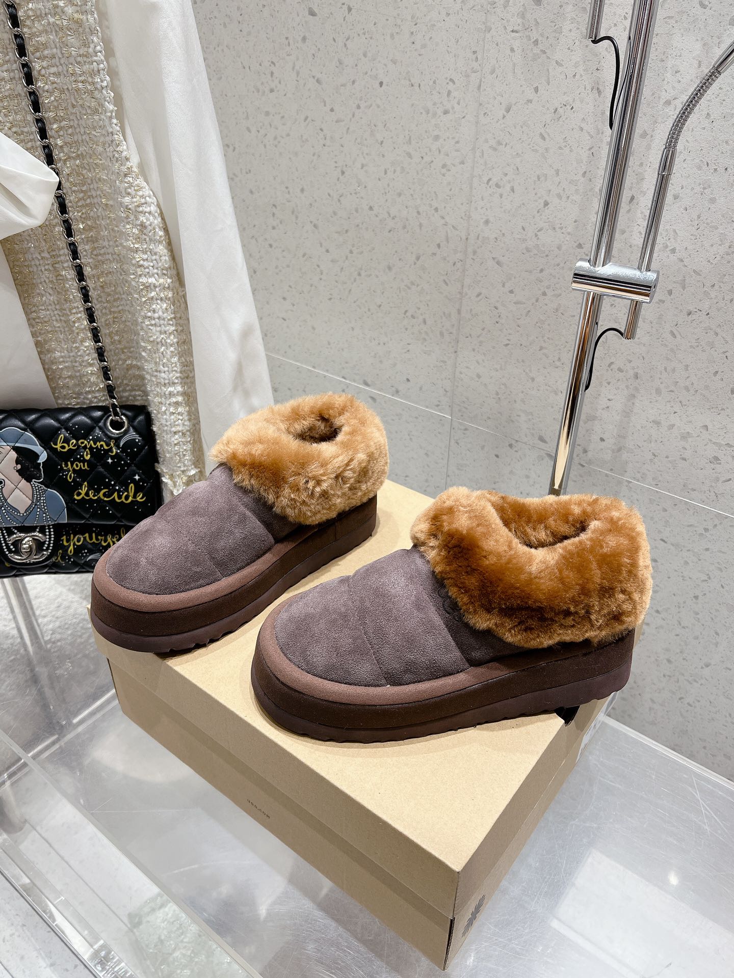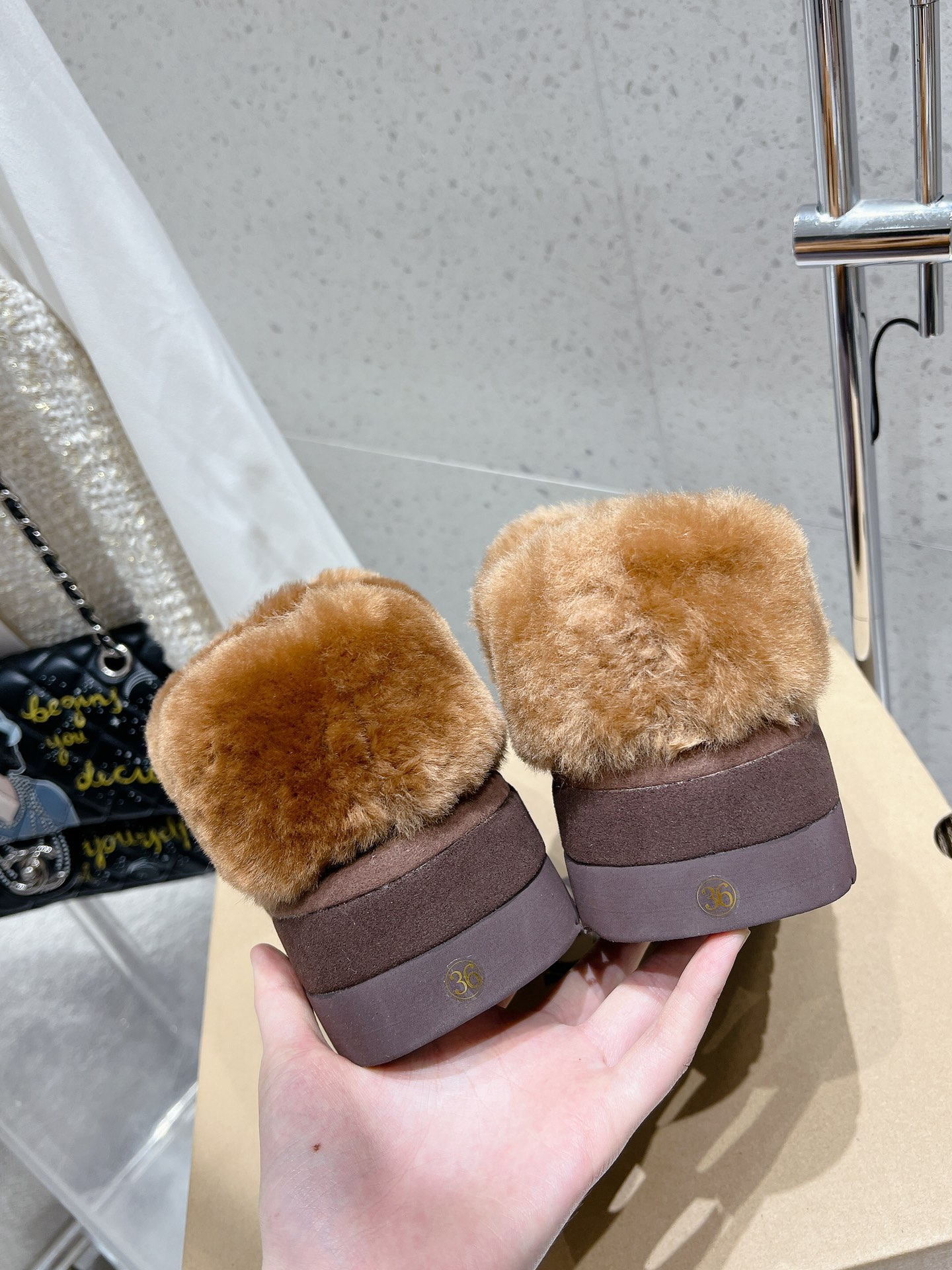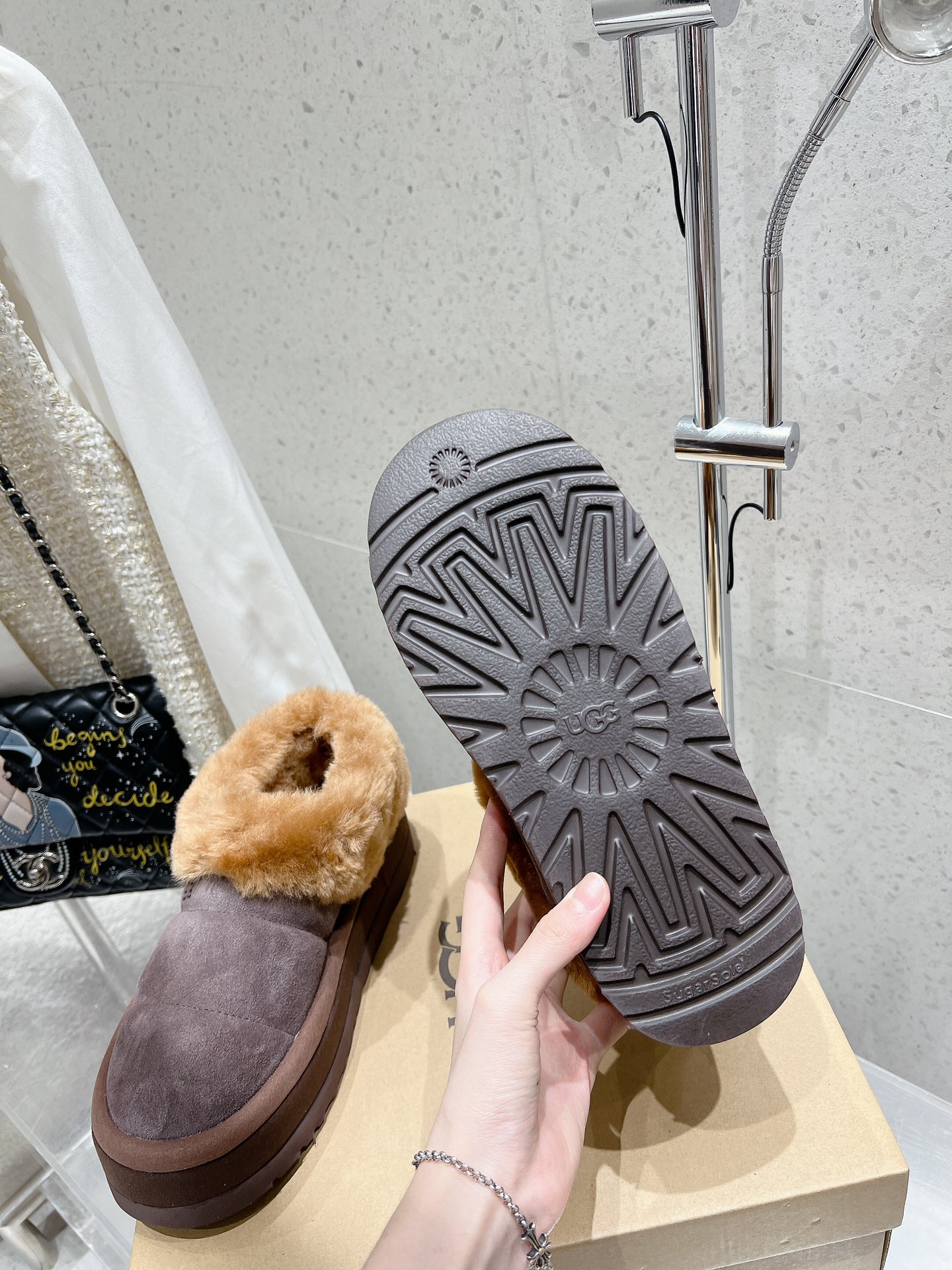 这款鞋子是AAAAA 1:1 质量 (非常棒). 使用了和原版一模一样的材料. 商标部分也保持了和UGG雪地靴一样. 图片拍摄是实物鞋子拍摄, 您所收到的实物保证和我们图片一模一样.