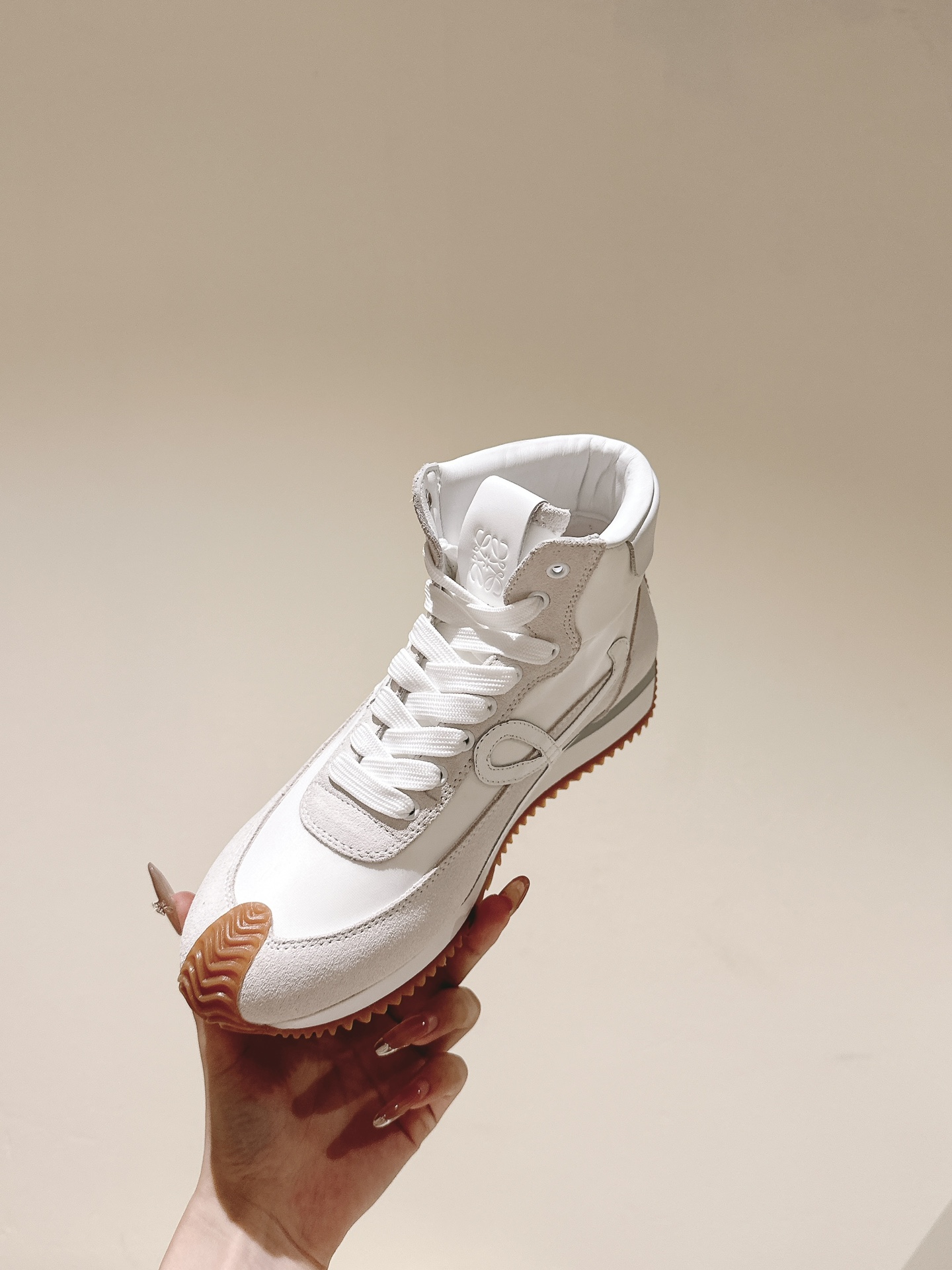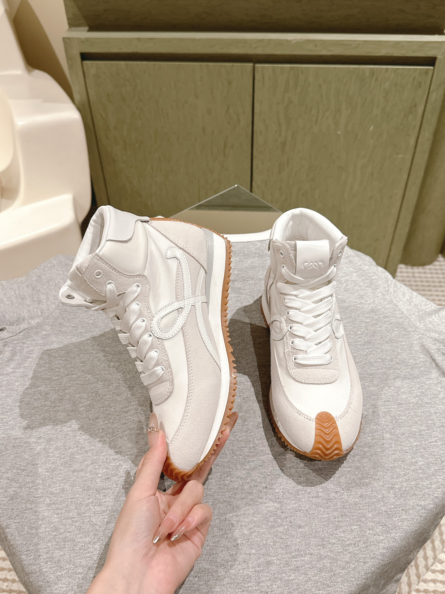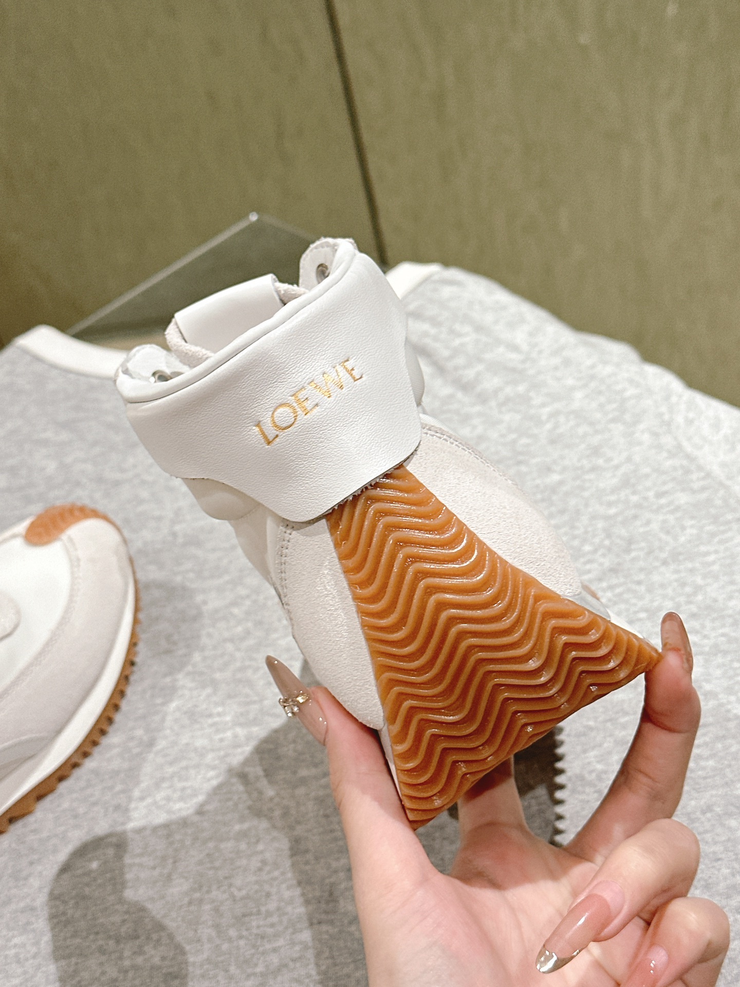 这款鞋子是AAAAA 1:1 质量 (非常棒). 使用了和原版一模一样的材料. 商标部分也保持了和罗意威/Loewe一样. 图片拍摄是实物鞋子拍摄, 您所收到的实物保证和我们图片一模一样.