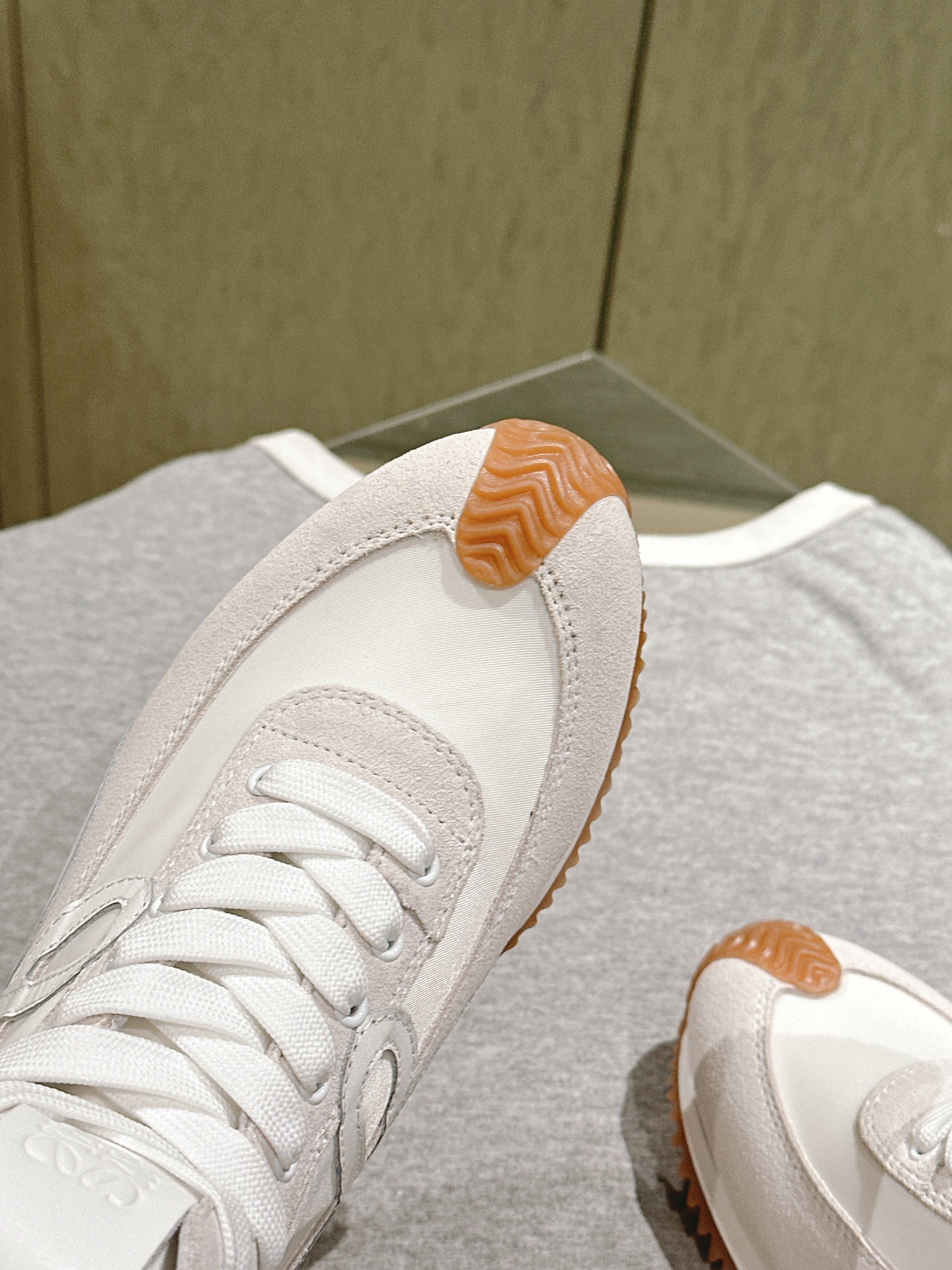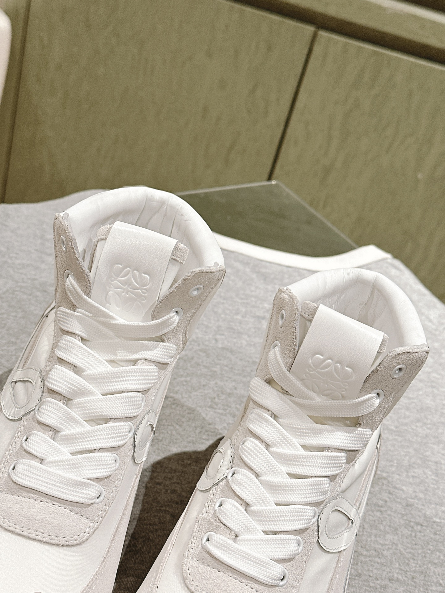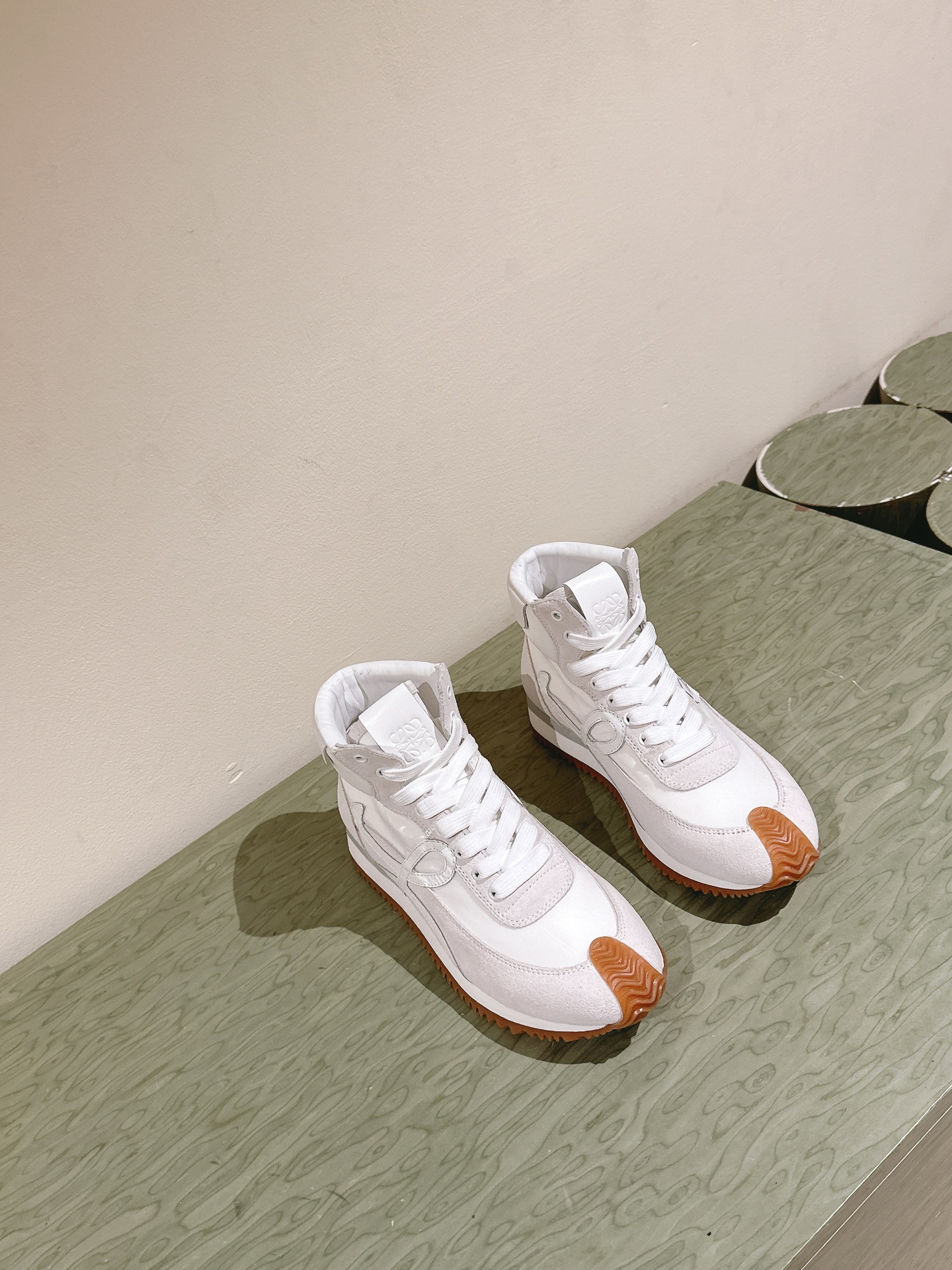 这款鞋子是AAAAA 1:1 质量 (非常棒). 使用了和原版一模一样的材料. 商标部分也保持了和罗意威/Loewe一样. 图片拍摄是实物鞋子拍摄, 您所收到的实物保证和我们图片一模一样.