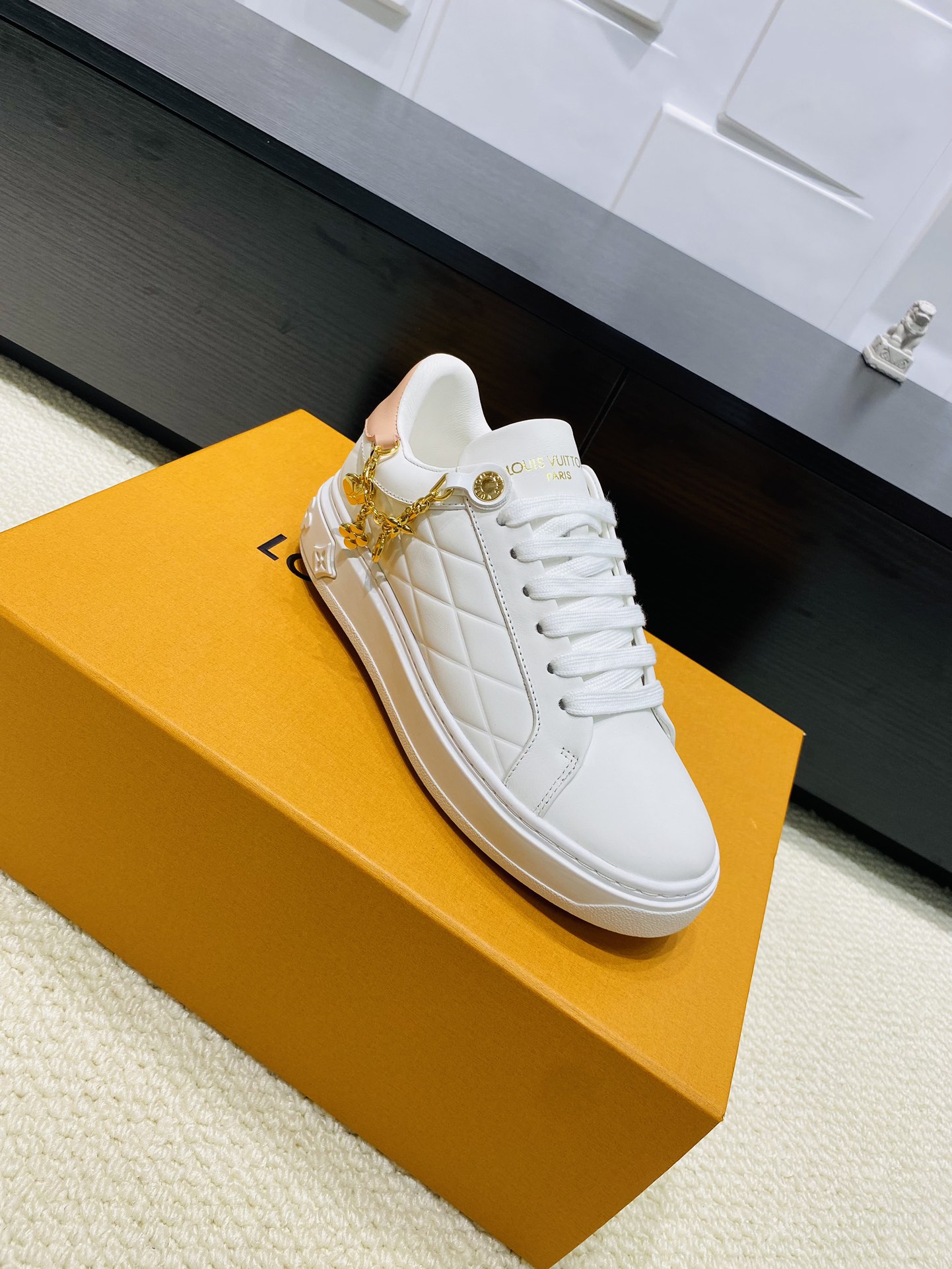 这款鞋子是AAAAA 1:1 质量 (非常棒). 使用了和原版一模一样的材料. 商标部分也保持了和路易威登/Louis Vuitton一样. 图片拍摄是实物鞋子拍摄, 您所收到的实物保证和我们图片一模一样.