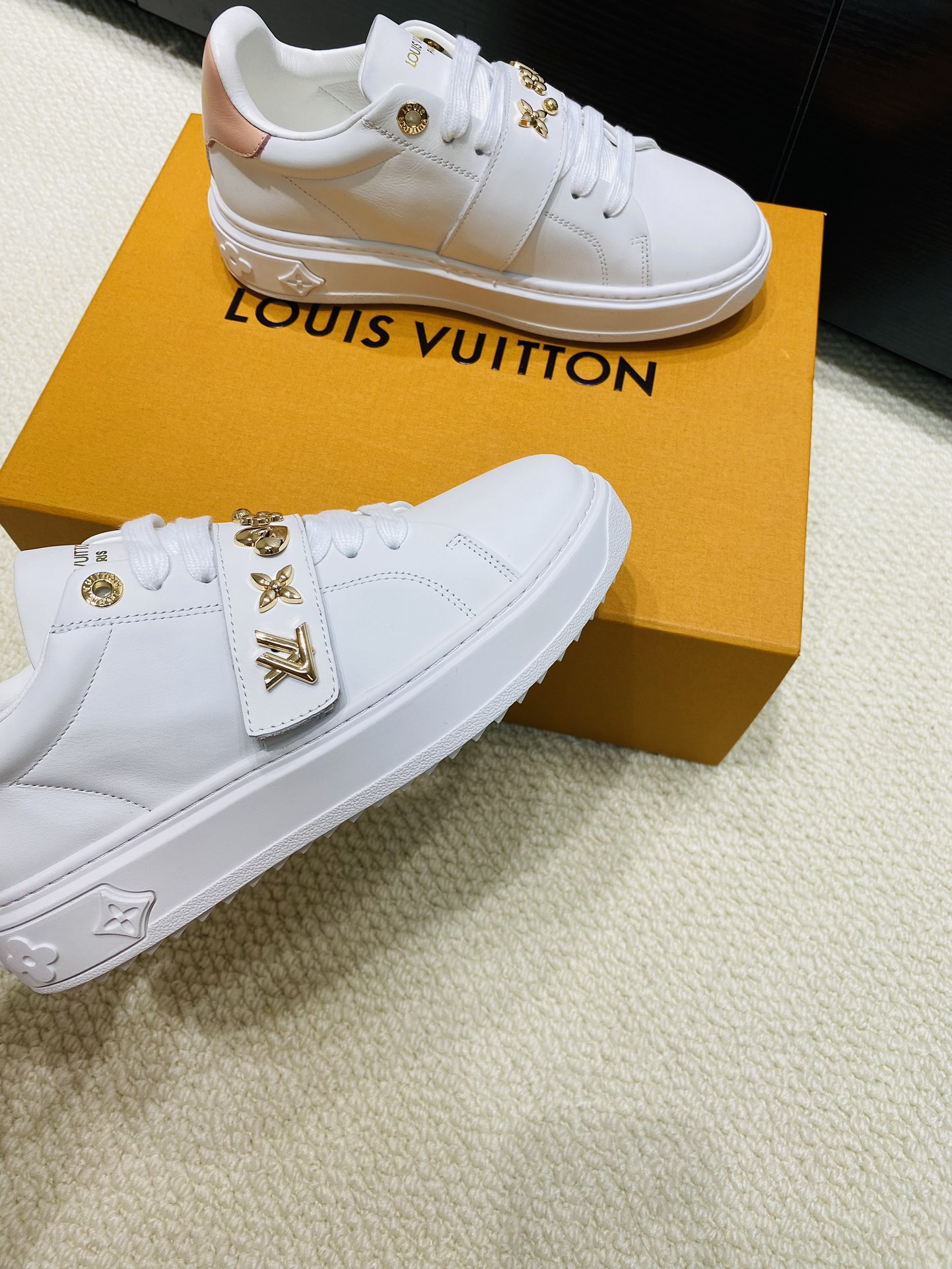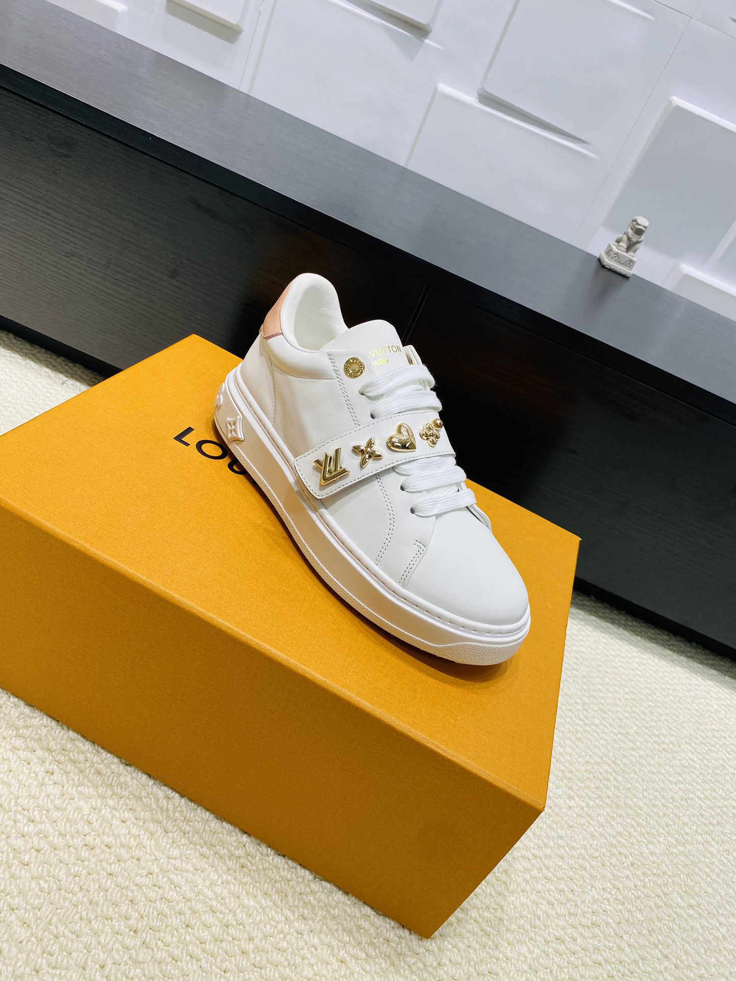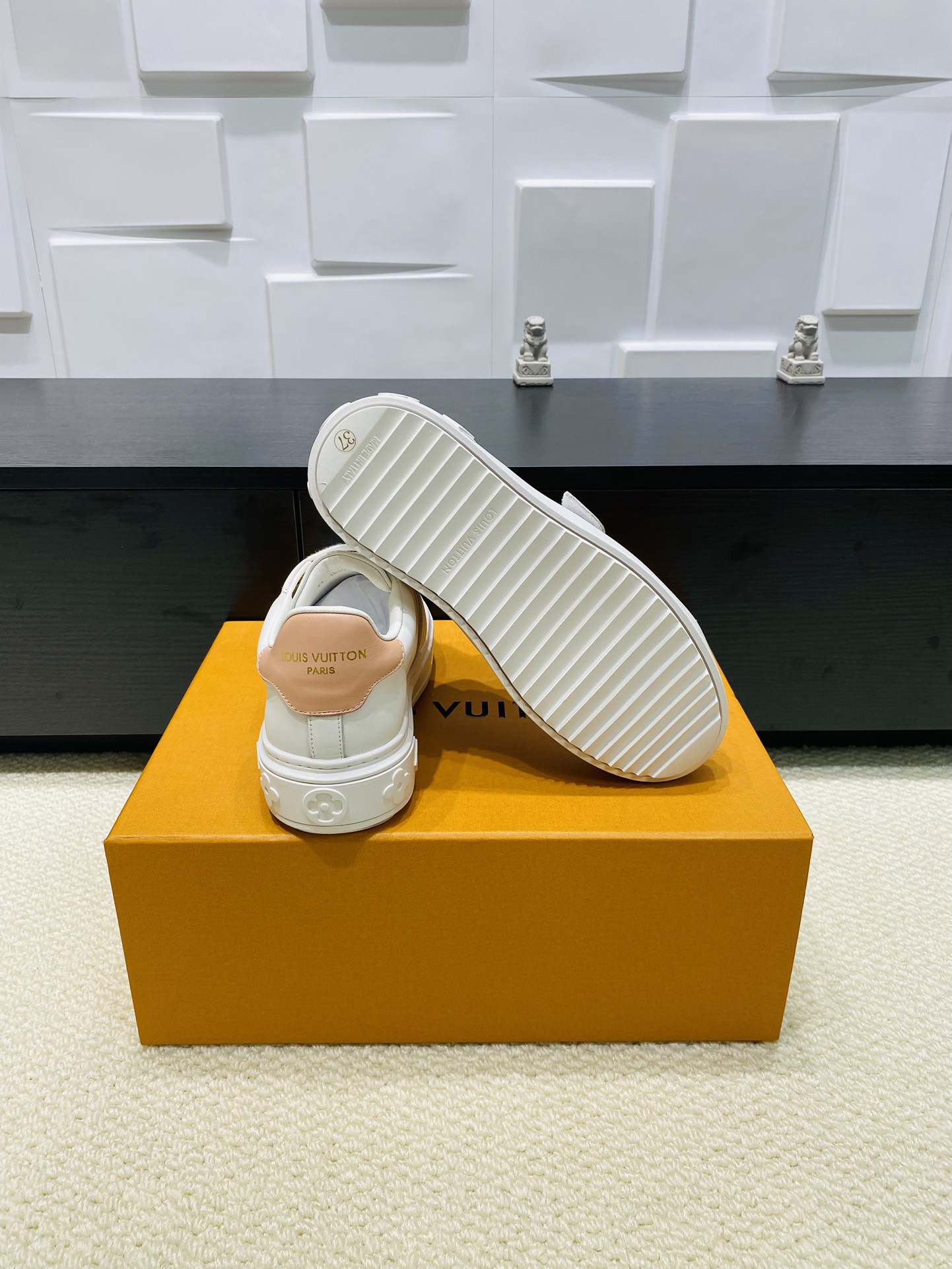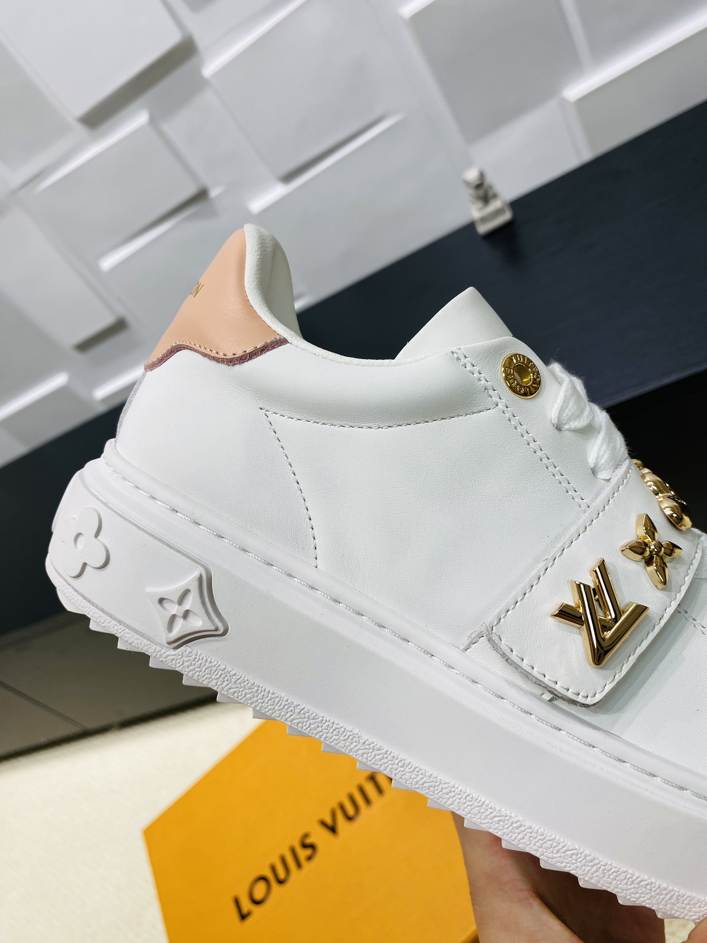 这款鞋子是AAAAA 1:1 质量 (非常棒). 使用了和原版一模一样的材料. 商标部分也保持了和路易威登/Louis Vuitton一样. 图片拍摄是实物鞋子拍摄, 您所收到的实物保证和我们图片一模一样.
