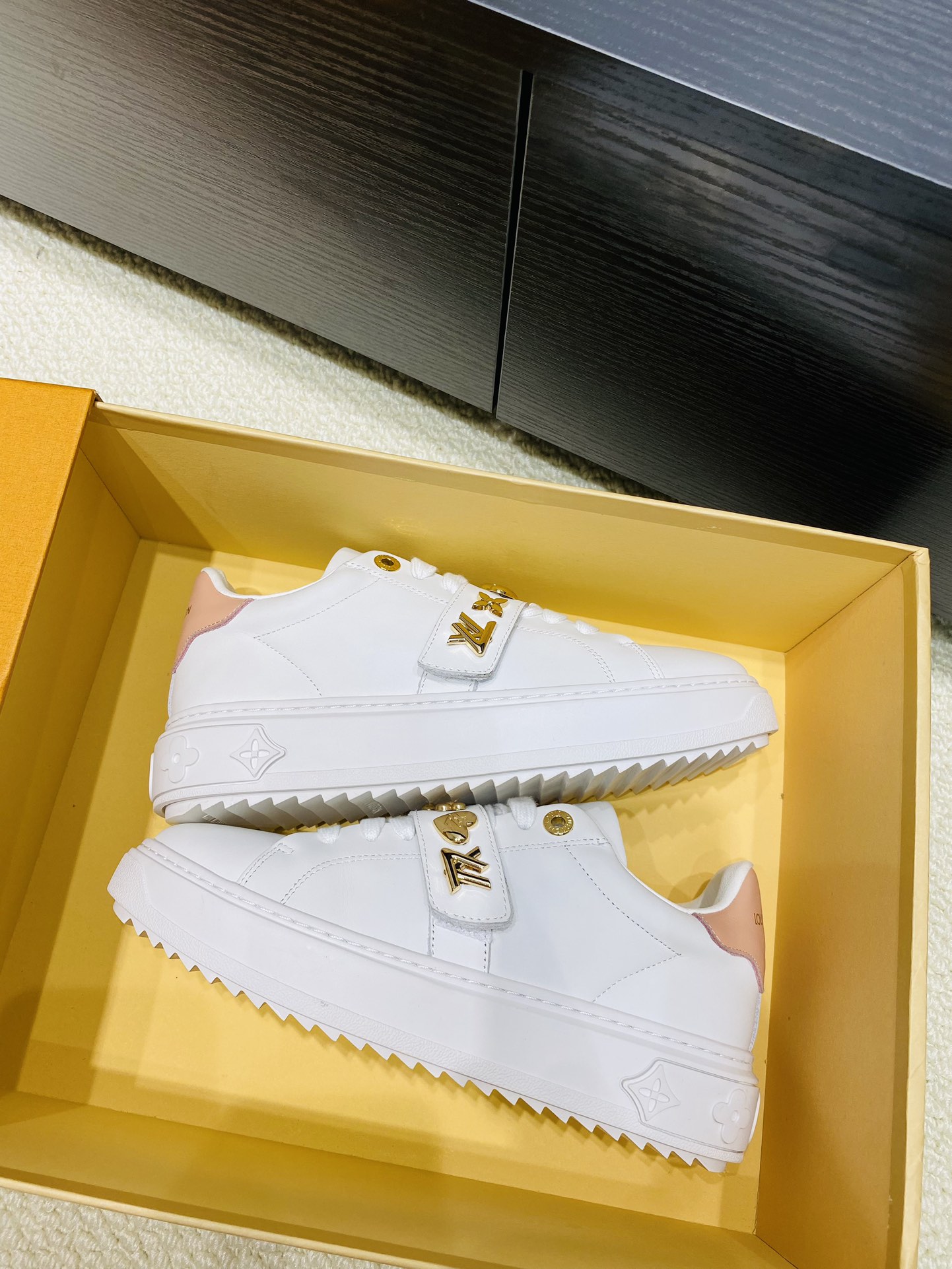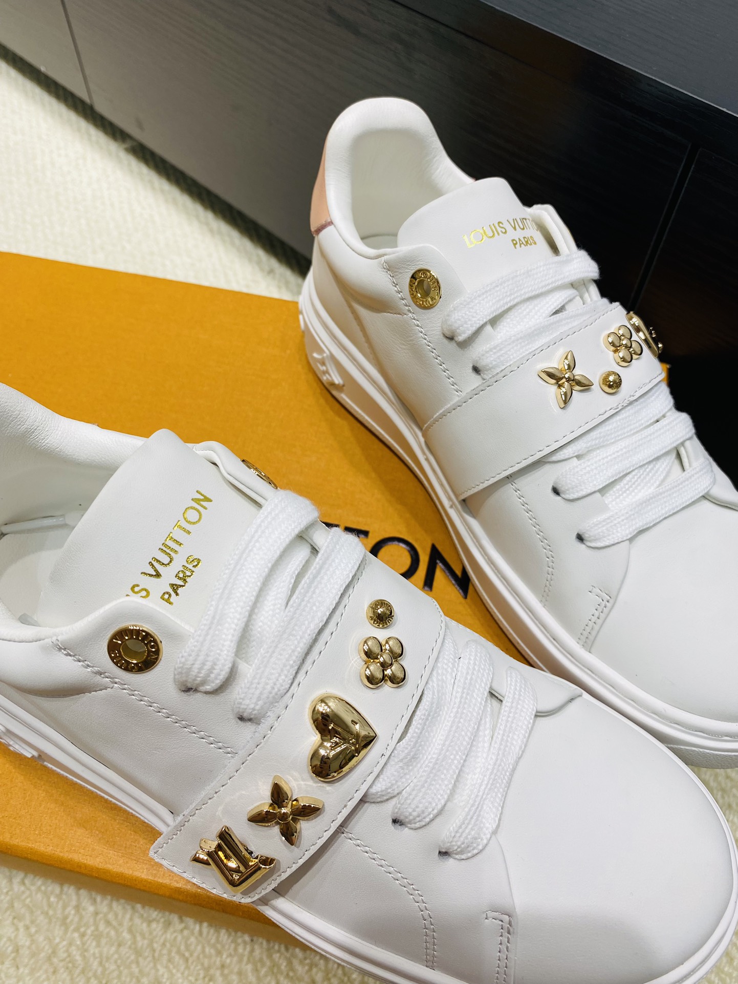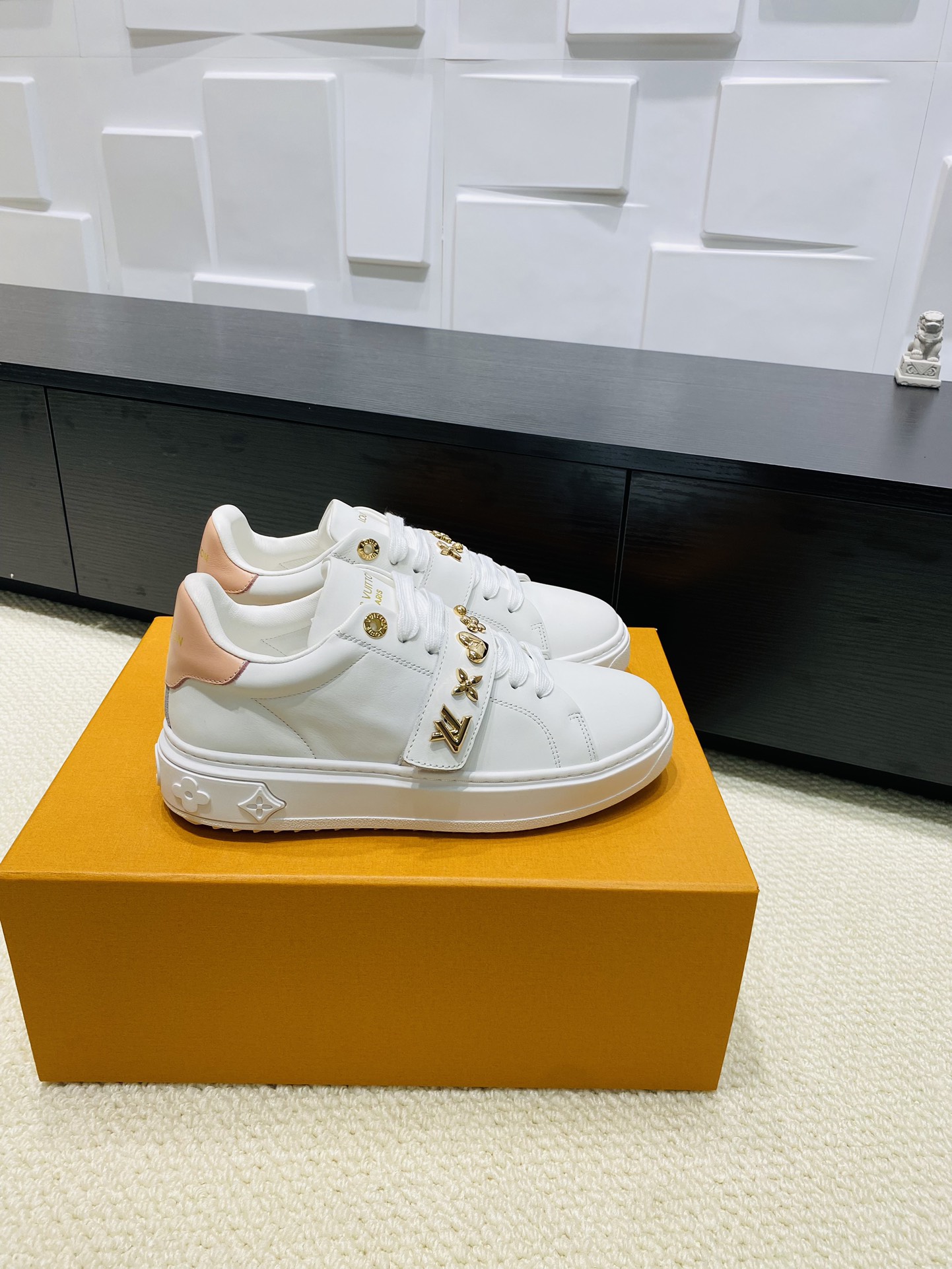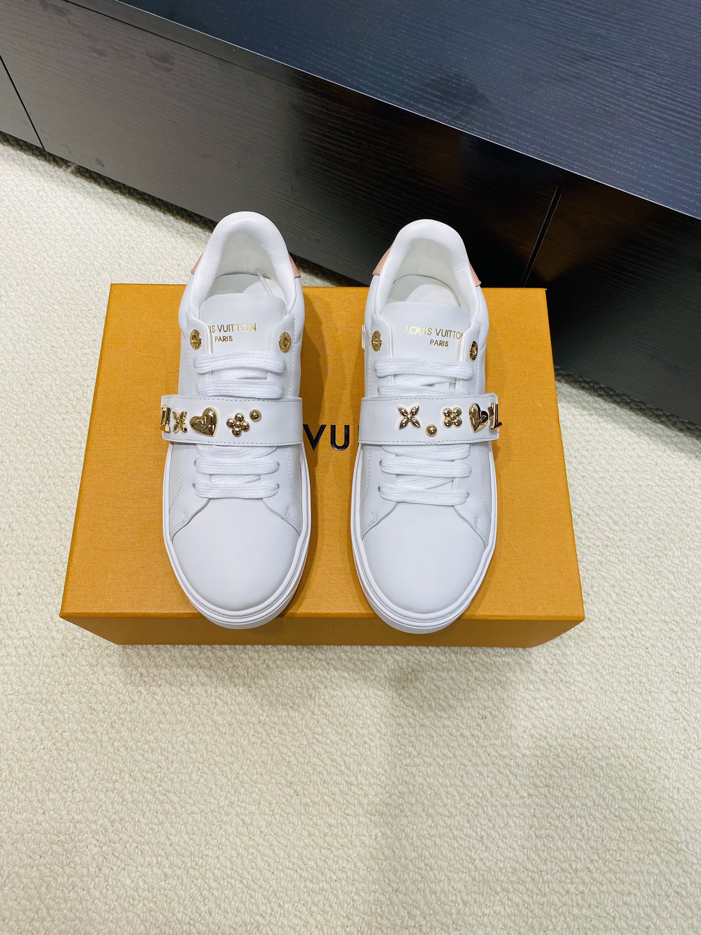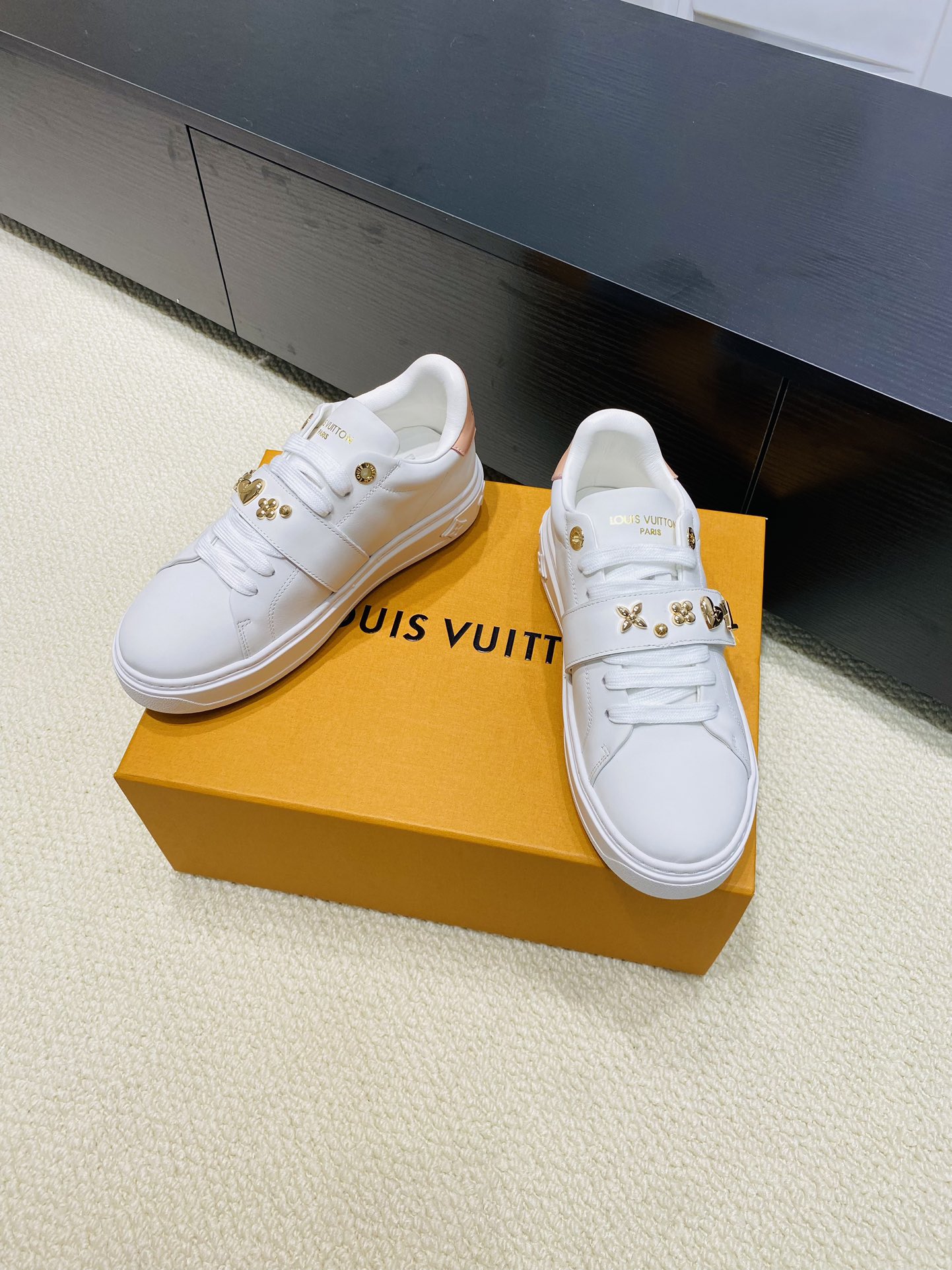 这款鞋子是AAAAA 1:1 质量 (非常棒). 使用了和原版一模一样的材料. 商标部分也保持了和路易威登/Louis Vuitton一样. 图片拍摄是实物鞋子拍摄, 您所收到的实物保证和我们图片一模一样.