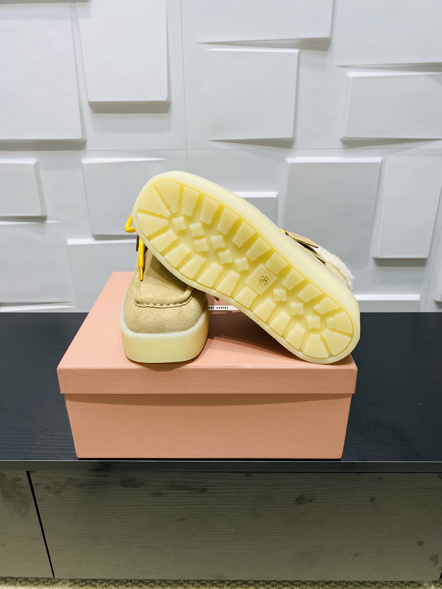 这款鞋子是AAAAA 1:1 质量 (非常棒). 使用了和原版一模一样的材料. 商标部分也保持了和缪缪/Miu Miu一样. 图片拍摄是实物鞋子拍摄, 您所收到的实物保证和我们图片一模一样.