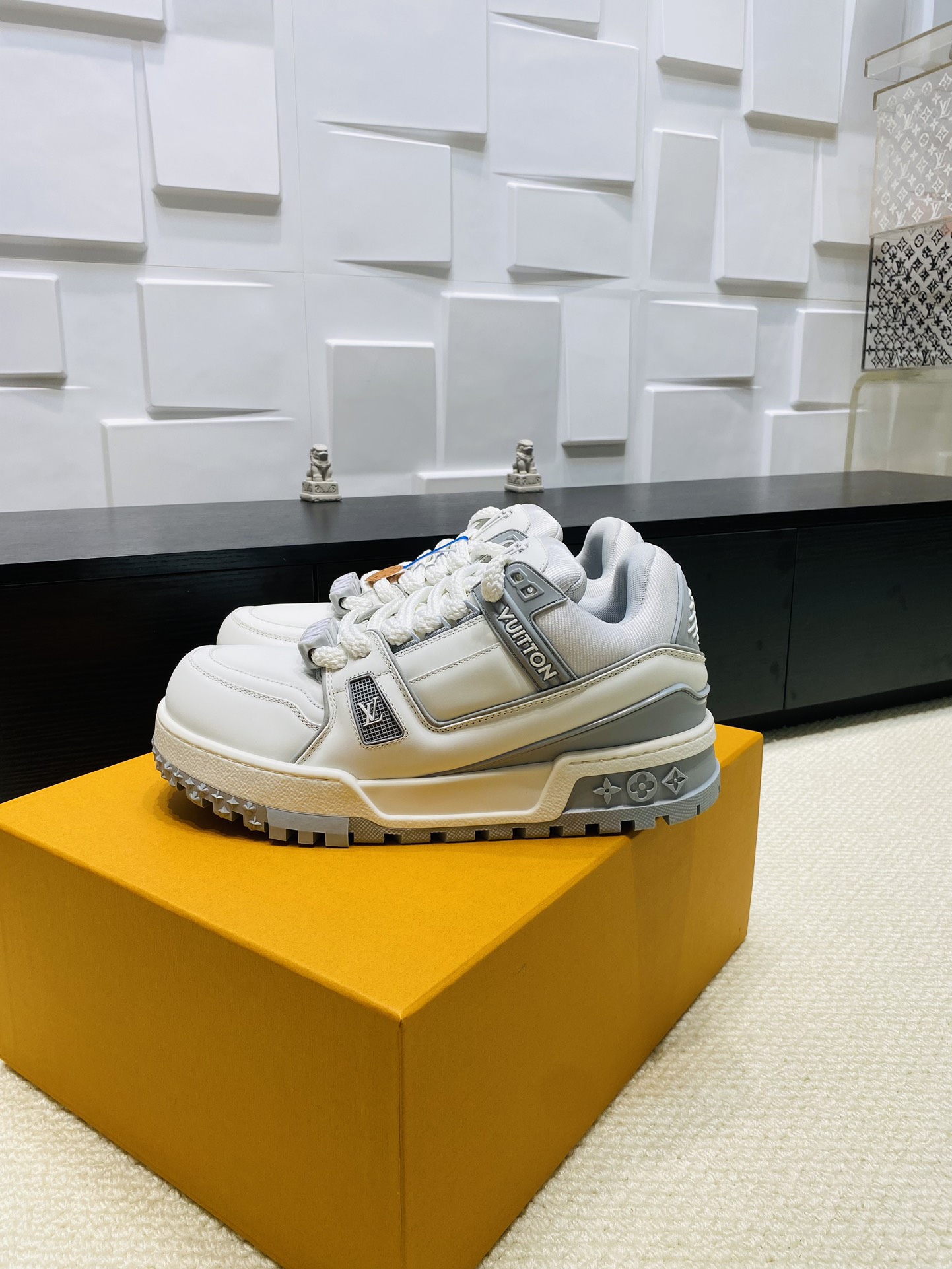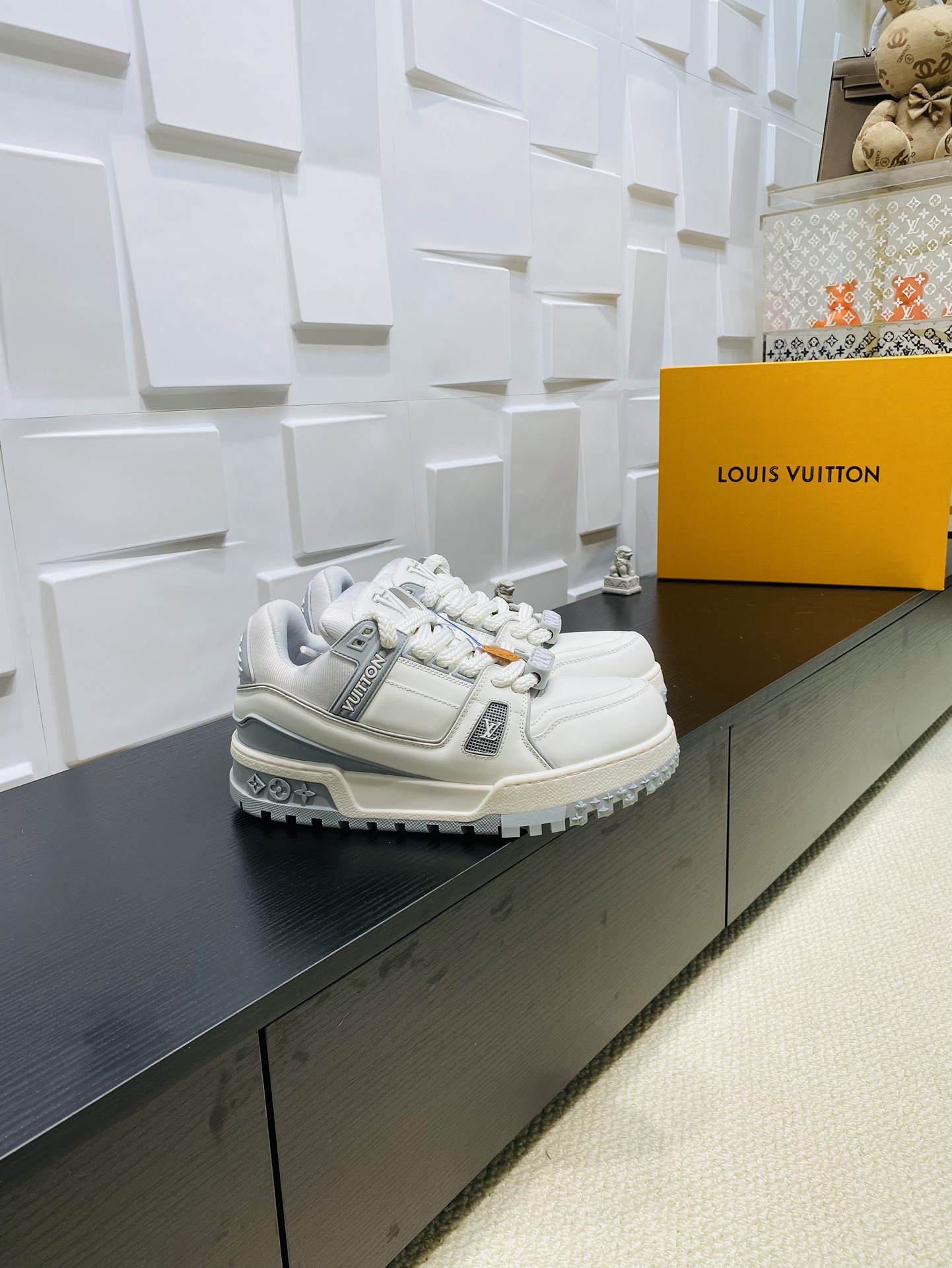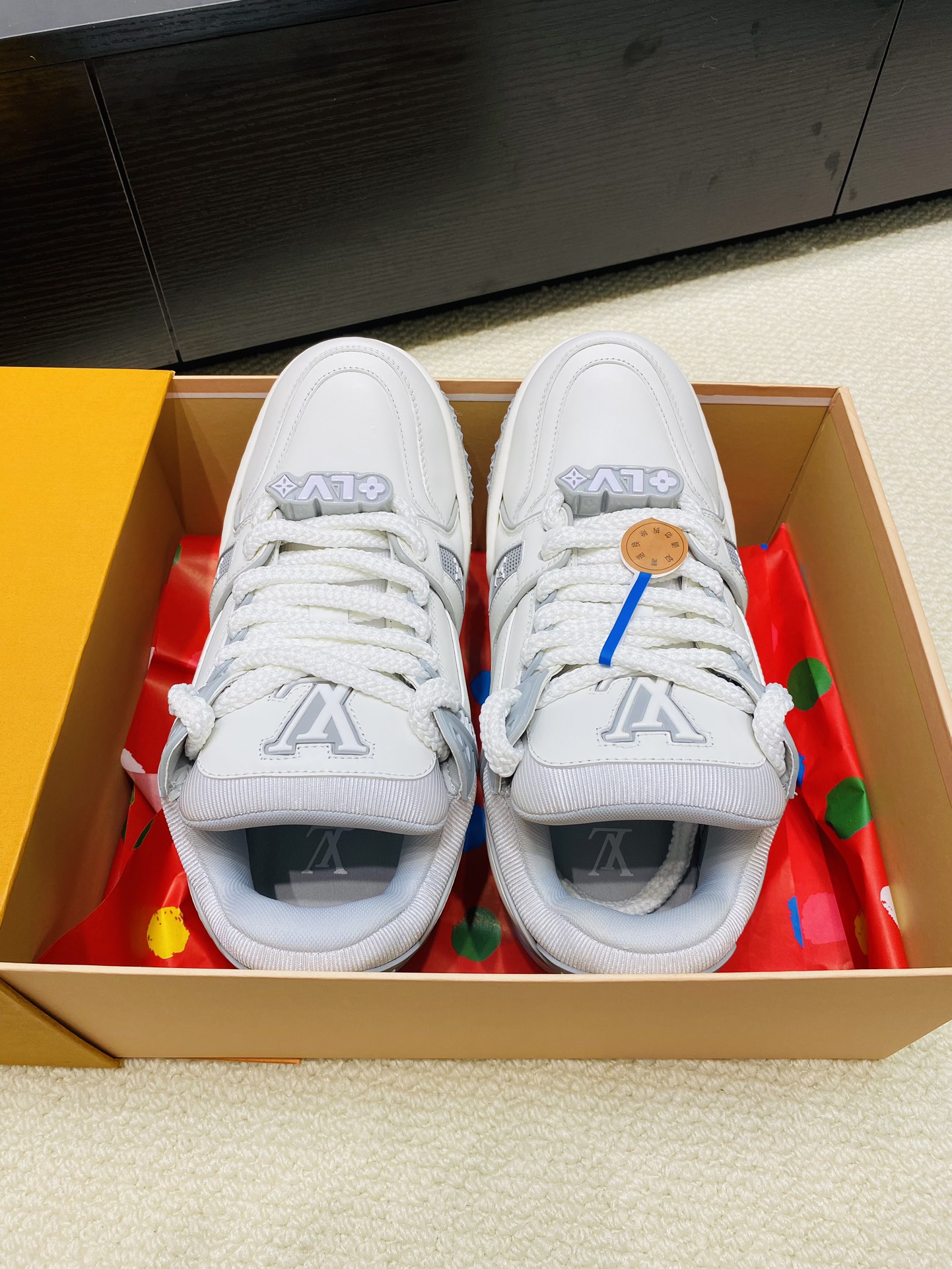 这款鞋子是AAAAA 1:1 质量 (非常棒). 使用了和原版一模一样的材料. 商标部分也保持了和路易威登/Louis Vuitton一样. 图片拍摄是实物鞋子拍摄, 您所收到的实物保证和我们图片一模一样.