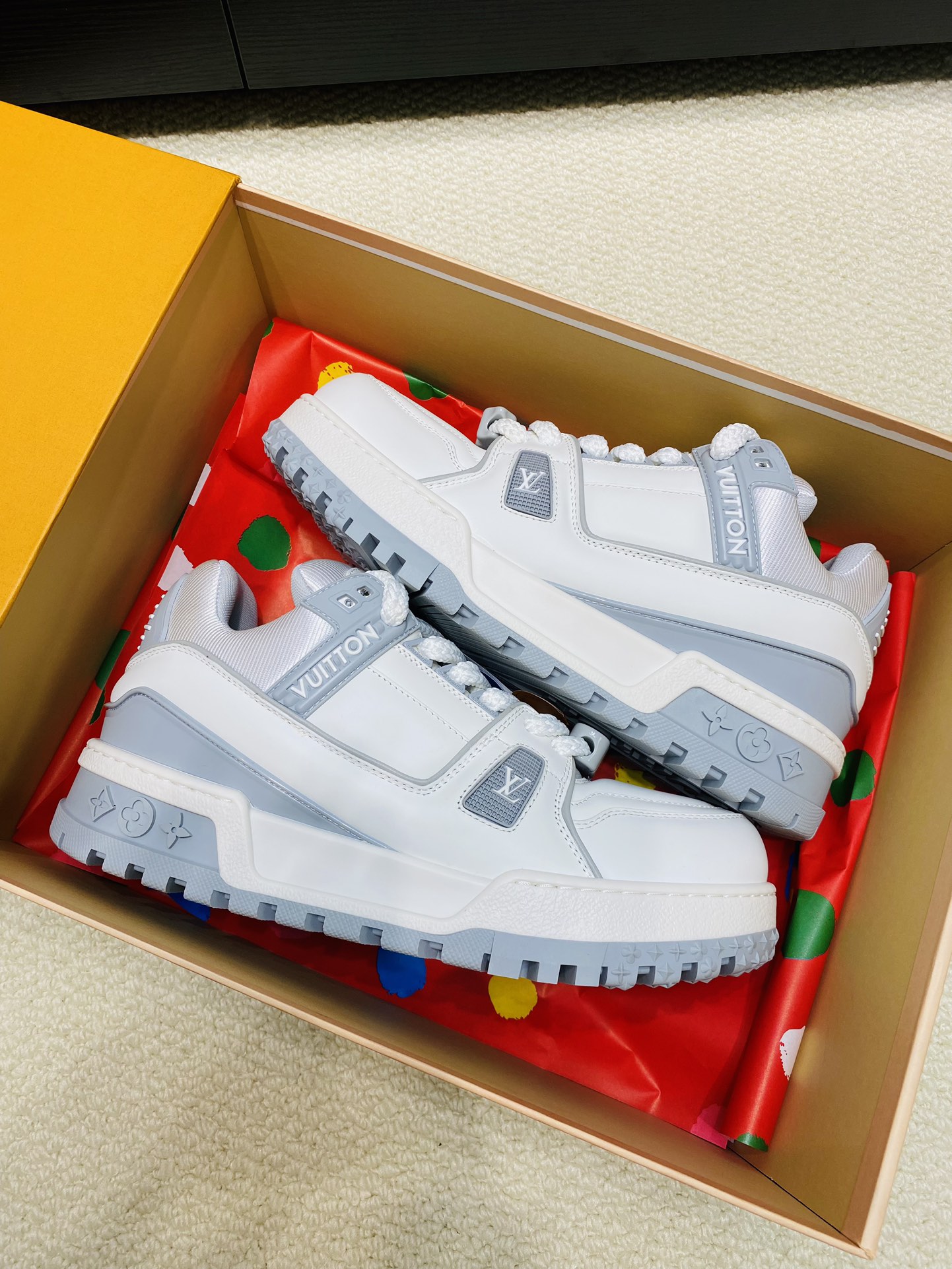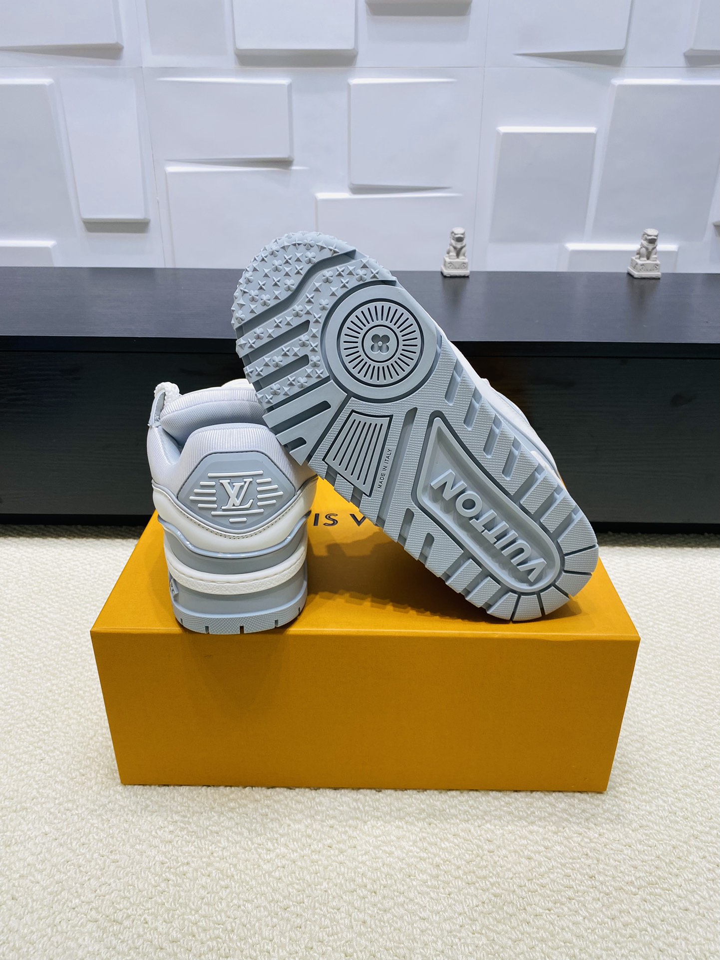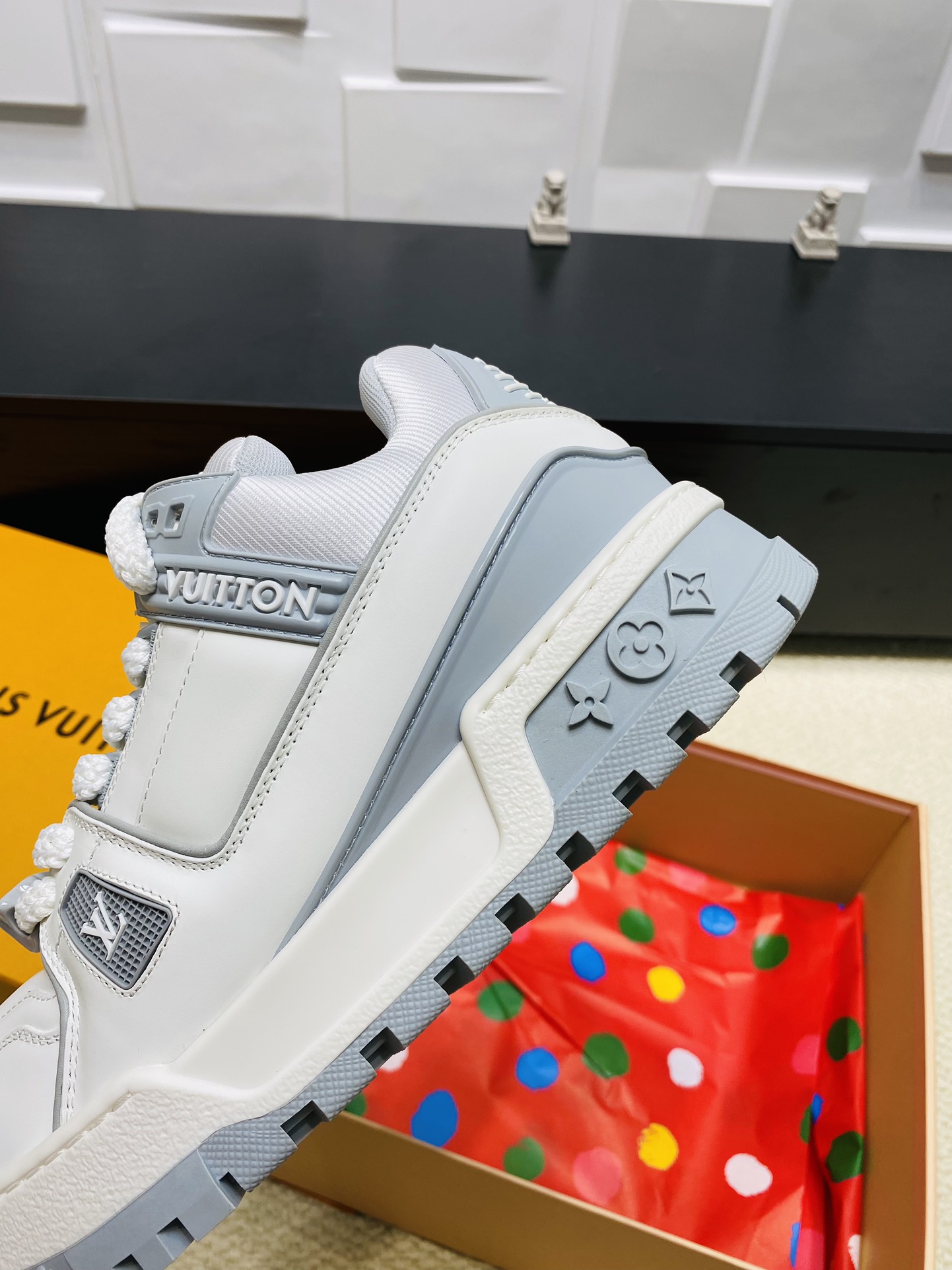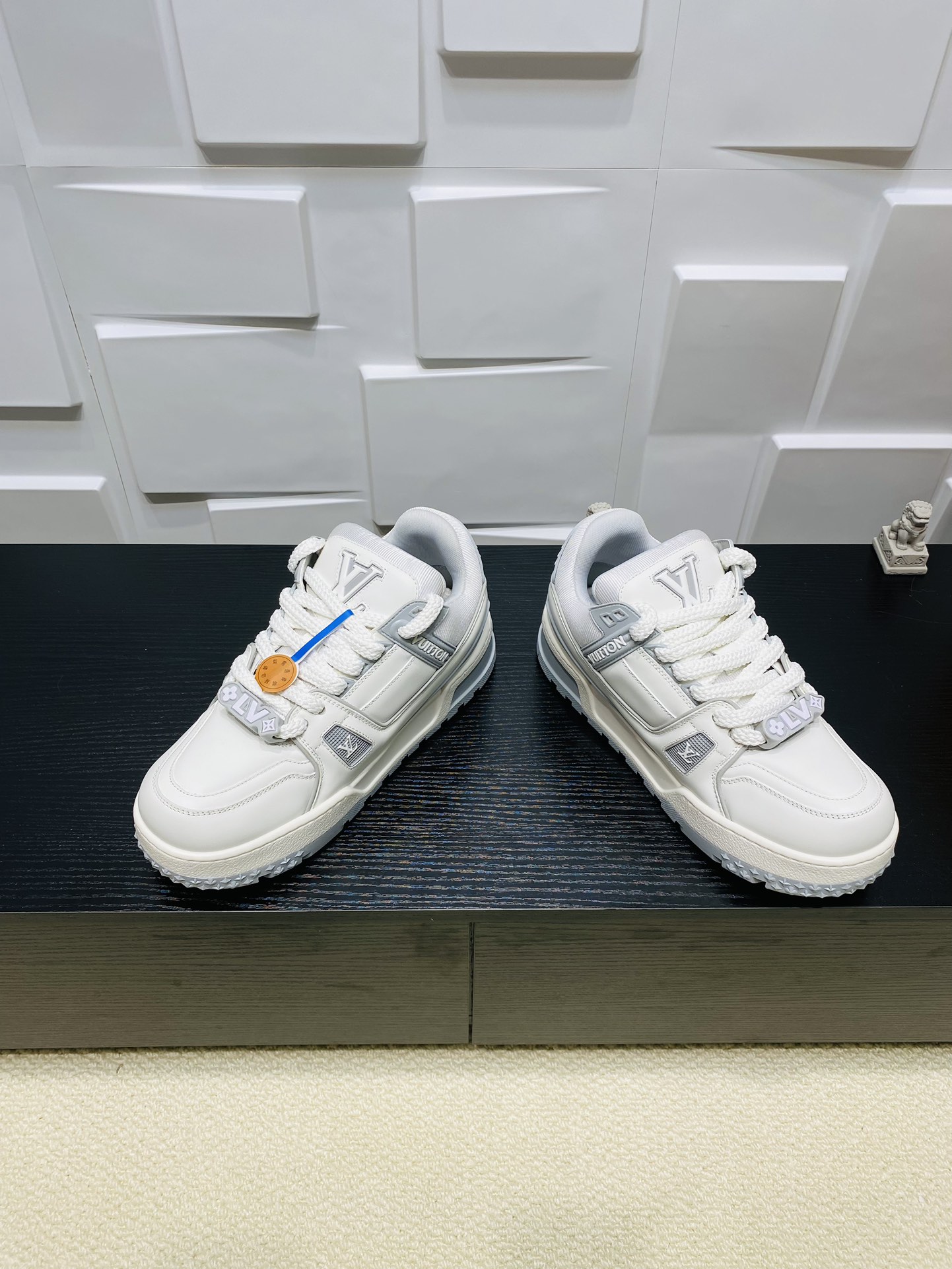 这款鞋子是AAAAA 1:1 质量 (非常棒). 使用了和原版一模一样的材料. 商标部分也保持了和路易威登/Louis Vuitton一样. 图片拍摄是实物鞋子拍摄, 您所收到的实物保证和我们图片一模一样.