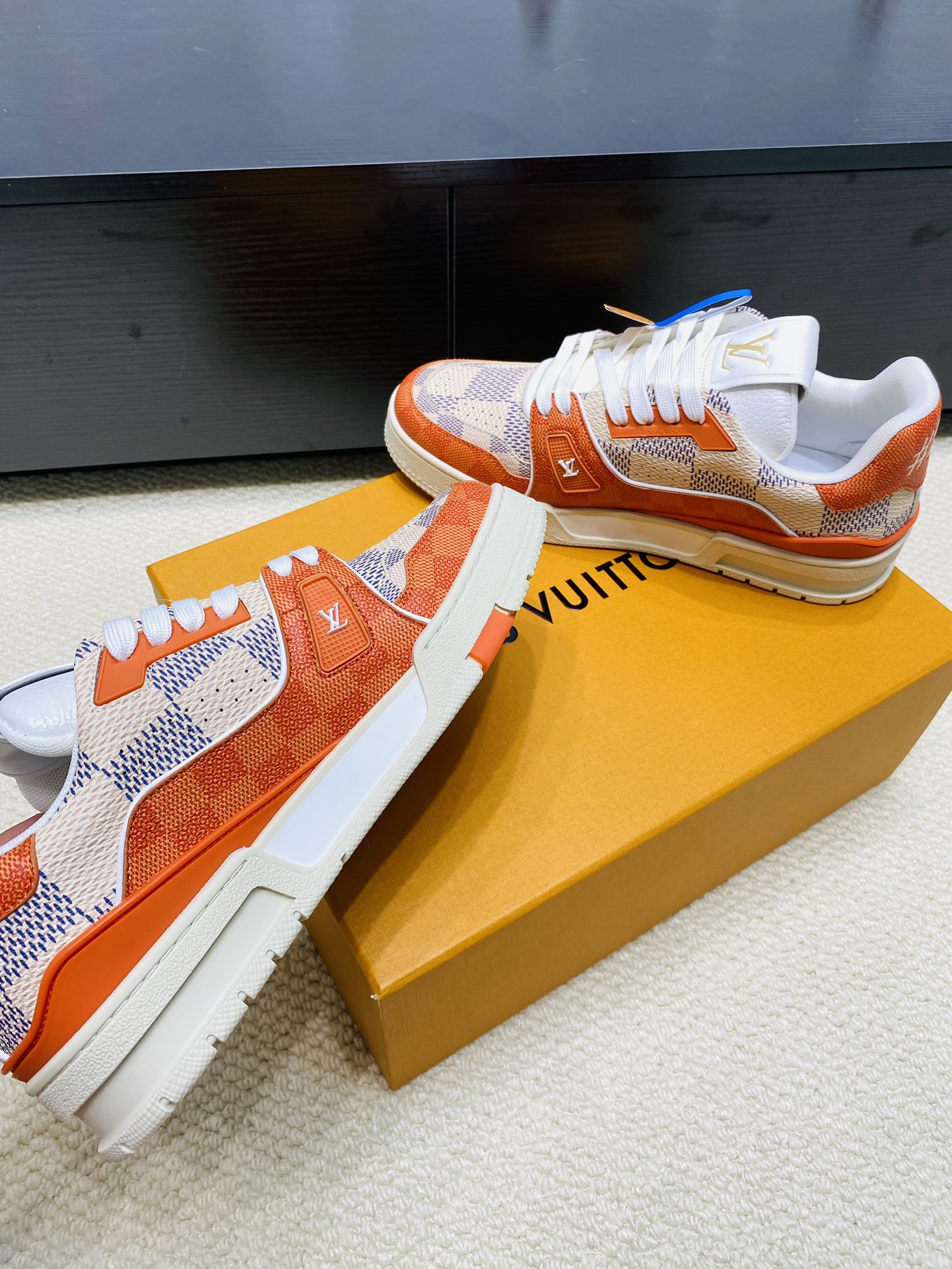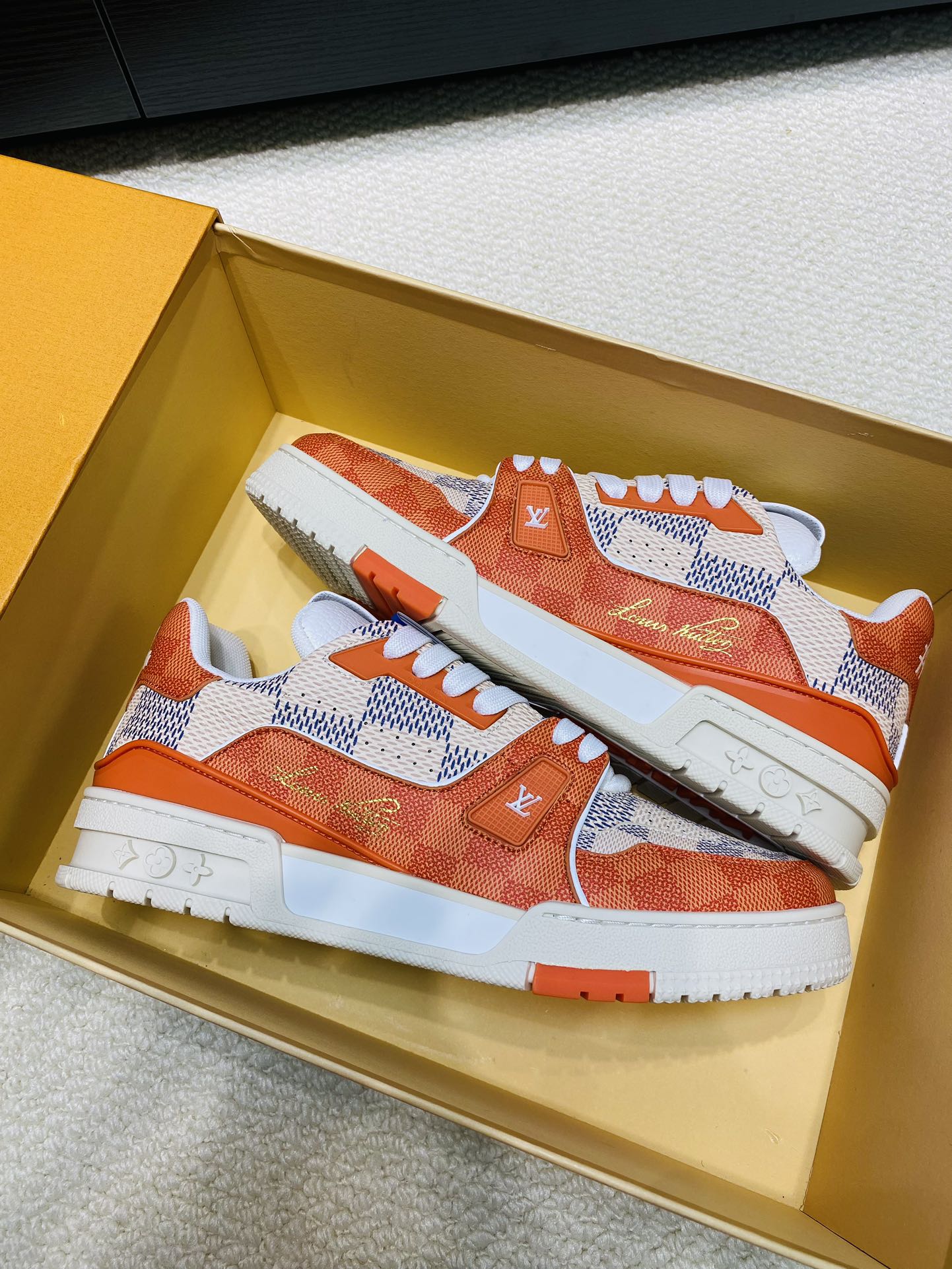 这款鞋子是AAAAA 1:1 质量 (非常棒). 使用了和原版一模一样的材料. 商标部分也保持了和路易威登/Louis Vuitton一样. 图片拍摄是实物鞋子拍摄, 您所收到的实物保证和我们图片一模一样.