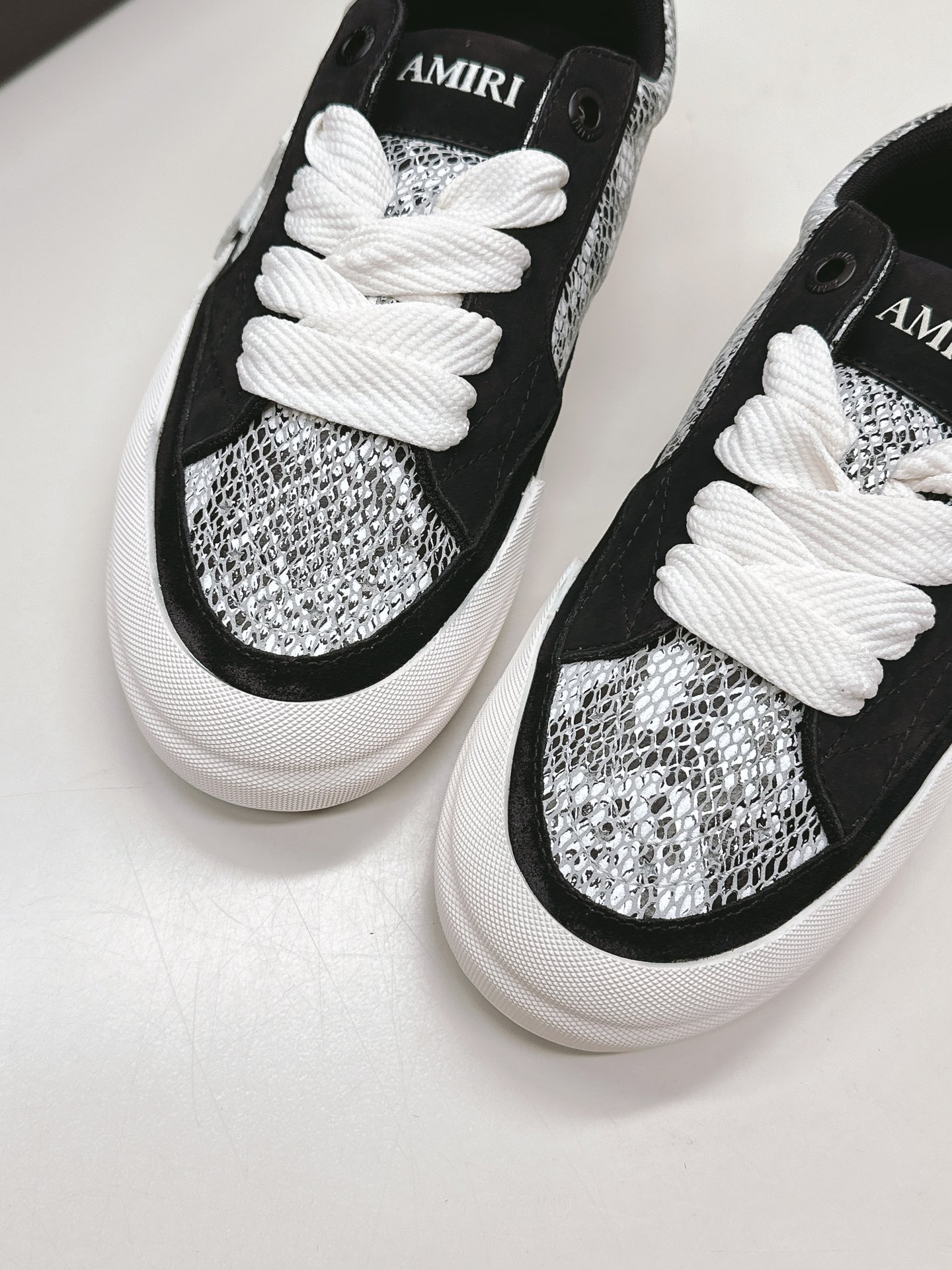 这款鞋子是AAAAA 1:1 质量 (非常棒). 使用了和原版一模一样的材料. 商标部分也保持了和AMIRI一样. 图片拍摄是实物鞋子拍摄, 您所收到的实物保证和我们图片一模一样.