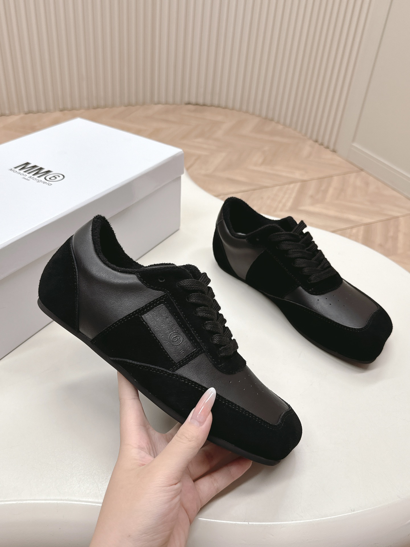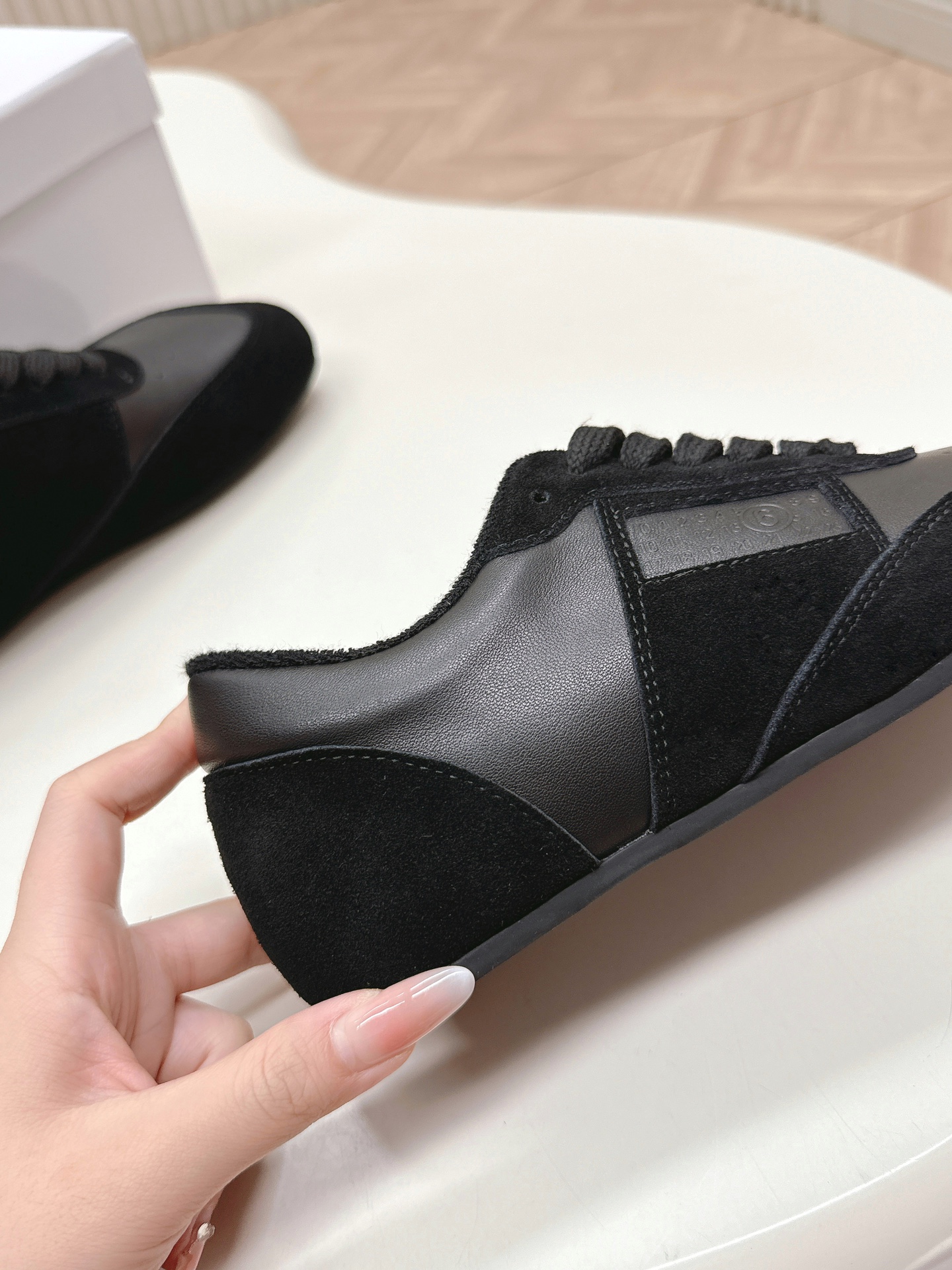 这款鞋子是AAAAA 1:1 质量 (非常棒). 使用了和原版一模一样的材料. 商标部分也保持了和Maison Margiela一样. 图片拍摄是实物鞋子拍摄, 您所收到的实物保证和我们图片一模一样.