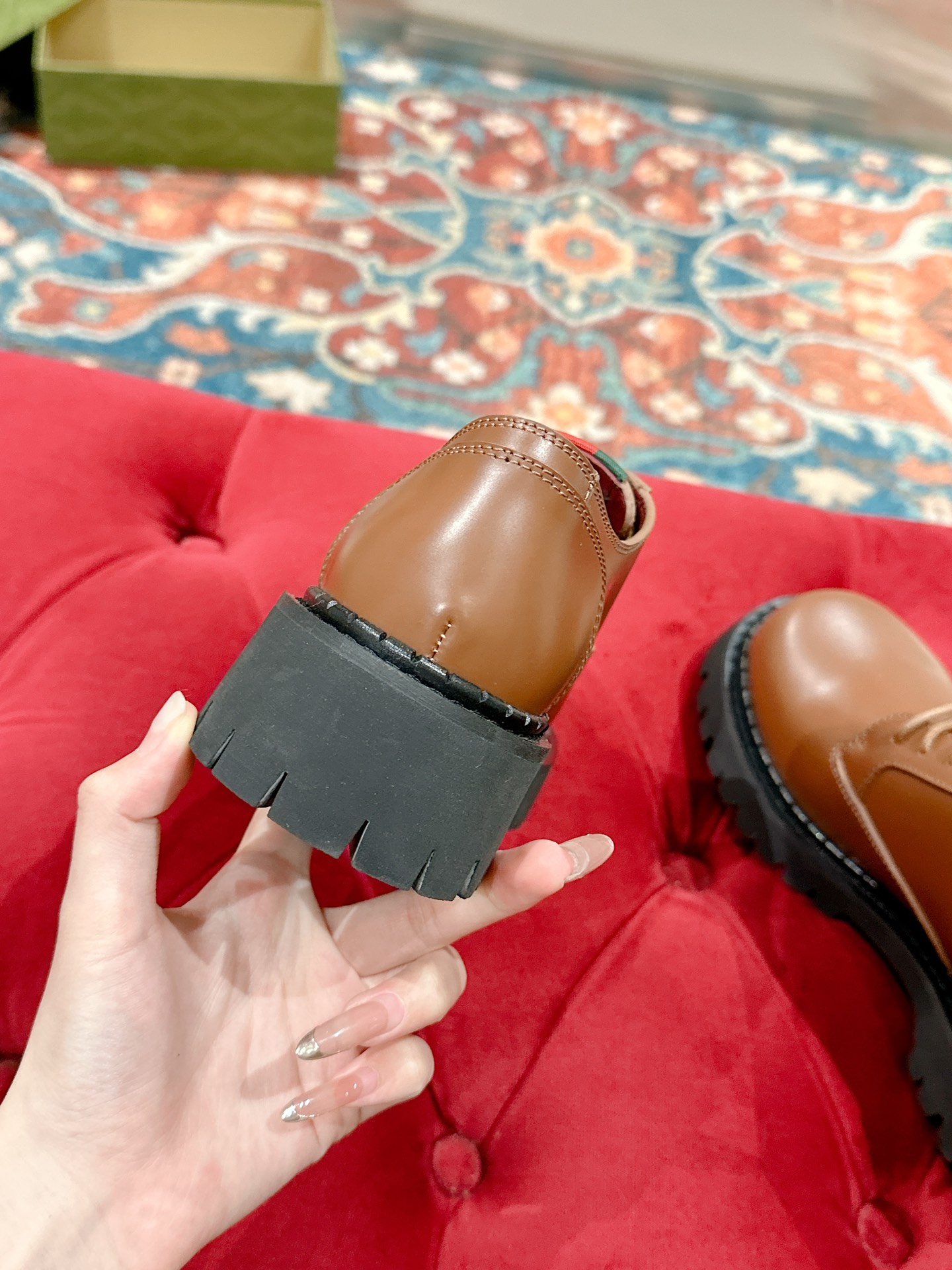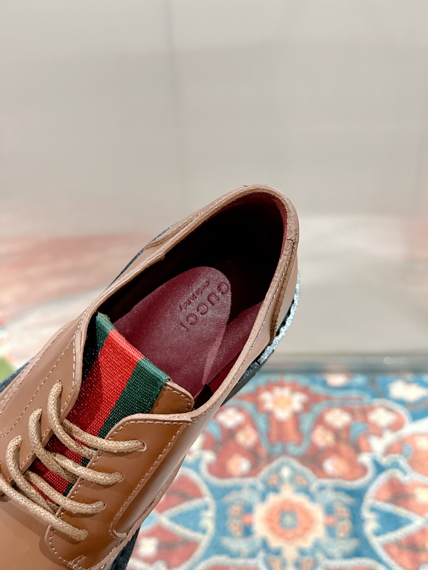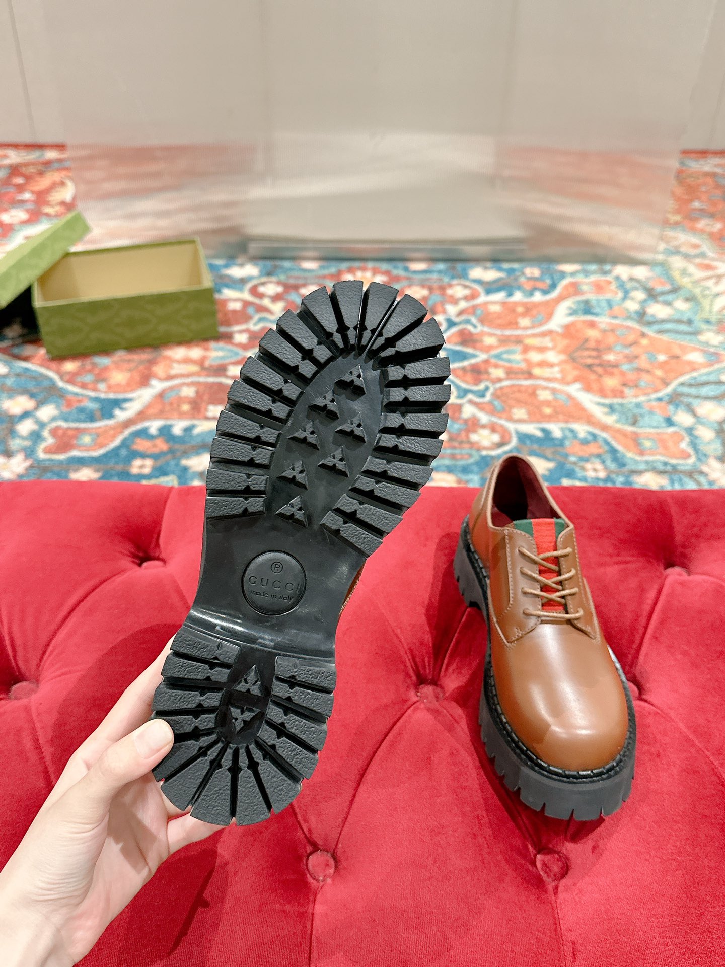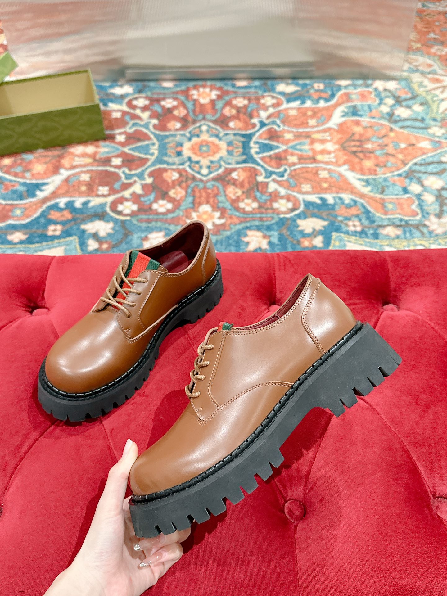 这款鞋子是AAAAA 1:1 质量 (非常棒). 使用了和原版一模一样的材料. 商标部分也保持了和古奇/Gucci一样. 图片拍摄是实物鞋子拍摄, 您所收到的实物保证和我们图片一模一样.
