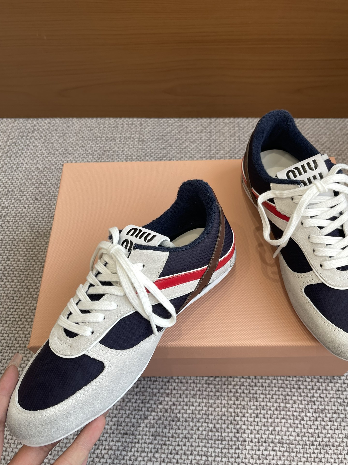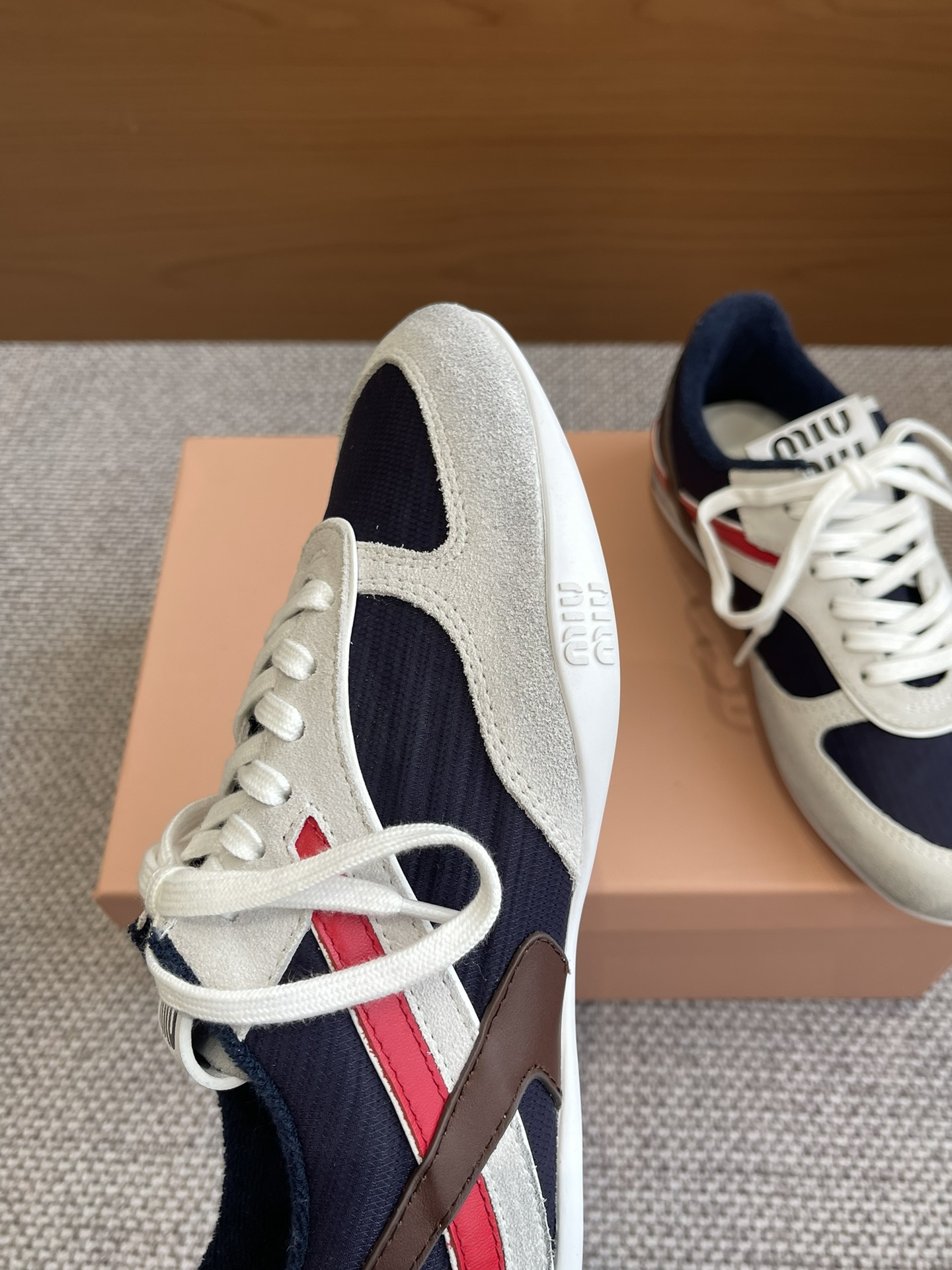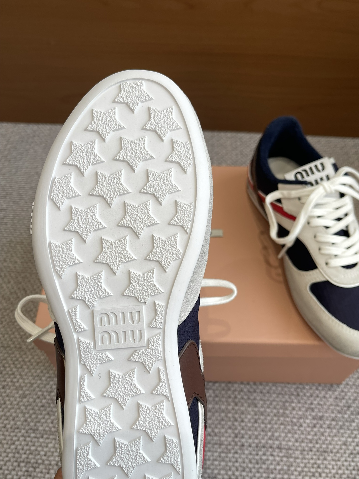 这款鞋子是AAAAA 1:1 质量 (非常棒). 使用了和原版一模一样的材料. 商标部分也保持了和缪缪/Miu Miu一样. 图片拍摄是实物鞋子拍摄, 您所收到的实物保证和我们图片一模一样.