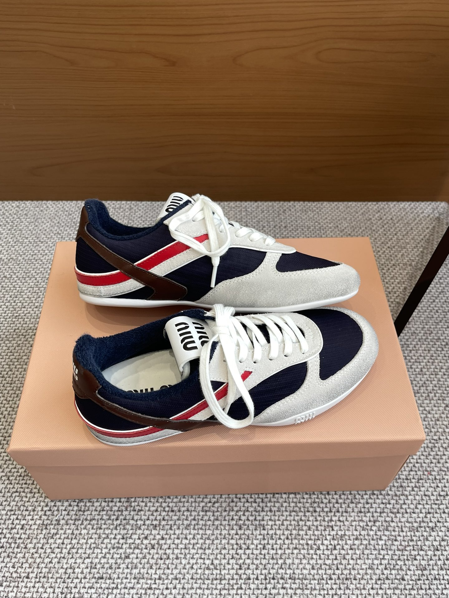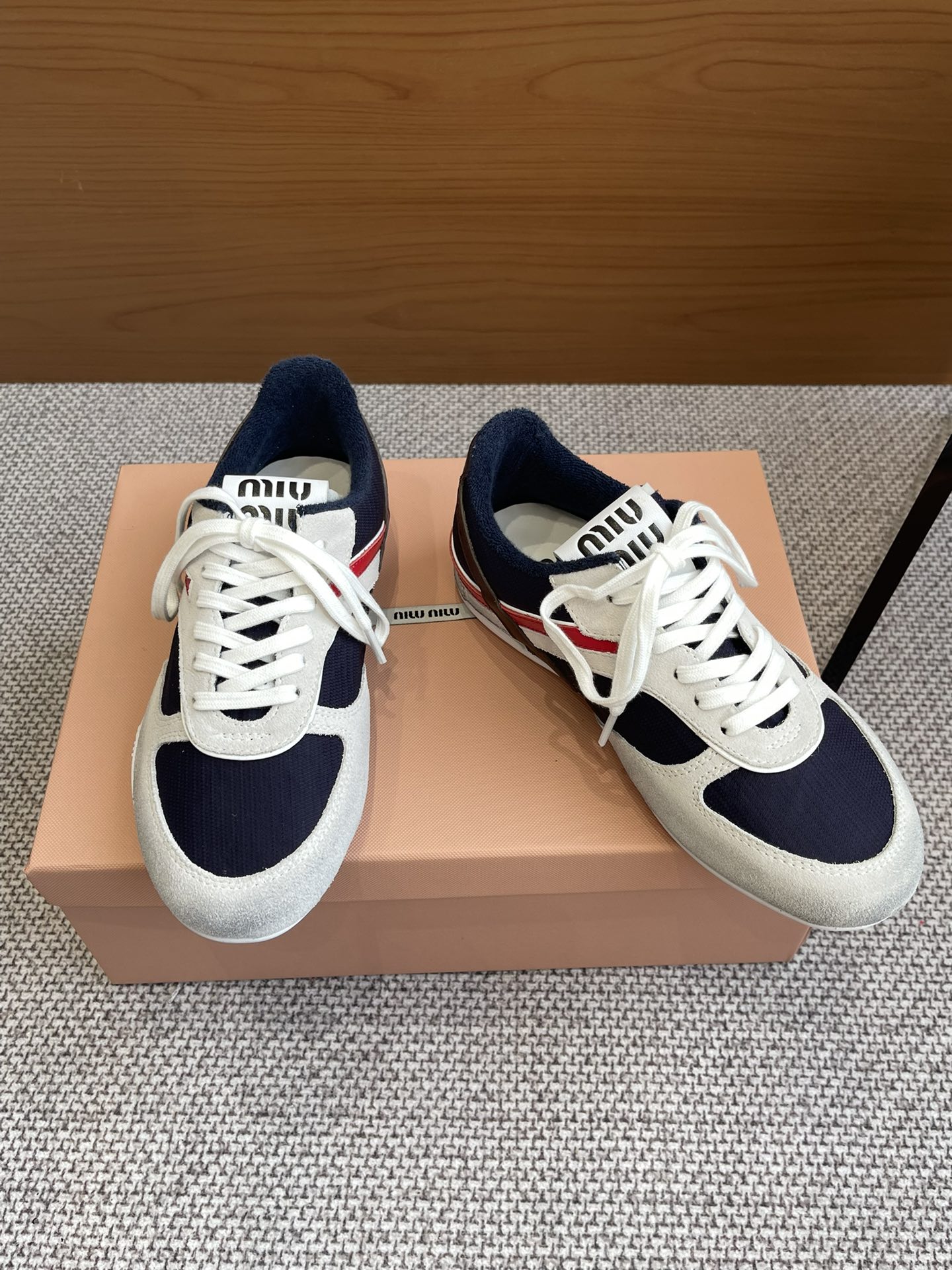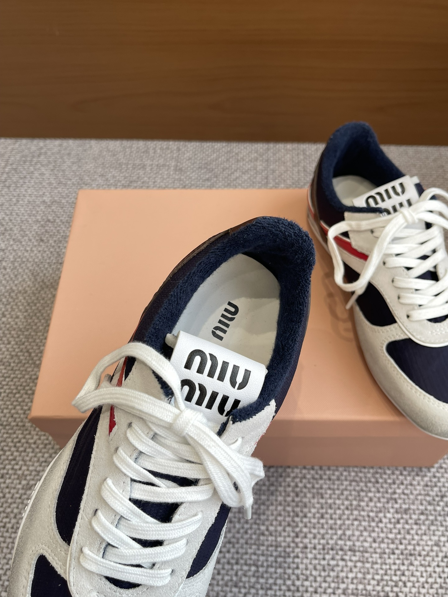 这款鞋子是AAAAA 1:1 质量 (非常棒). 使用了和原版一模一样的材料. 商标部分也保持了和缪缪/Miu Miu一样. 图片拍摄是实物鞋子拍摄, 您所收到的实物保证和我们图片一模一样.