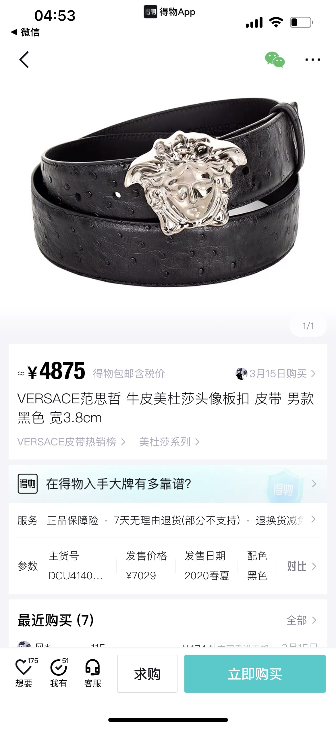 这款皮带是AAAAA 1:1 质量 (非常棒). 使用了和原版一模一样的材料. 商标部分也保持了和范思哲/Versace一样. 图片拍摄是实物皮带拍摄, 您所收到的实物保证和我们图片一模一样.