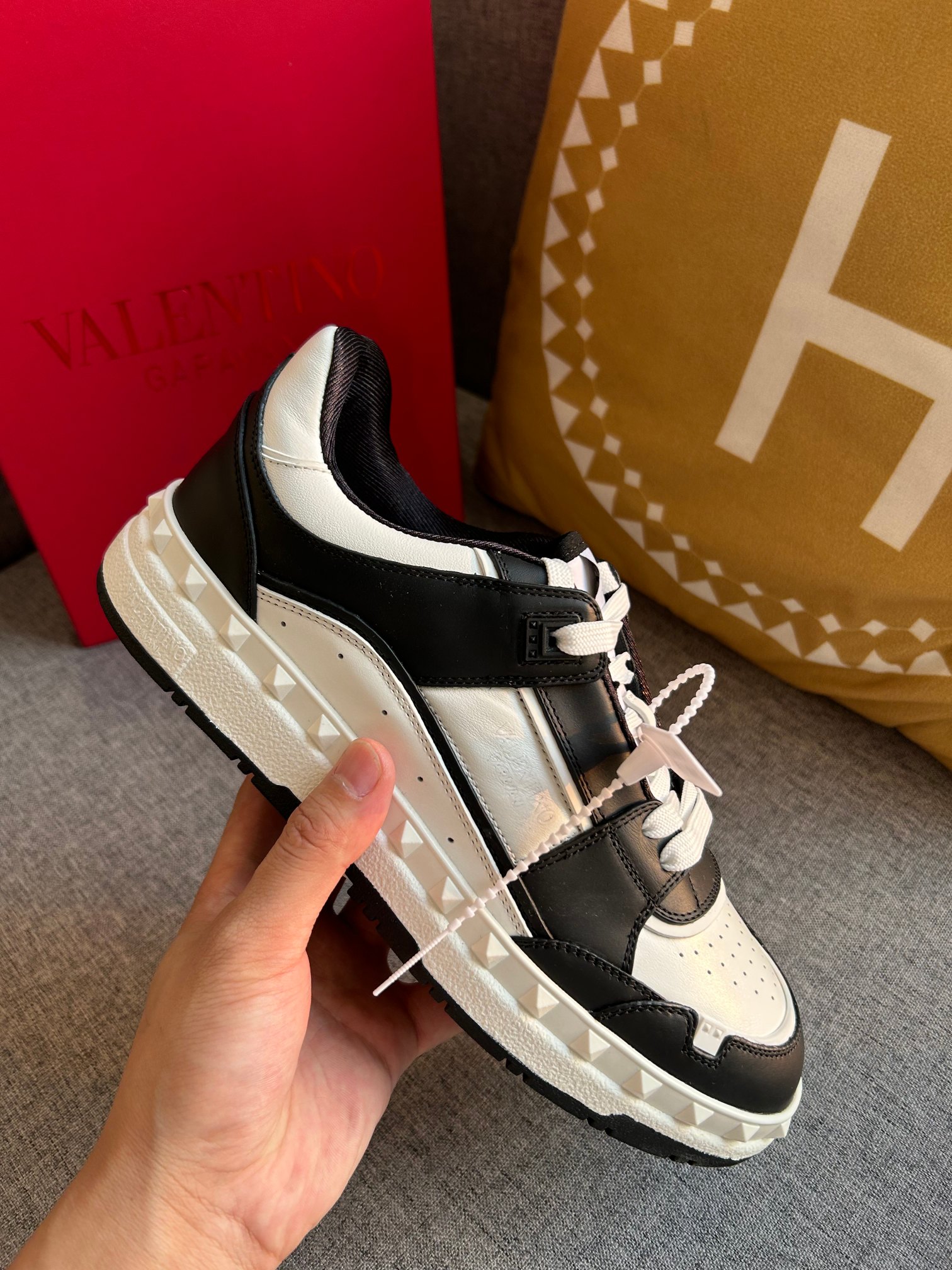 这款鞋子是AAAAA 1:1 质量 (非常棒). 使用了和原版一模一样的材料. 商标部分也保持了和华伦天奴/Valentino一样. 图片拍摄是实物鞋子拍摄, 您所收到的实物保证和我们图片一模一样.