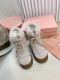 这款鞋子是AAAAA 1:1 质量 (非常棒). 使用了和原版一模一样的材料. 商标部分也保持了和缪缪/Miu Miu一样. 图片拍摄是实物鞋子拍摄, 您所收到的实物保证和我们图片一模一样.