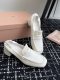 这款鞋子是AAAAA 1:1 质量 (非常棒). 使用了和原版一模一样的材料. 商标部分也保持了和缪缪/Miu Miu一样. 图片拍摄是实物鞋子拍摄, 您所收到的实物保证和我们图片一模一样.