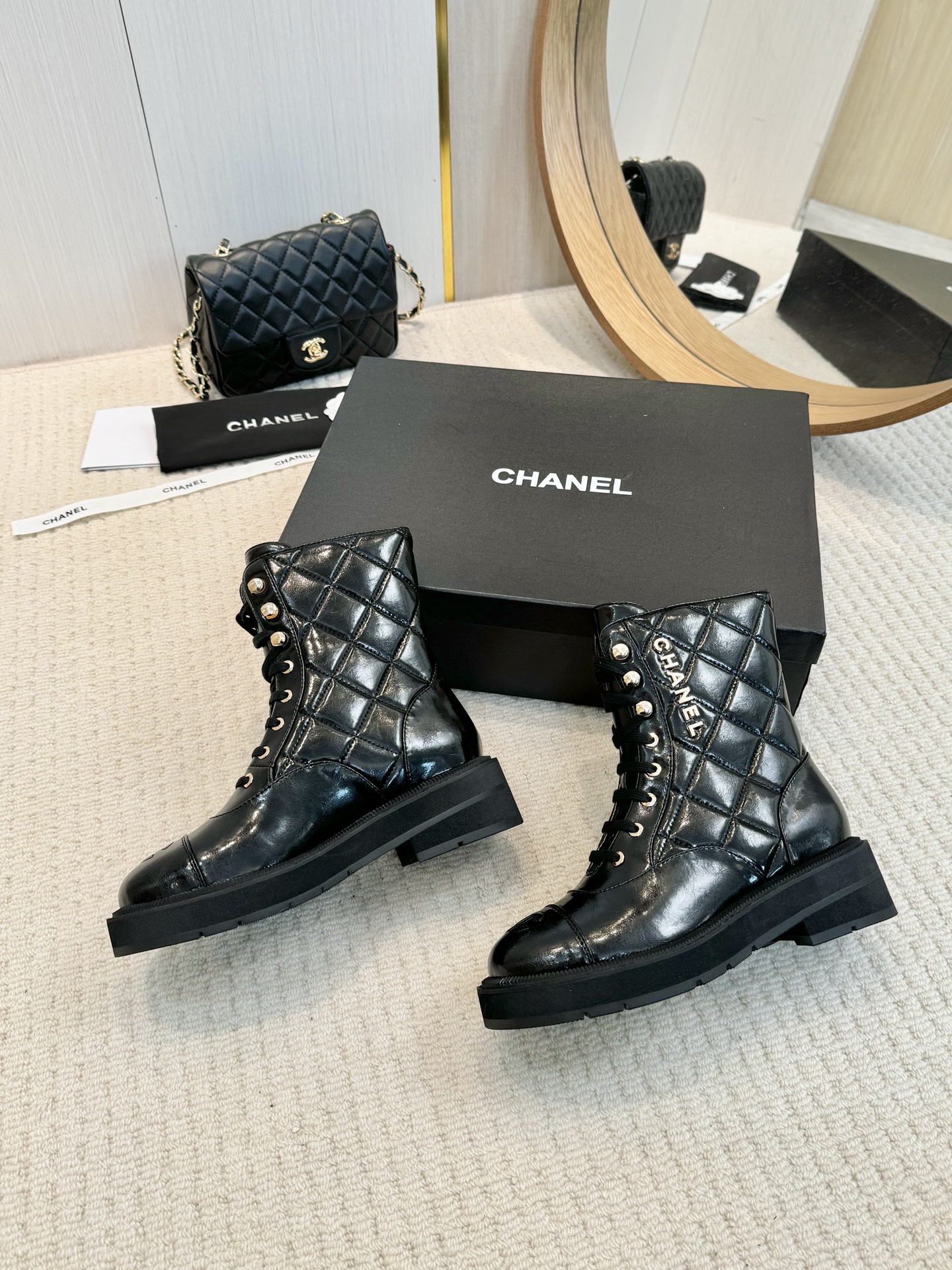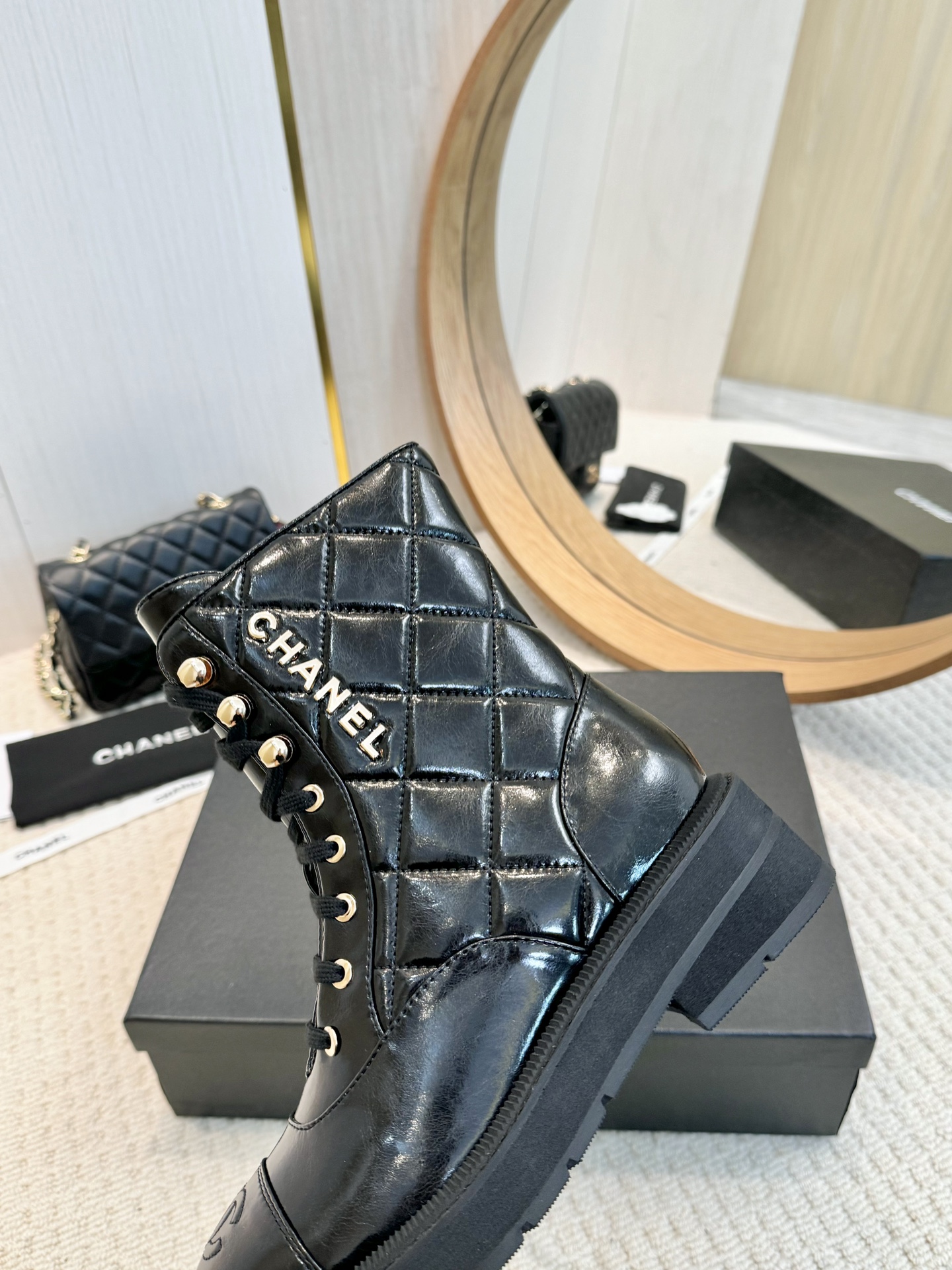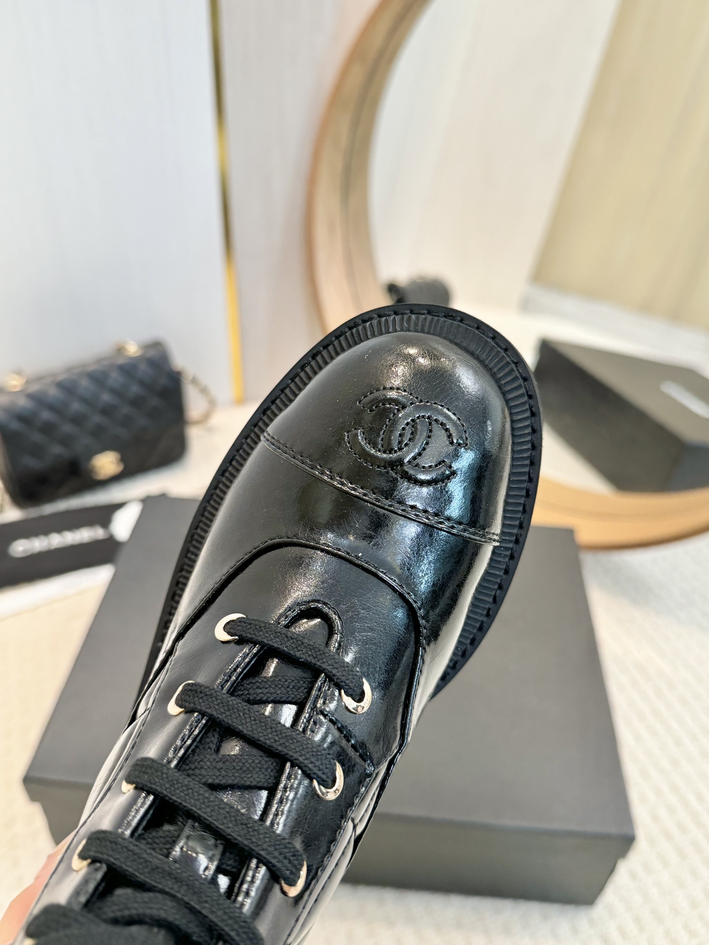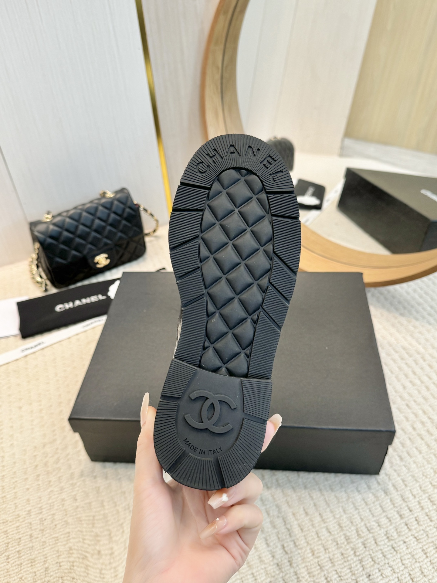 这款鞋子是AAAAA 1:1 质量 (非常棒). 使用了和原版一模一样的材料. 商标部分也保持了和香奈儿/Chanel一样. 图片拍摄是实物鞋子拍摄, 您所收到的实物保证和我们图片一模一样.