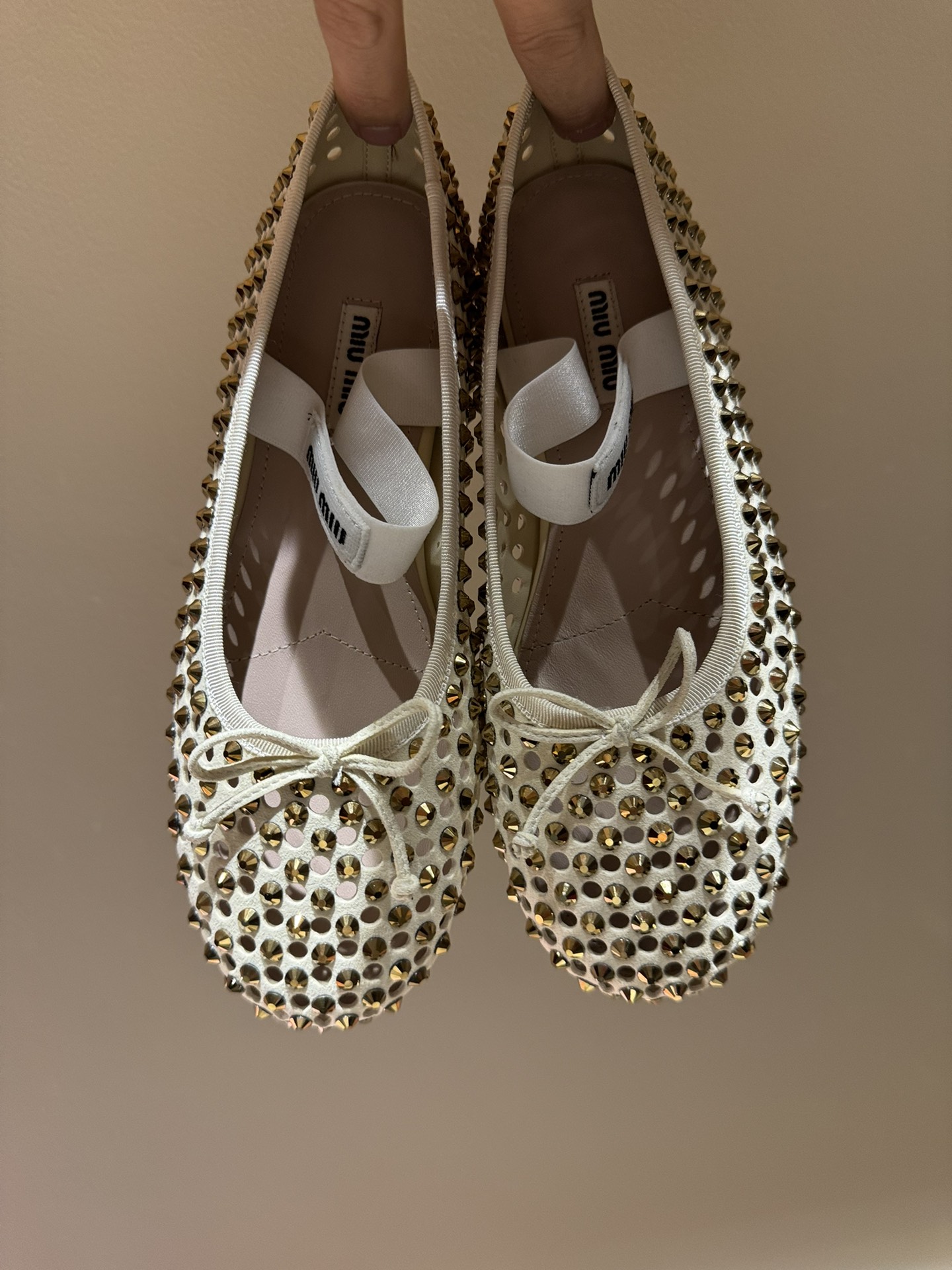 这款鞋子是AAAAA 1:1 质量 (非常棒). 使用了和原版一模一样的材料. 商标部分也保持了和缪缪/Miu Miu一样. 图片拍摄是实物鞋子拍摄, 您所收到的实物保证和我们图片一模一样.