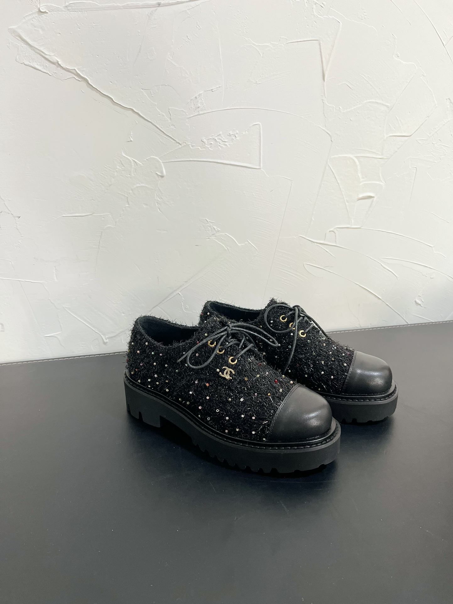这款鞋子是AAAAA 1:1 质量 (非常棒). 使用了和原版一模一样的材料. 商标部分也保持了和香奈儿/Chanel一样. 图片拍摄是实物鞋子拍摄, 您所收到的实物保证和我们图片一模一样.
