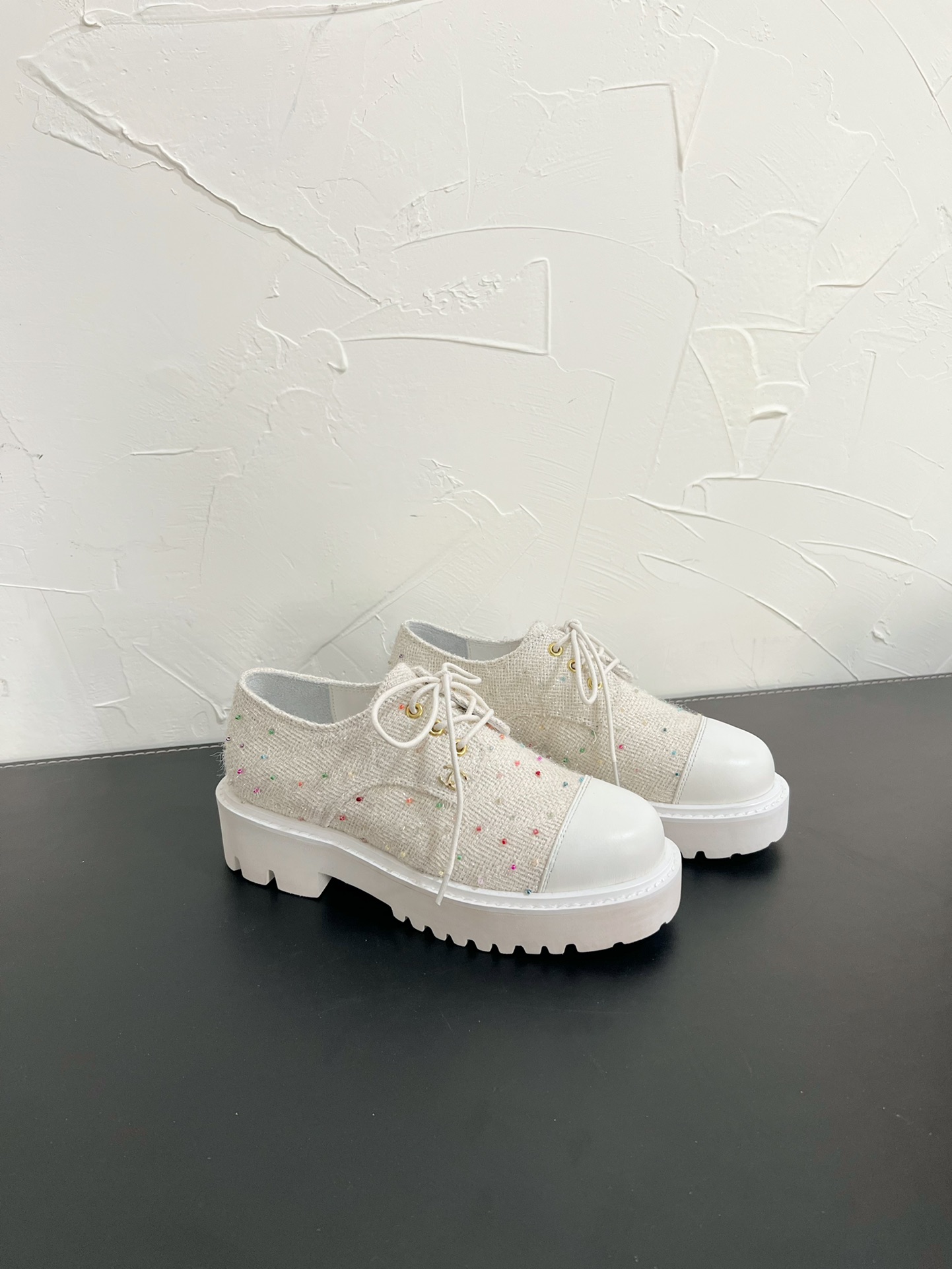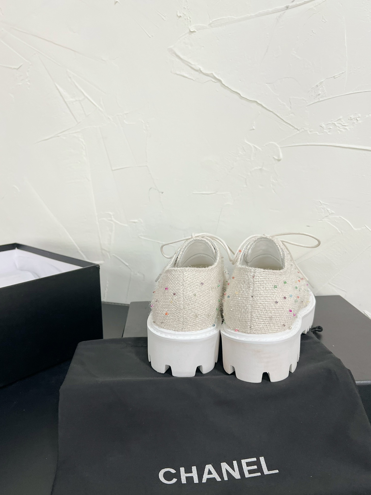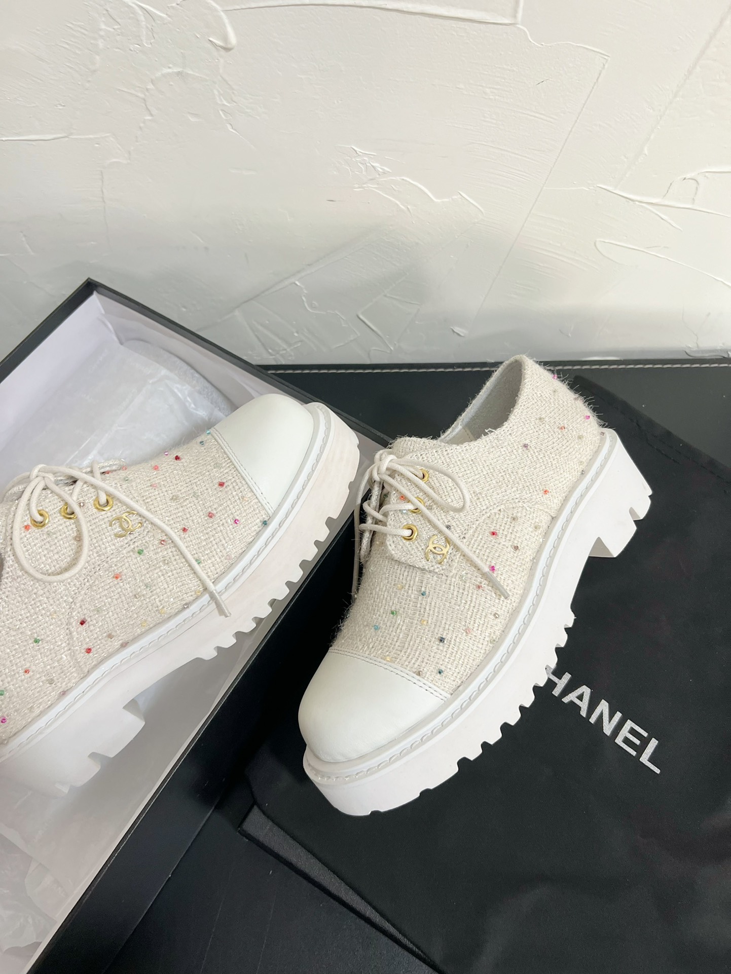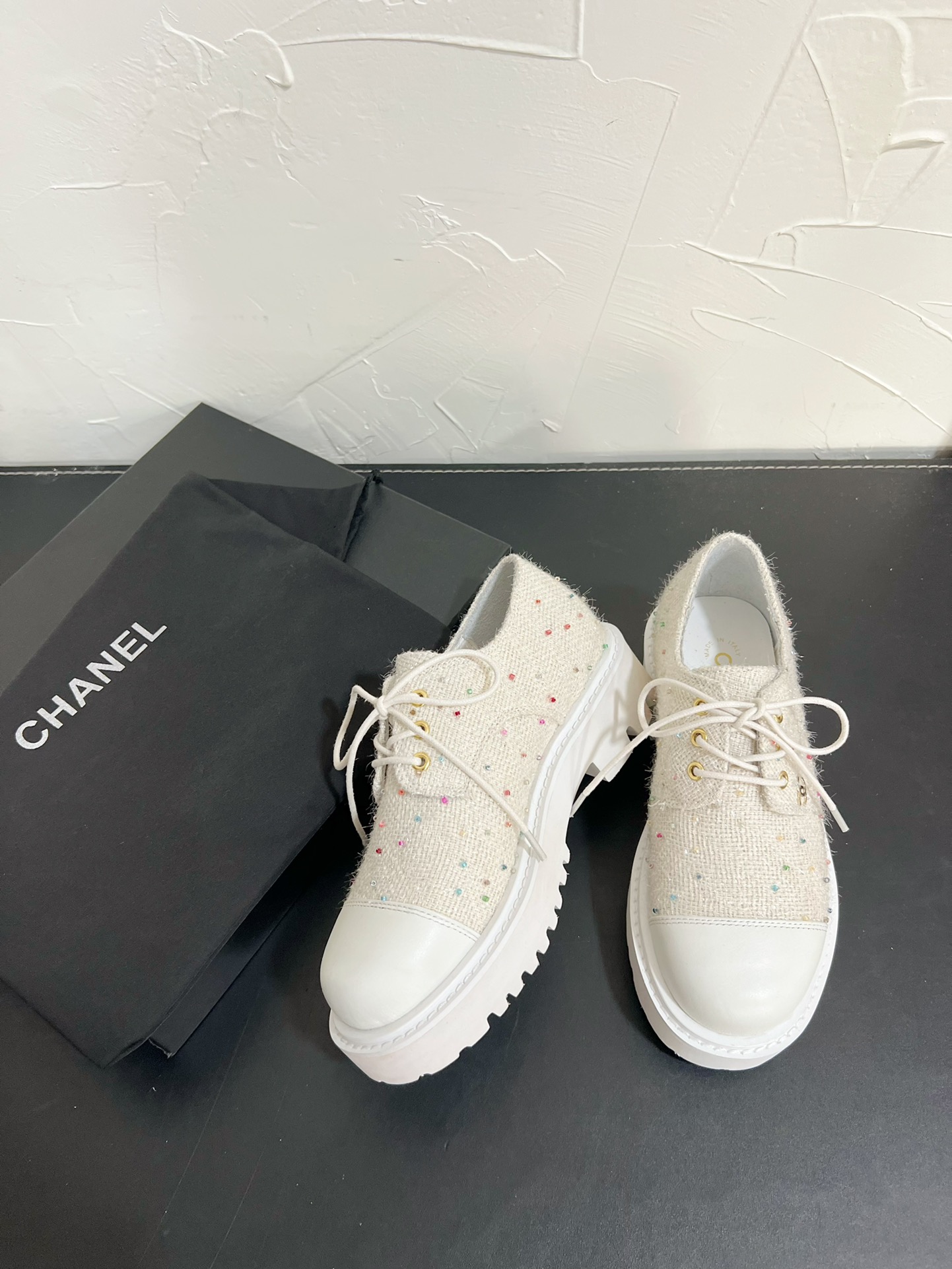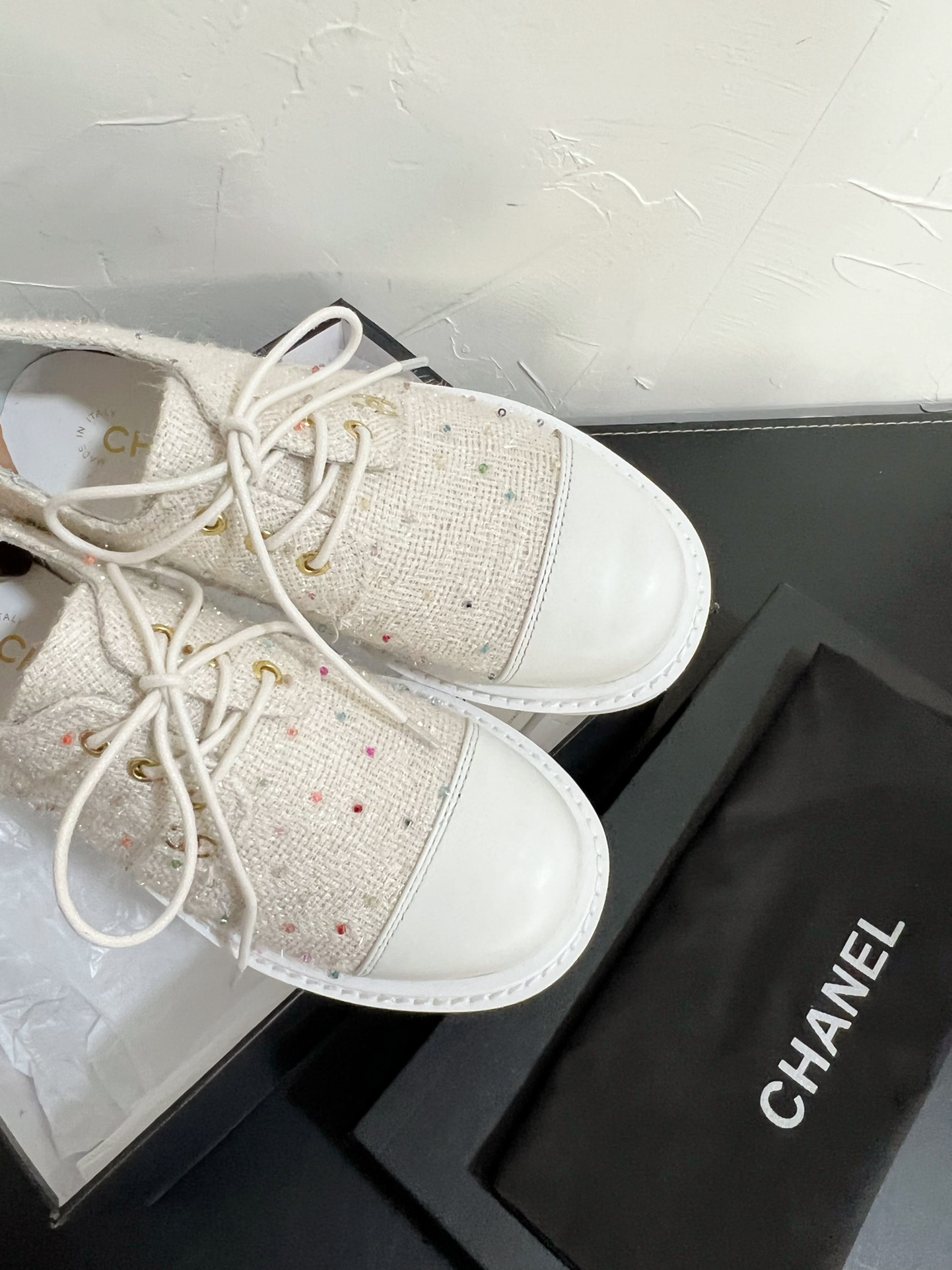 这款鞋子是AAAAA 1:1 质量 (非常棒). 使用了和原版一模一样的材料. 商标部分也保持了和香奈儿/Chanel一样. 图片拍摄是实物鞋子拍摄, 您所收到的实物保证和我们图片一模一样.