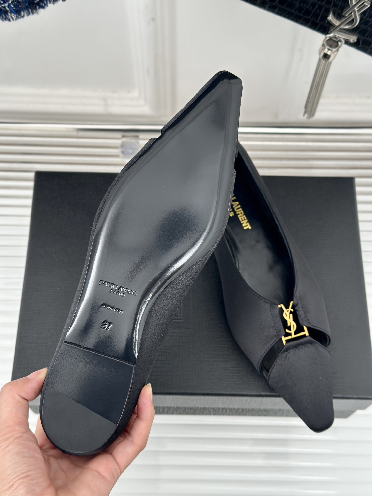 这款鞋子是AAAAA 1:1 质量 (非常棒). 使用了和原版一模一样的材料. 商标部分也保持了和圣罗兰/Saint Laurent一样. 图片拍摄是实物鞋子拍摄, 您所收到的实物保证和我们图片一模一样.