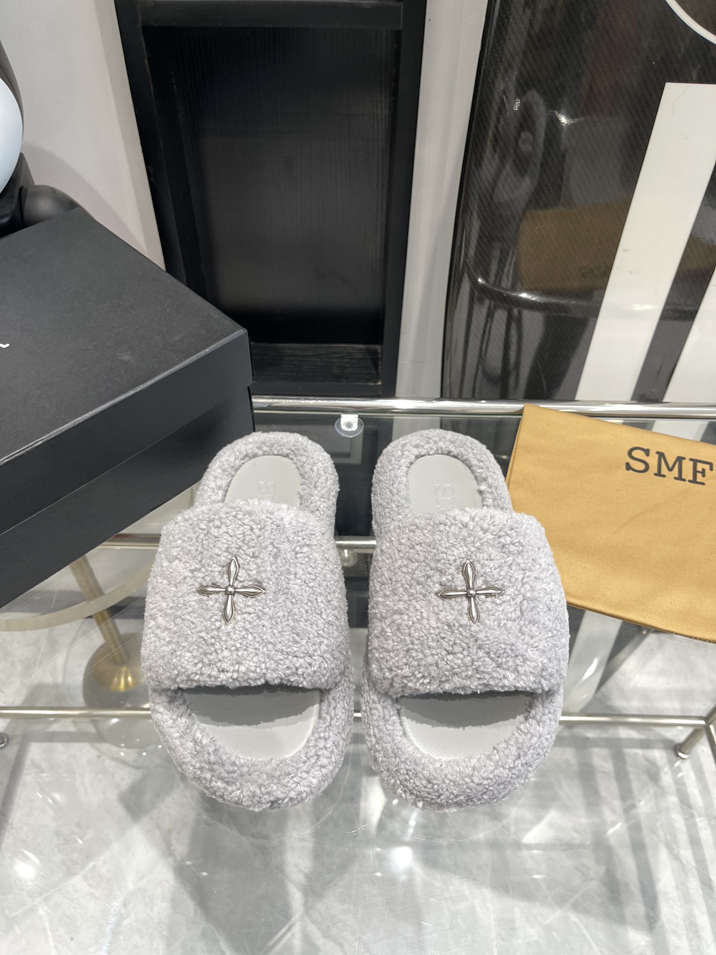 这款鞋子是AAAAA 1:1 质量 (非常棒). 使用了和原版一模一样的材料. 商标部分也保持了和SMFK一样. 图片拍摄是实物鞋子拍摄, 您所收到的实物保证和我们图片一模一样.