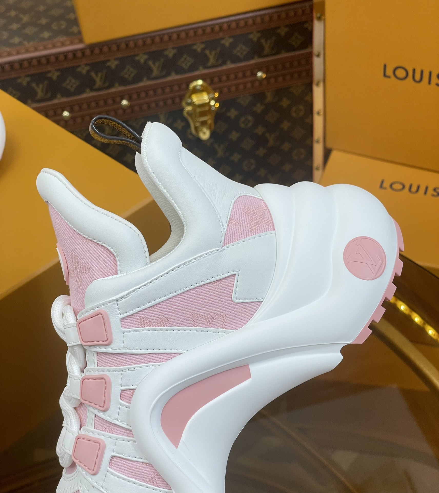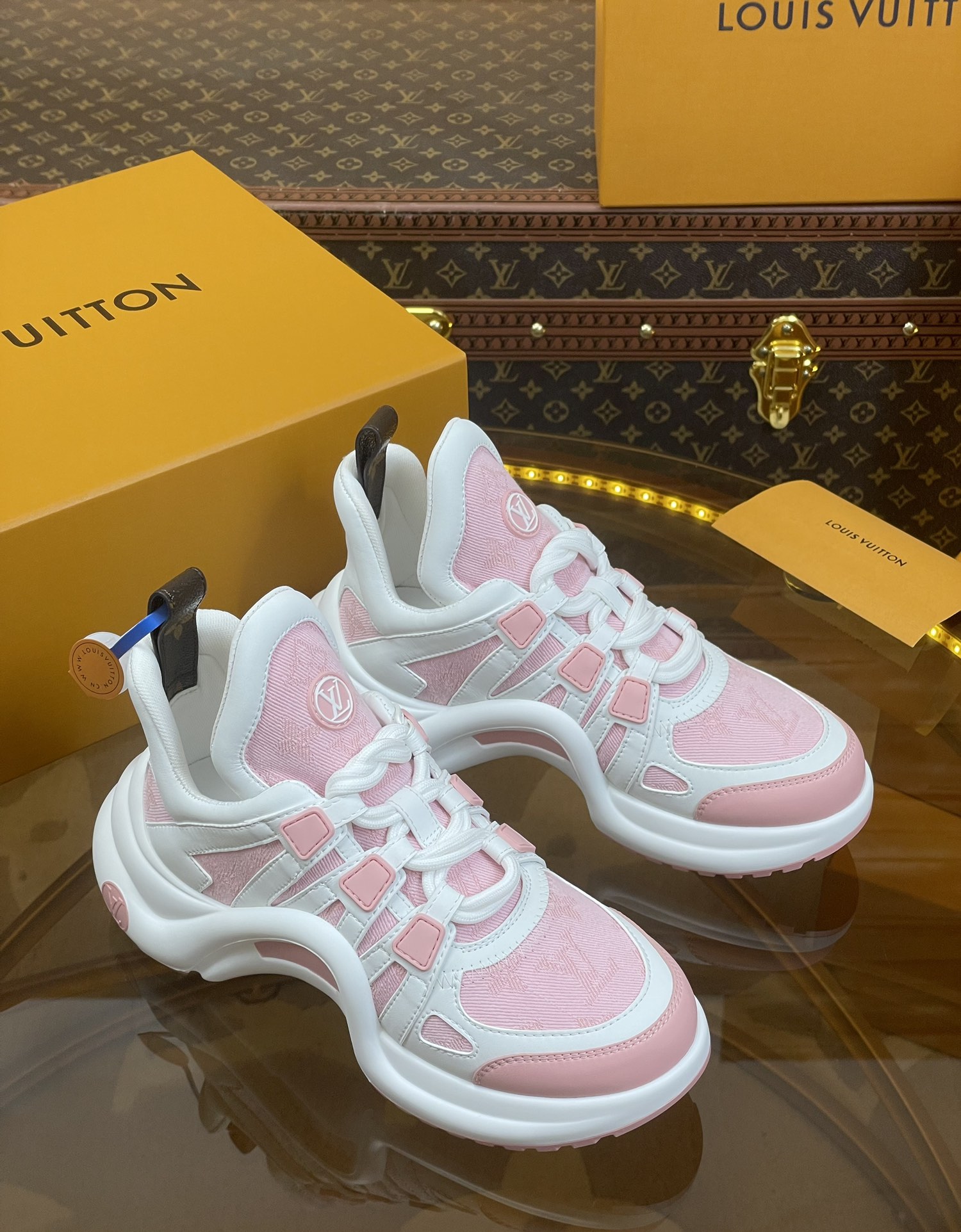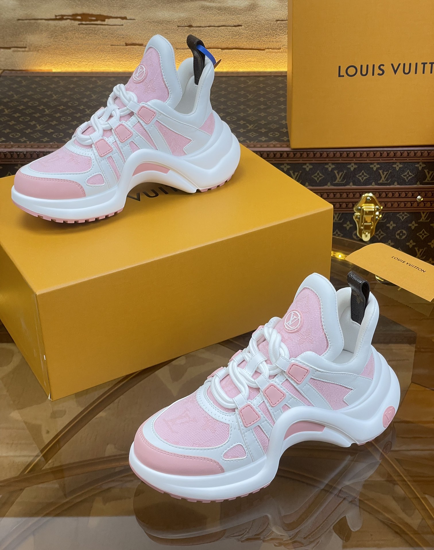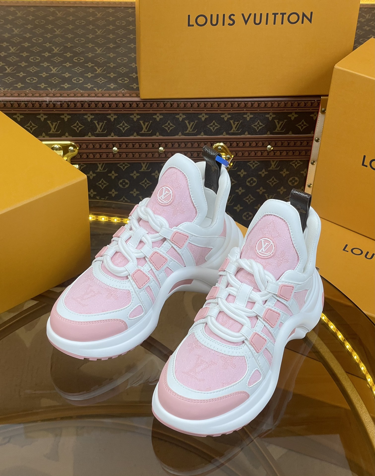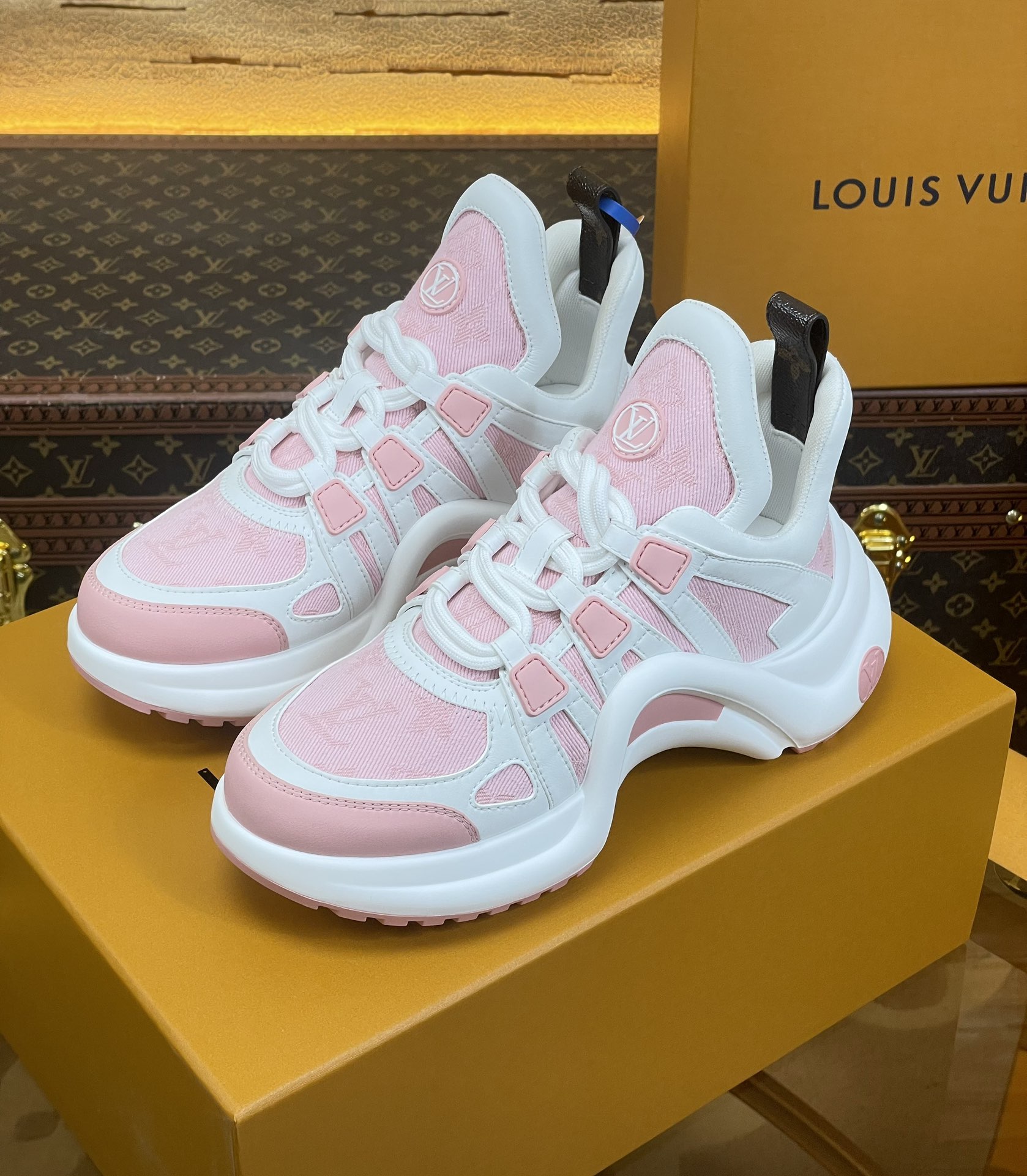 这款鞋子是AAAAA 1:1 质量 (非常棒). 使用了和原版一模一样的材料. 商标部分也保持了和路易威登/Louis Vuitton一样. 图片拍摄是实物鞋子拍摄, 您所收到的实物保证和我们图片一模一样.