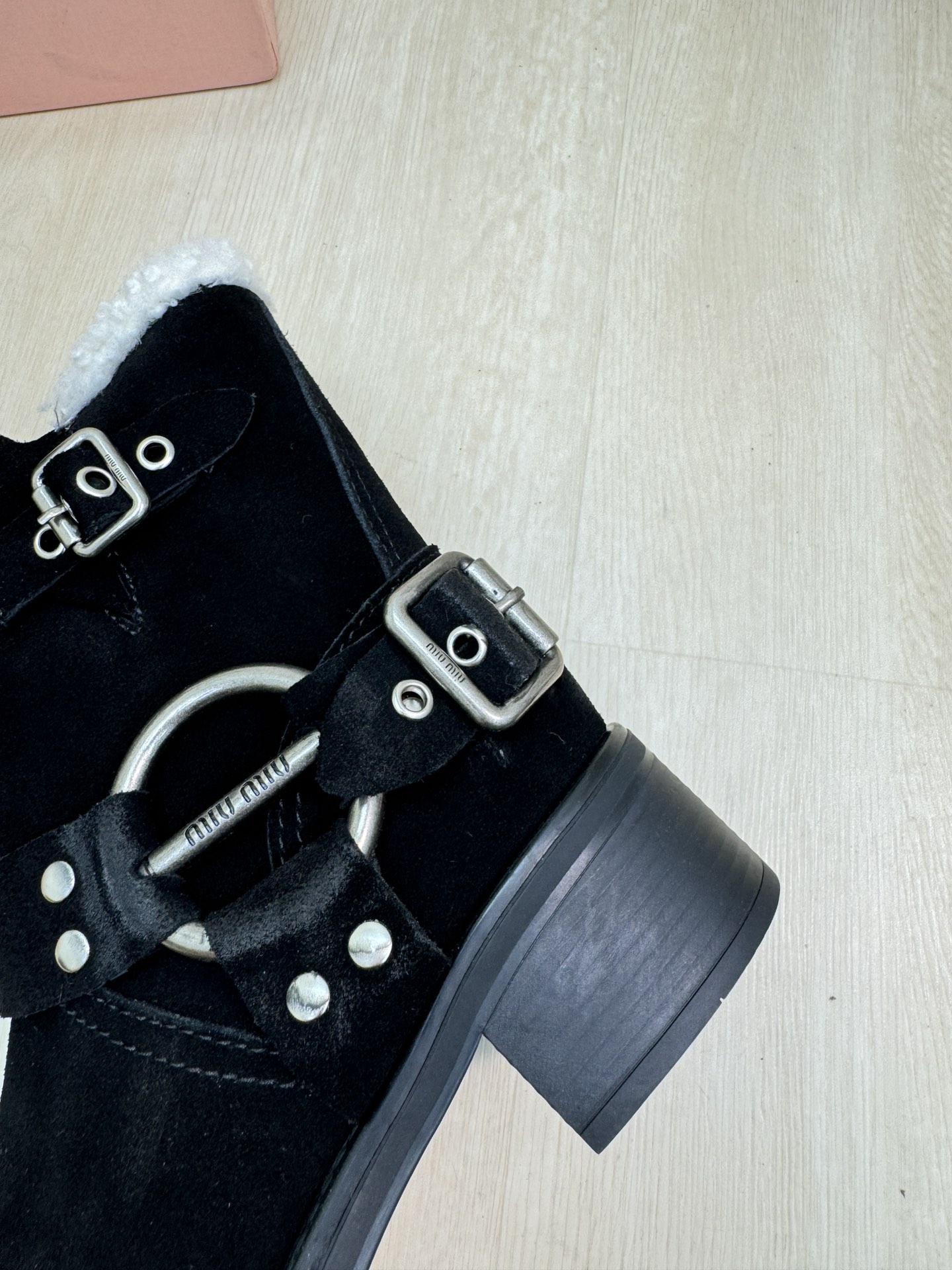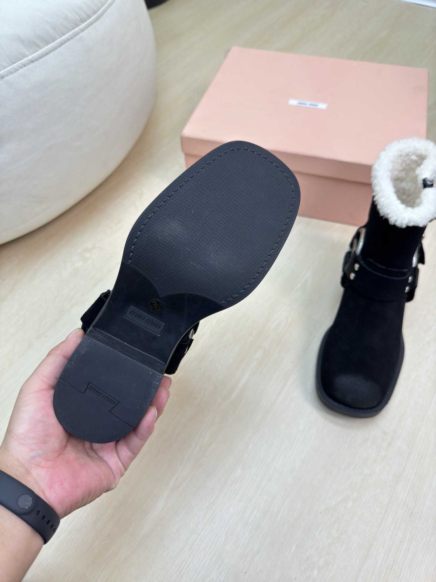 这款鞋子是AAAAA 1:1 质量 (非常棒). 使用了和原版一模一样的材料. 商标部分也保持了和缪缪/Miu Miu一样. 图片拍摄是实物鞋子拍摄, 您所收到的实物保证和我们图片一模一样.