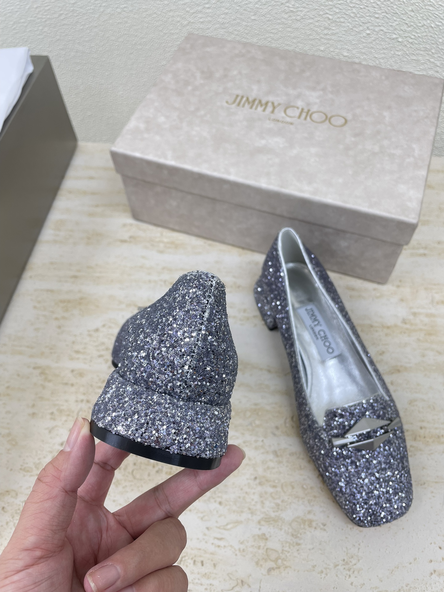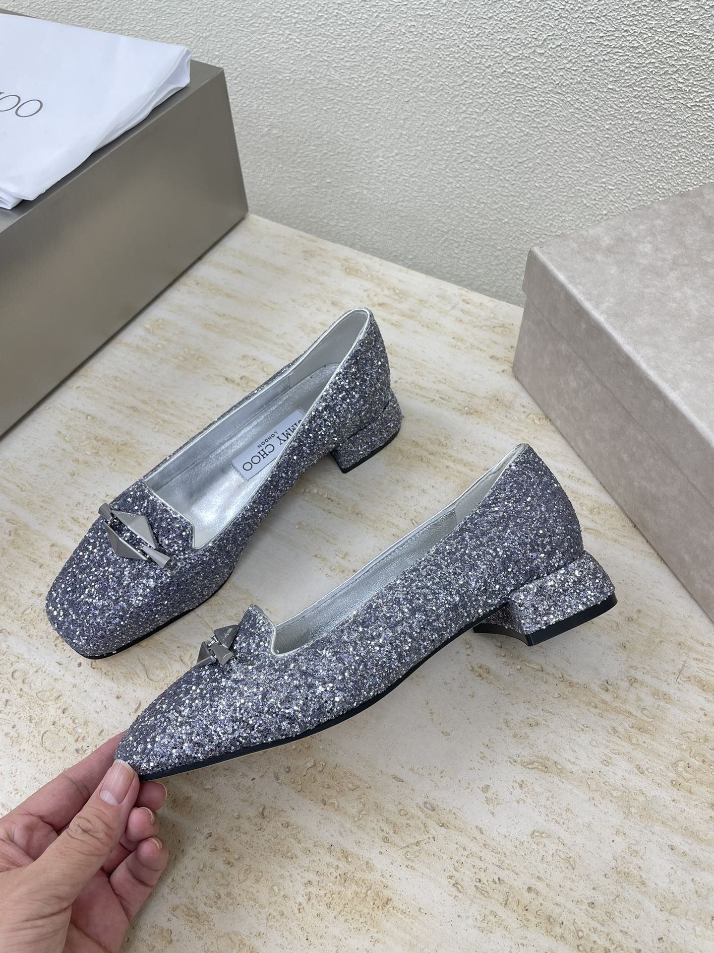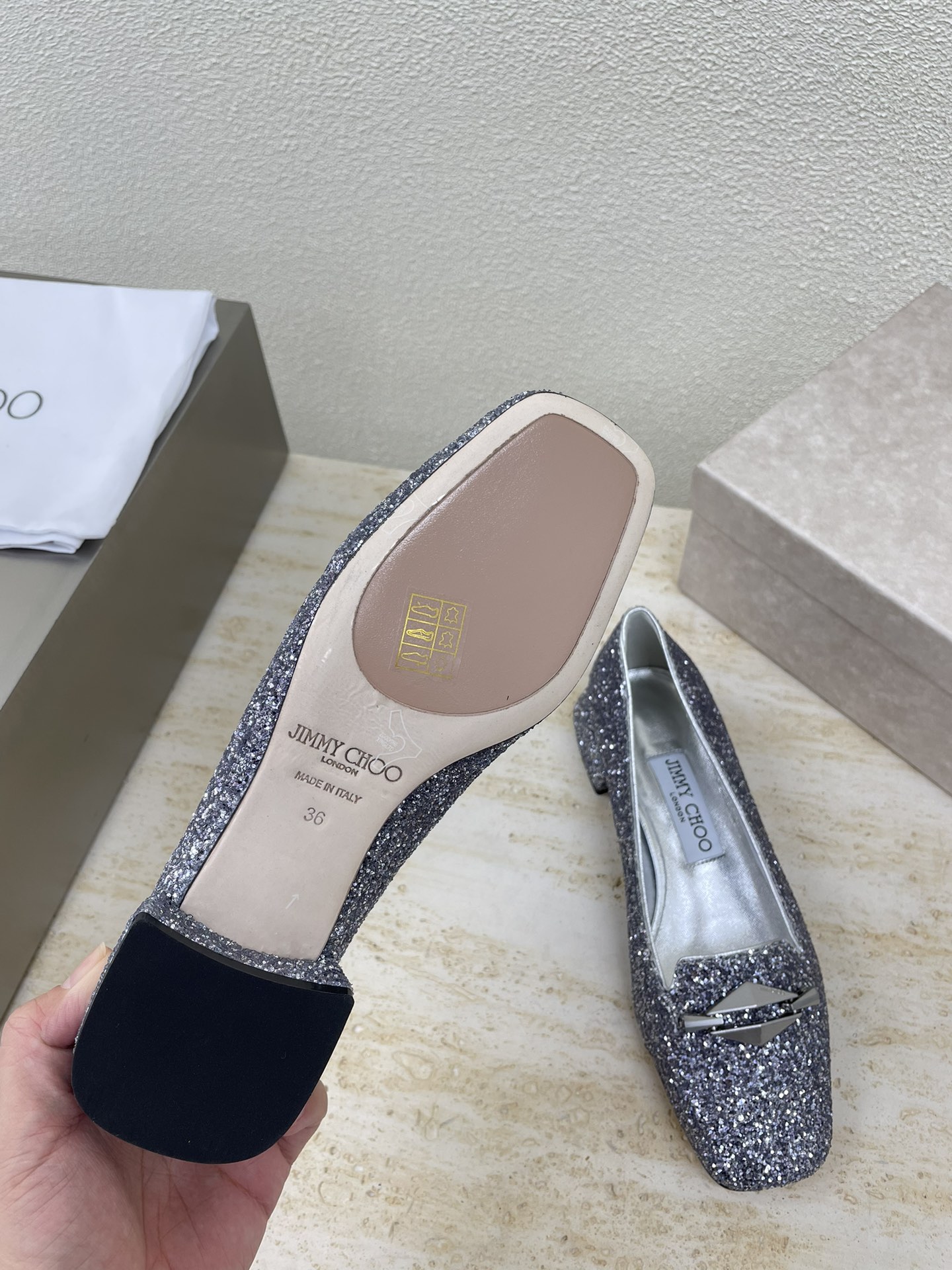 这款鞋子是AAAAA 1:1 质量 (非常棒). 使用了和原版一模一样的材料. 商标部分也保持了和吉米乔/JIMMY CHOO一样. 图片拍摄是实物鞋子拍摄, 您所收到的实物保证和我们图片一模一样.