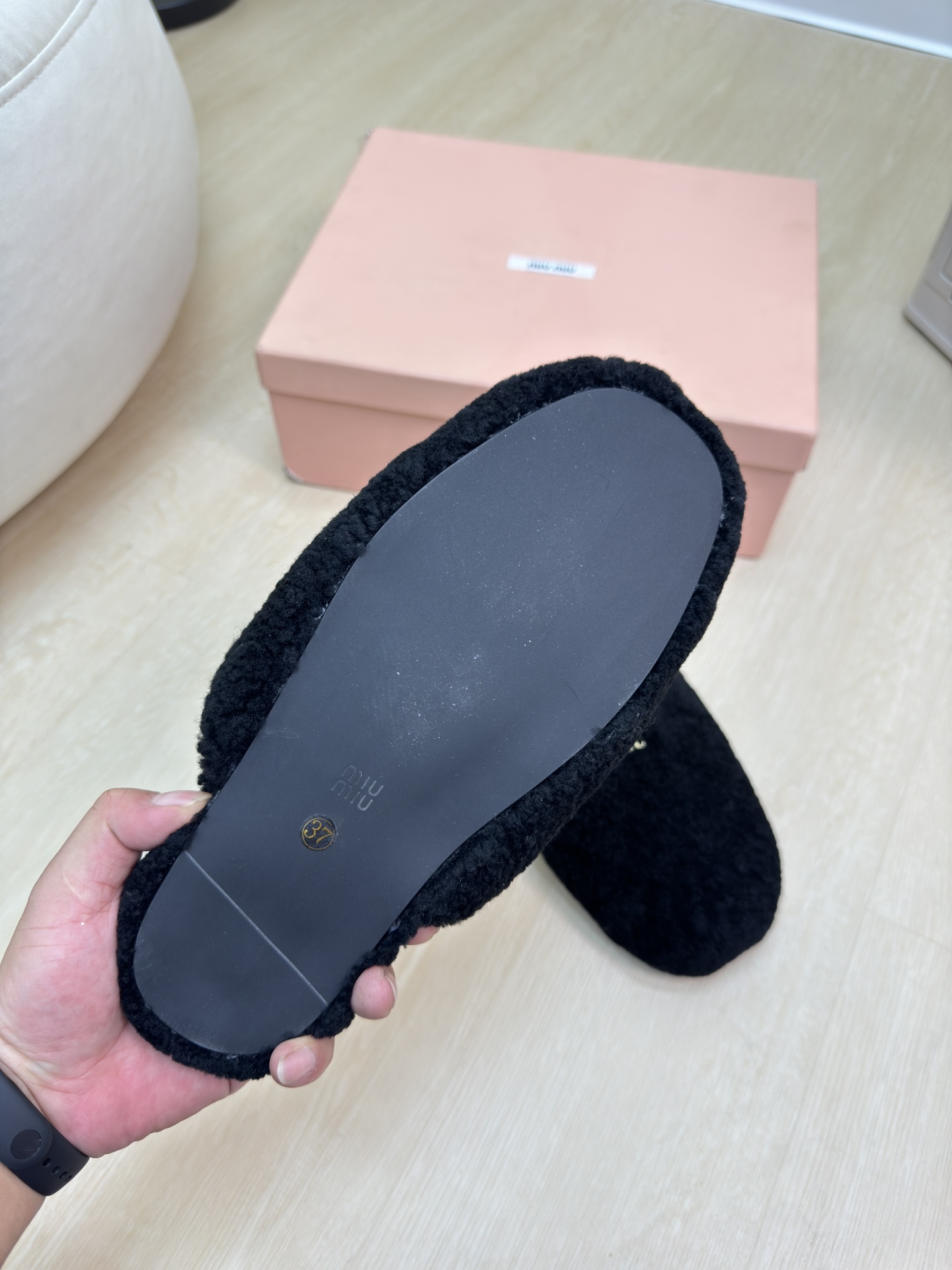 这款鞋子是AAAAA 1:1 质量 (非常棒). 使用了和原版一模一样的材料. 商标部分也保持了和缪缪/Miu Miu一样. 图片拍摄是实物鞋子拍摄, 您所收到的实物保证和我们图片一模一样.