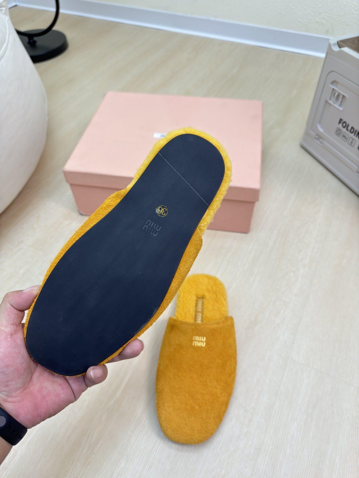 这款鞋子是AAAAA 1:1 质量 (非常棒). 使用了和原版一模一样的材料. 商标部分也保持了和缪缪/Miu Miu一样. 图片拍摄是实物鞋子拍摄, 您所收到的实物保证和我们图片一模一样.