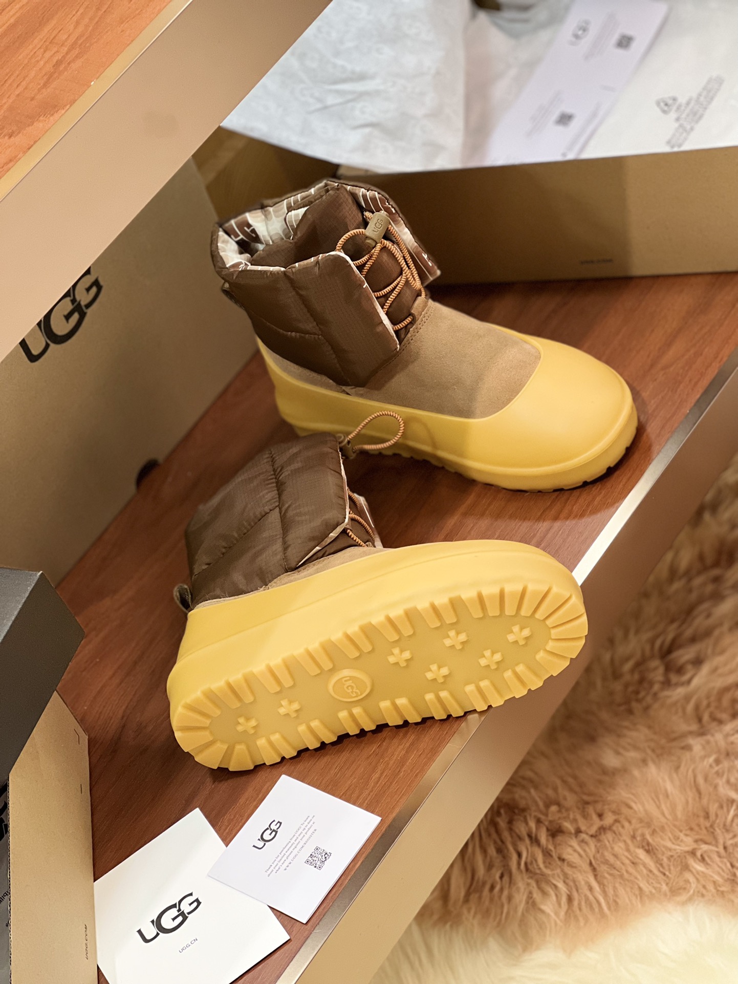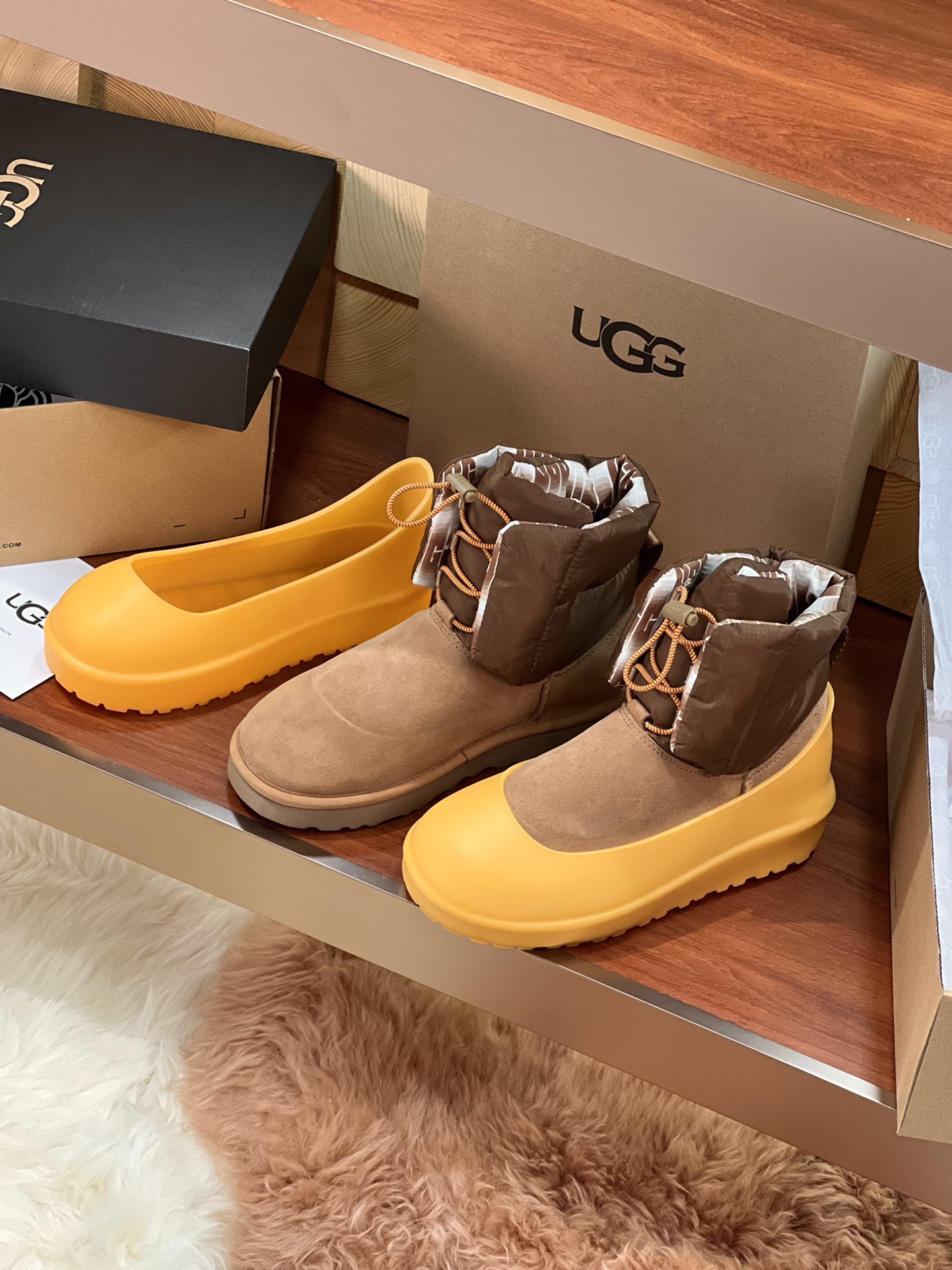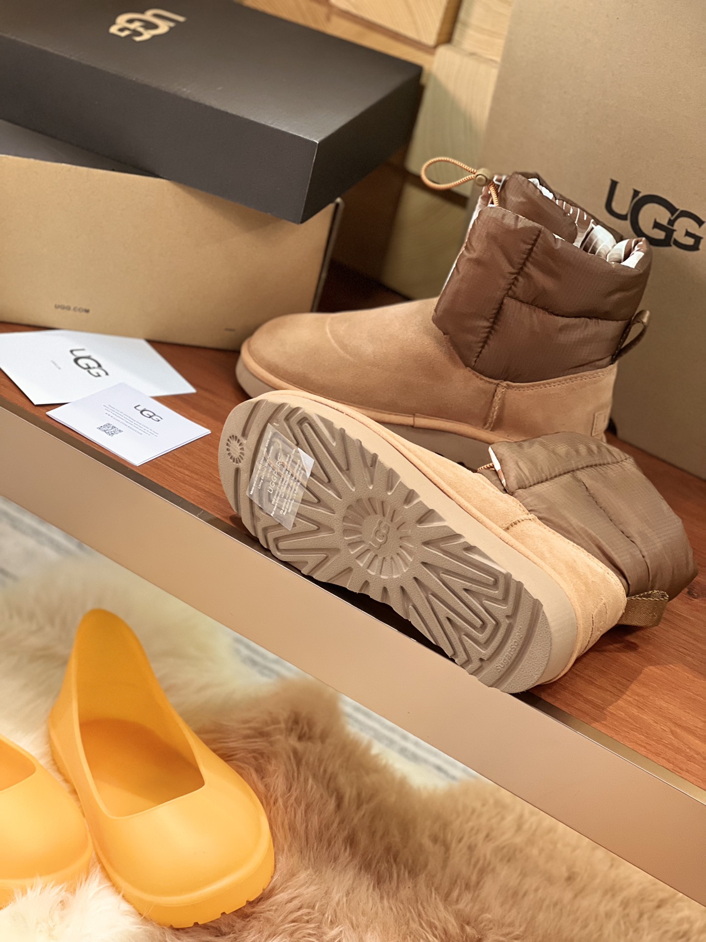 这款鞋子是AAAAA 1:1 质量 (非常棒). 使用了和原版一模一样的材料. 商标部分也保持了和UGG雪地靴一样. 图片拍摄是实物鞋子拍摄, 您所收到的实物保证和我们图片一模一样.