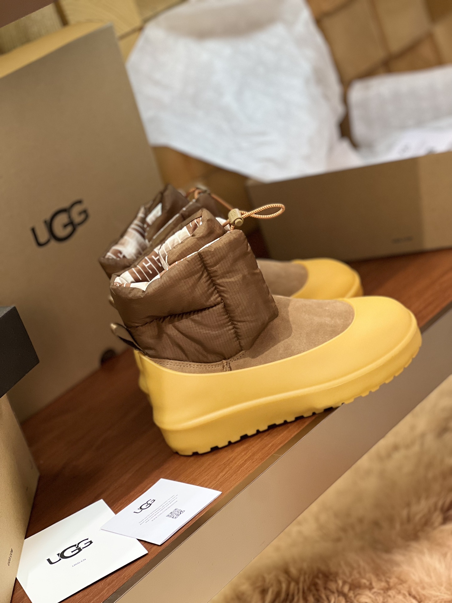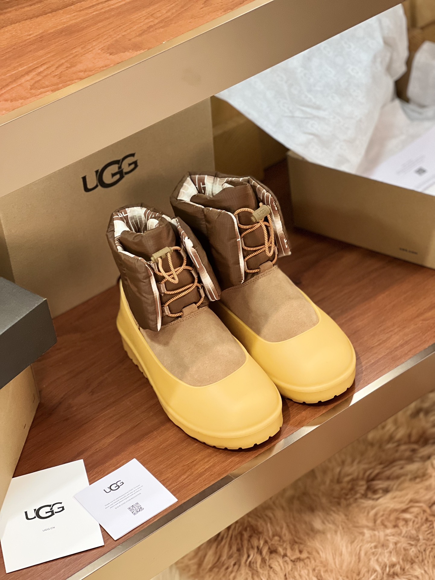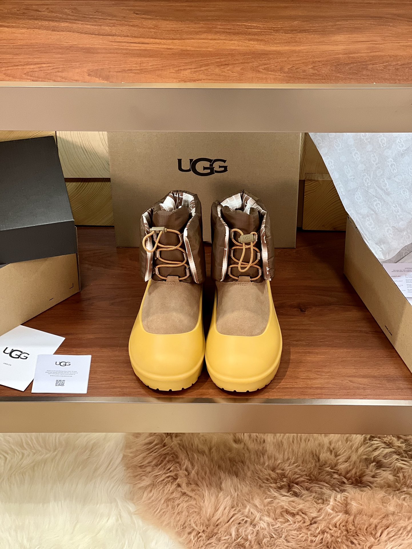 这款鞋子是AAAAA 1:1 质量 (非常棒). 使用了和原版一模一样的材料. 商标部分也保持了和UGG雪地靴一样. 图片拍摄是实物鞋子拍摄, 您所收到的实物保证和我们图片一模一样.