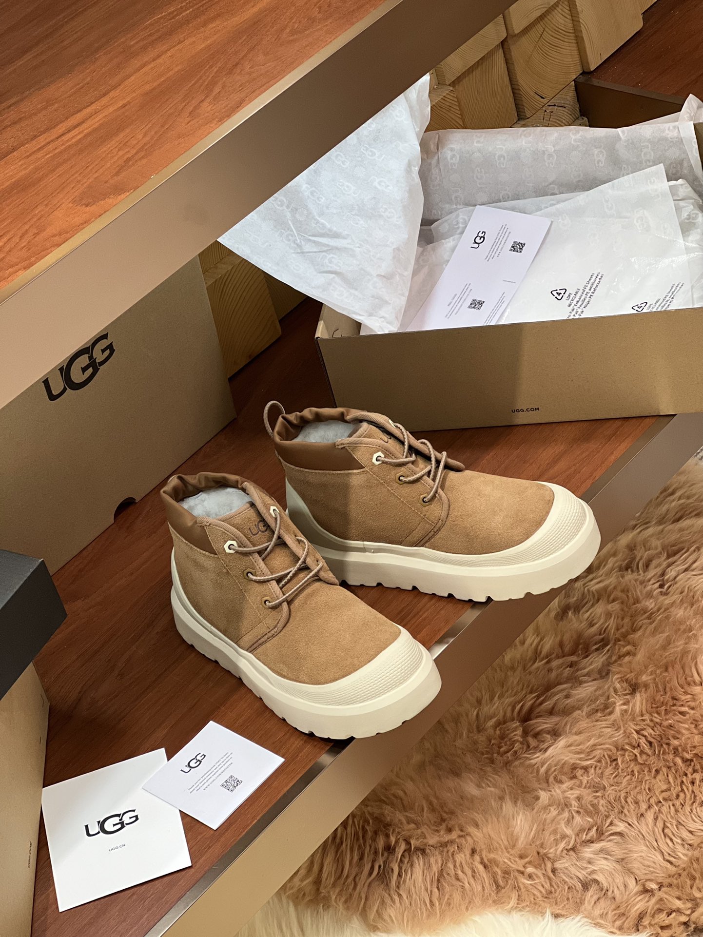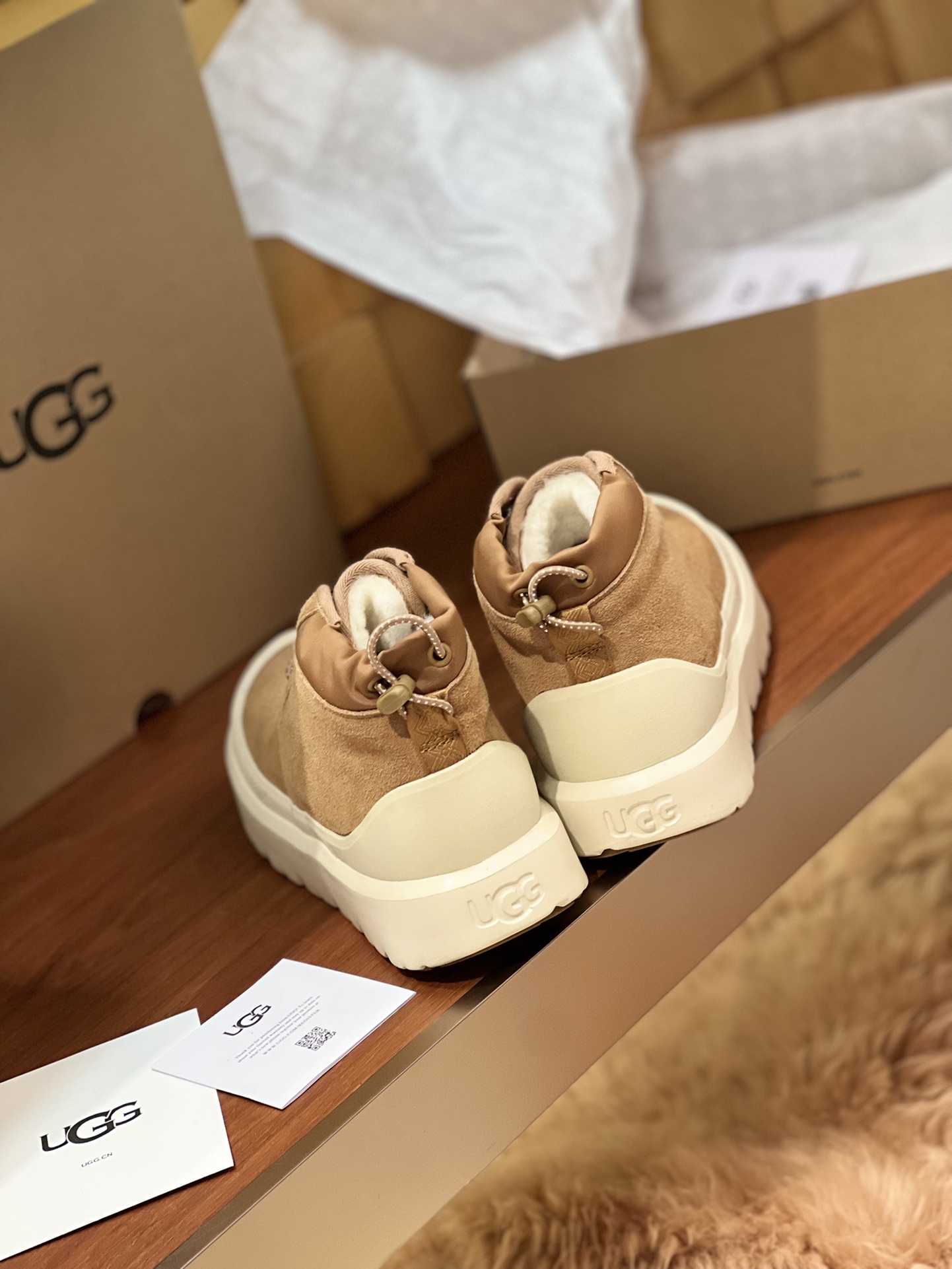 这款鞋子是AAAAA 1:1 质量 (非常棒). 使用了和原版一模一样的材料. 商标部分也保持了和UGG雪地靴一样. 图片拍摄是实物鞋子拍摄, 您所收到的实物保证和我们图片一模一样.