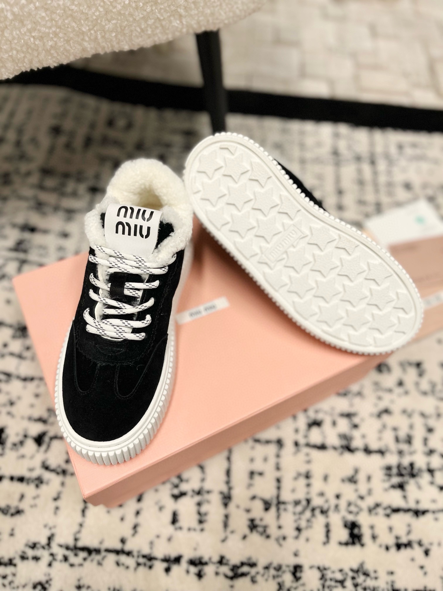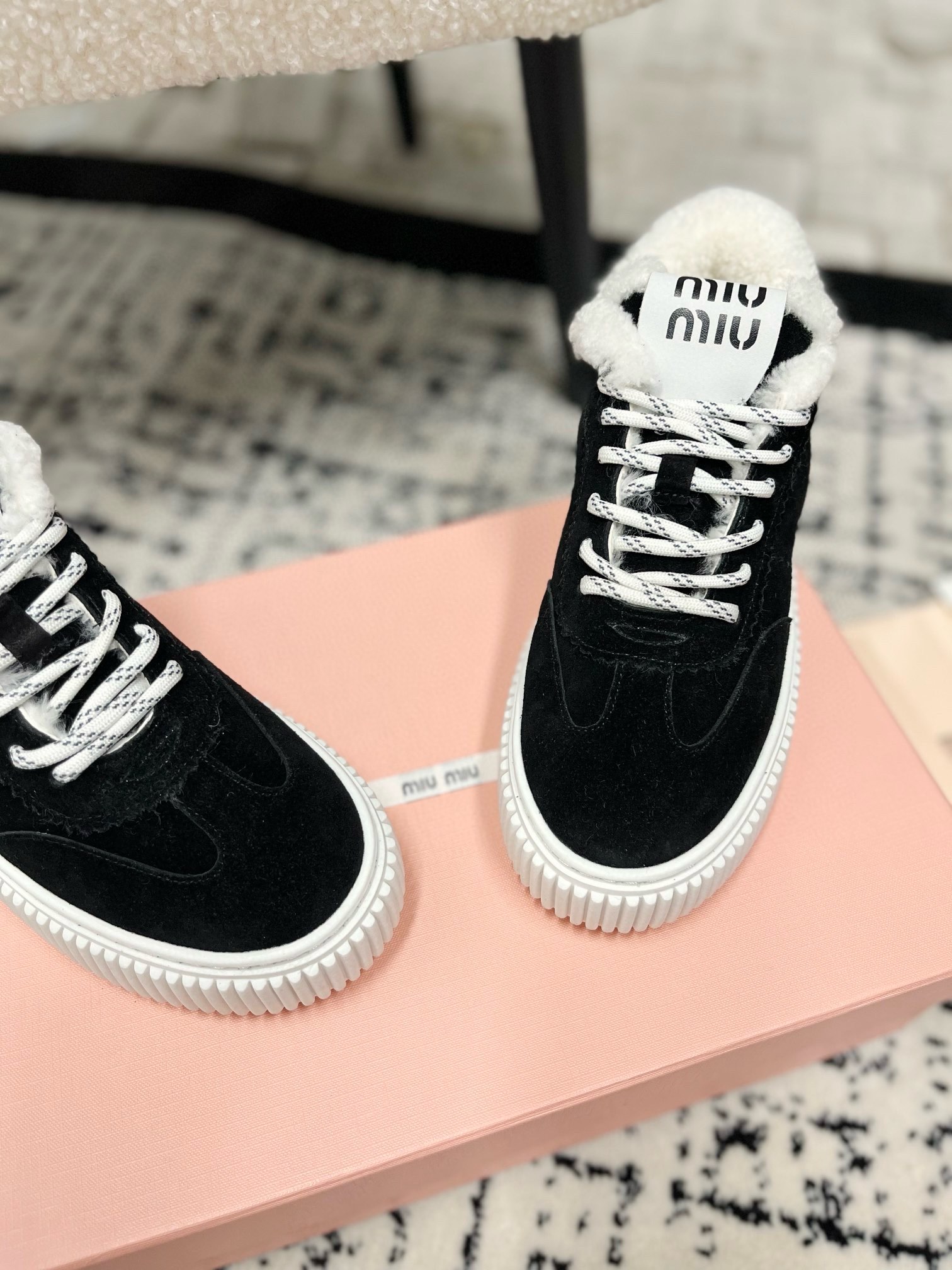 这款鞋子是AAAAA 1:1 质量 (非常棒). 使用了和原版一模一样的材料. 商标部分也保持了和缪缪/Miu Miu一样. 图片拍摄是实物鞋子拍摄, 您所收到的实物保证和我们图片一模一样.