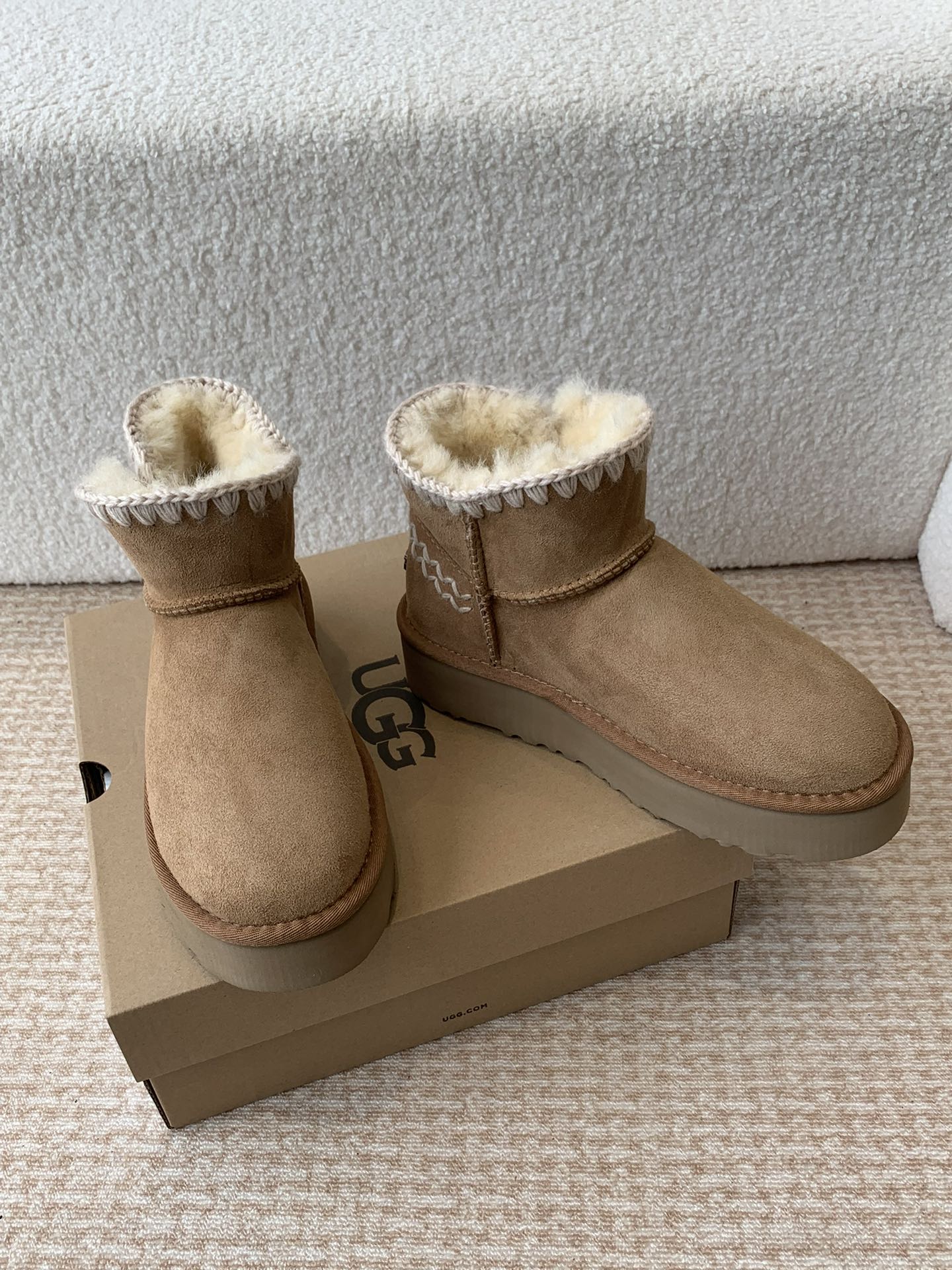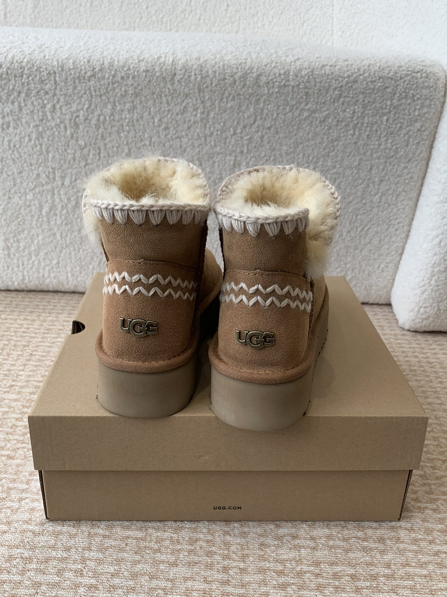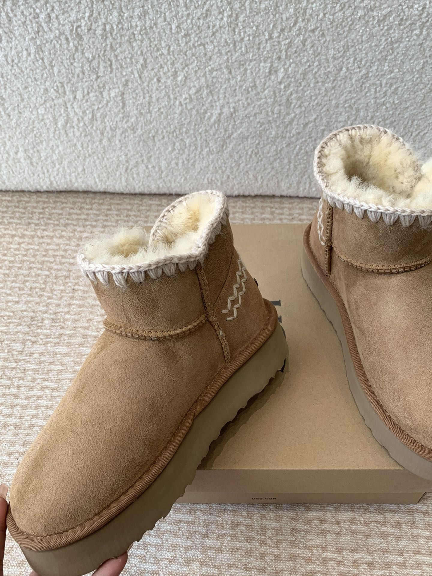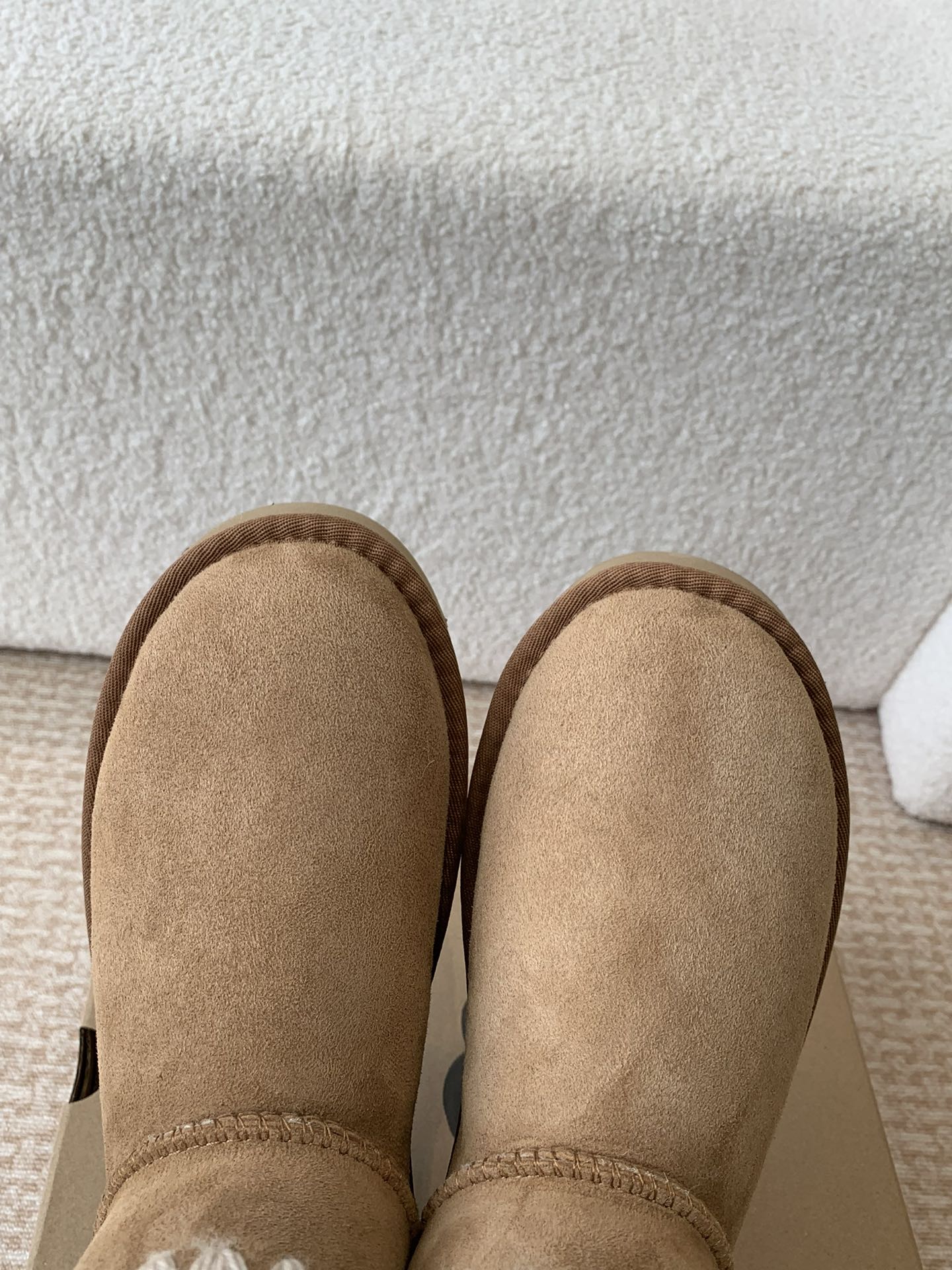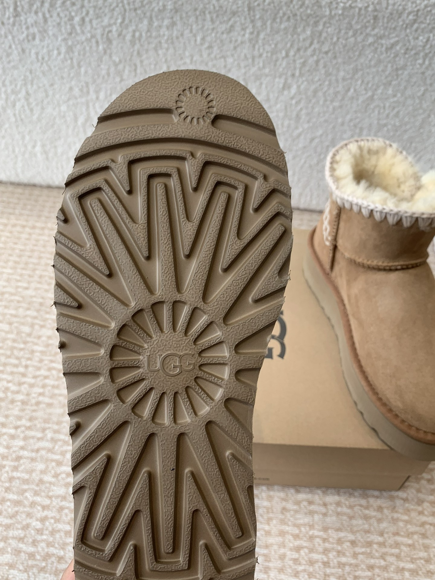 这款鞋子是AAAAA 1:1 质量 (非常棒). 使用了和原版一模一样的材料. 商标部分也保持了和UGG雪地靴一样. 图片拍摄是实物鞋子拍摄, 您所收到的实物保证和我们图片一模一样.