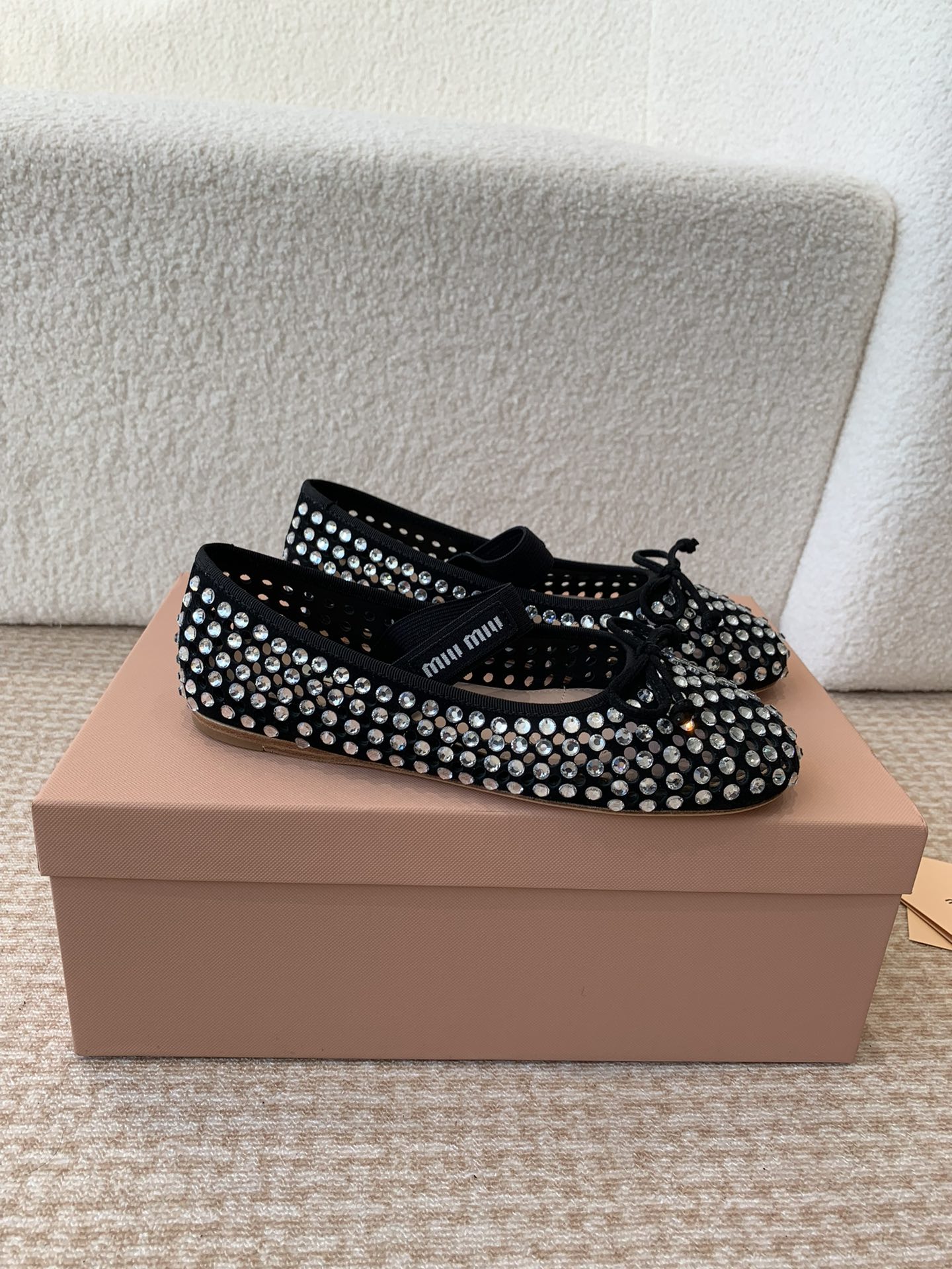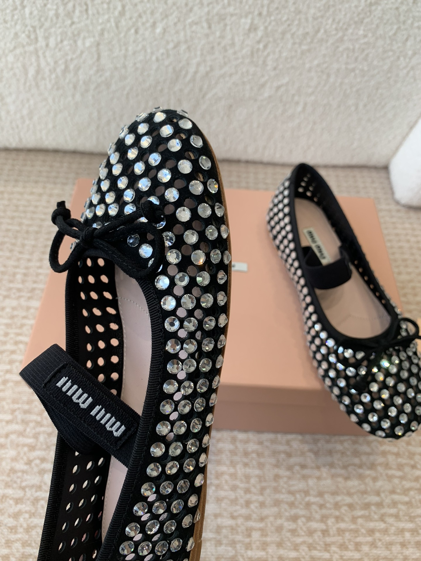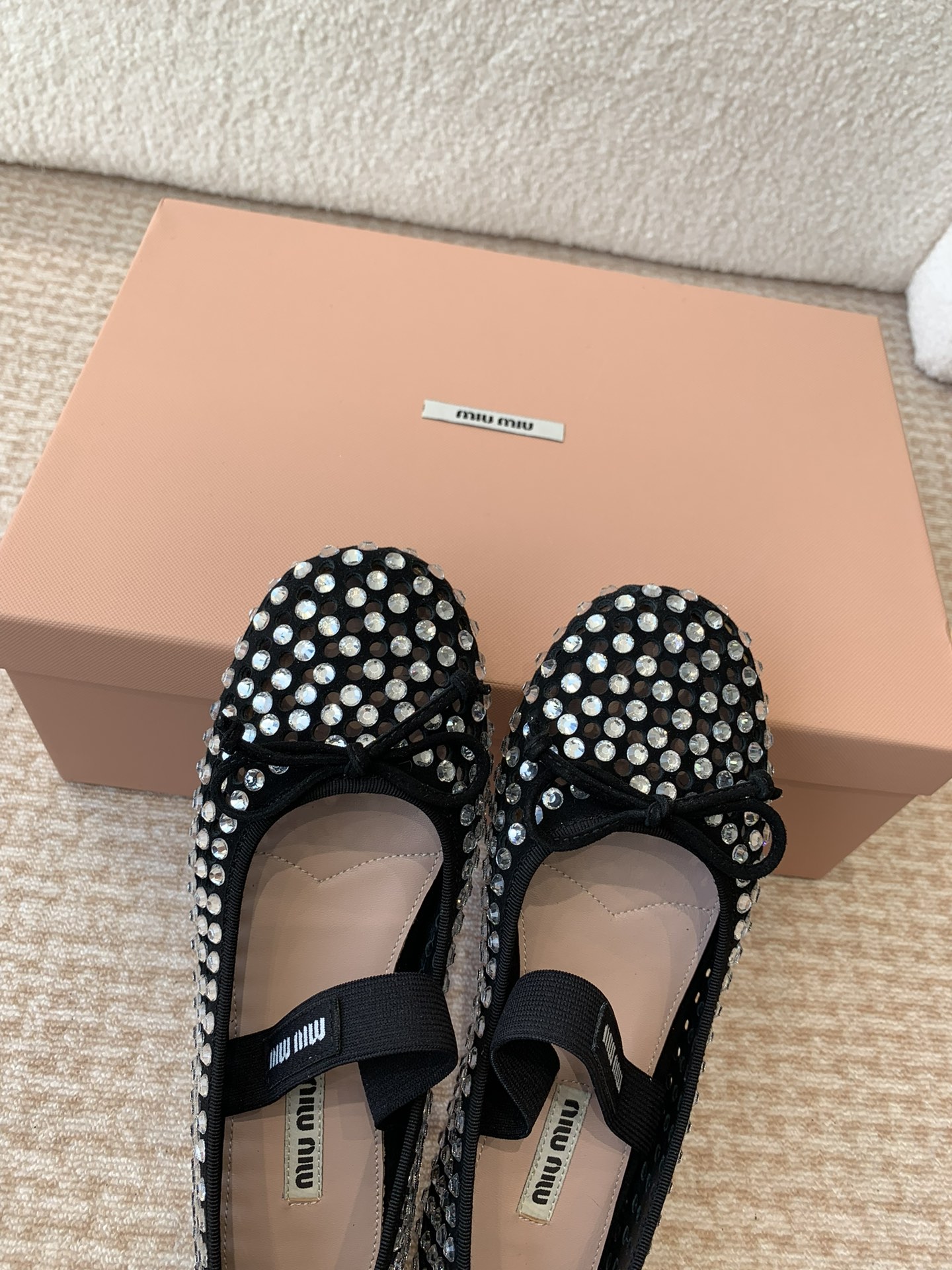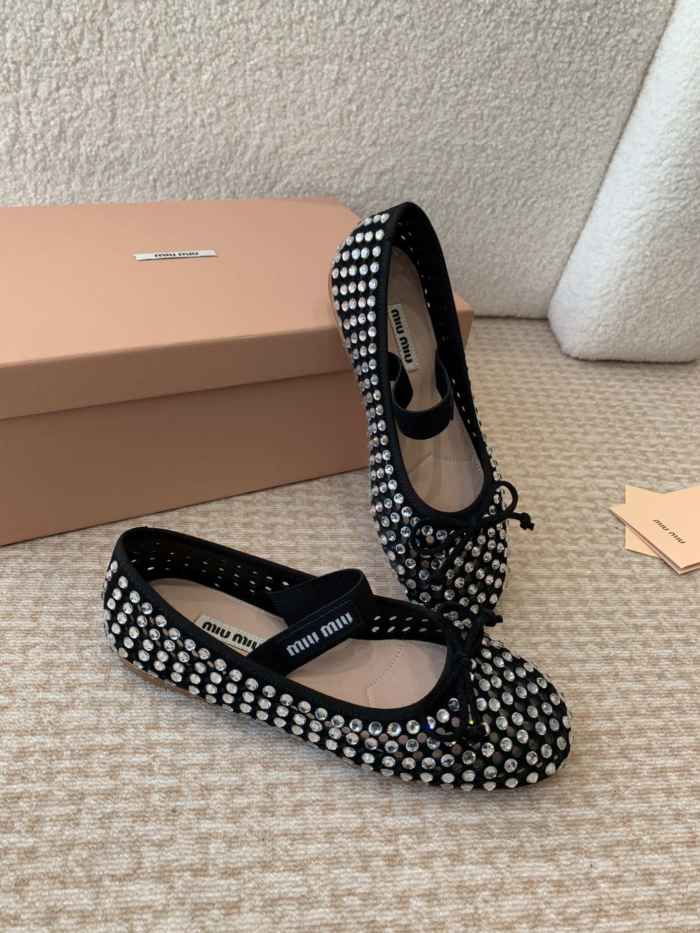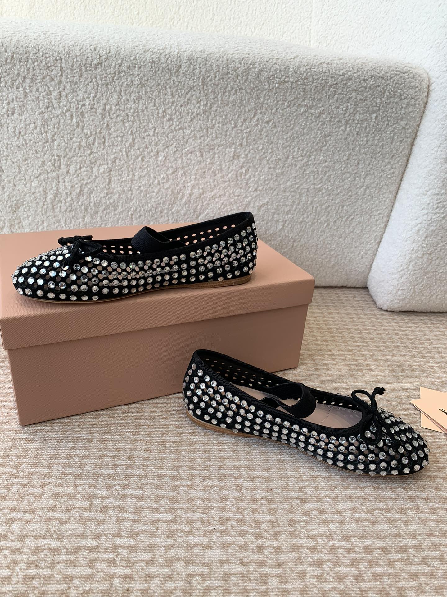 这款鞋子是AAAAA 1:1 质量 (非常棒). 使用了和原版一模一样的材料. 商标部分也保持了和缪缪/Miu Miu一样. 图片拍摄是实物鞋子拍摄, 您所收到的实物保证和我们图片一模一样.