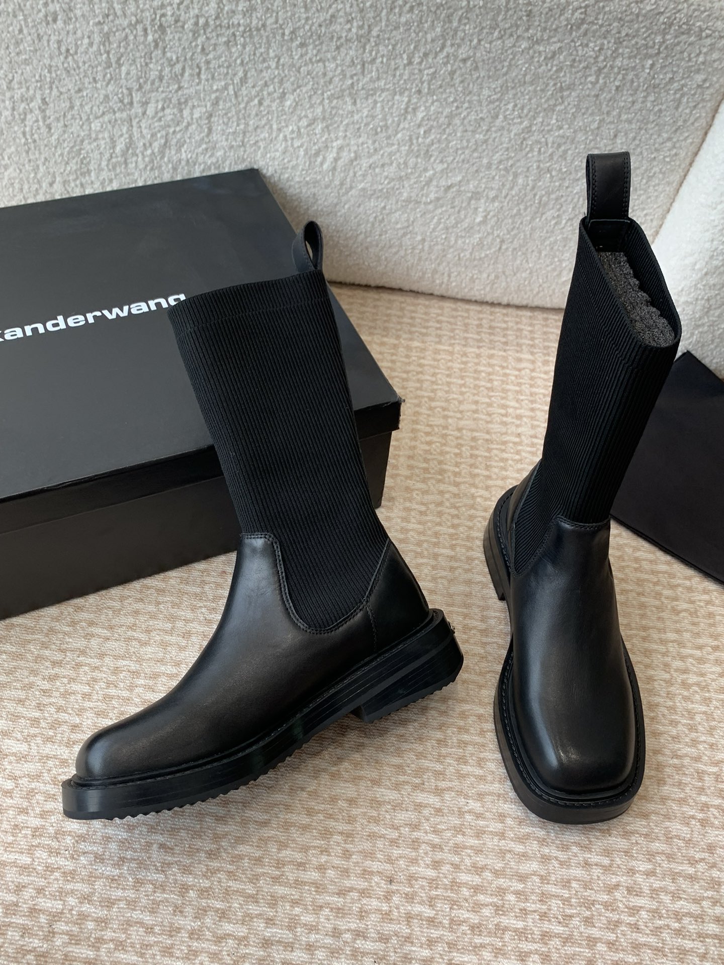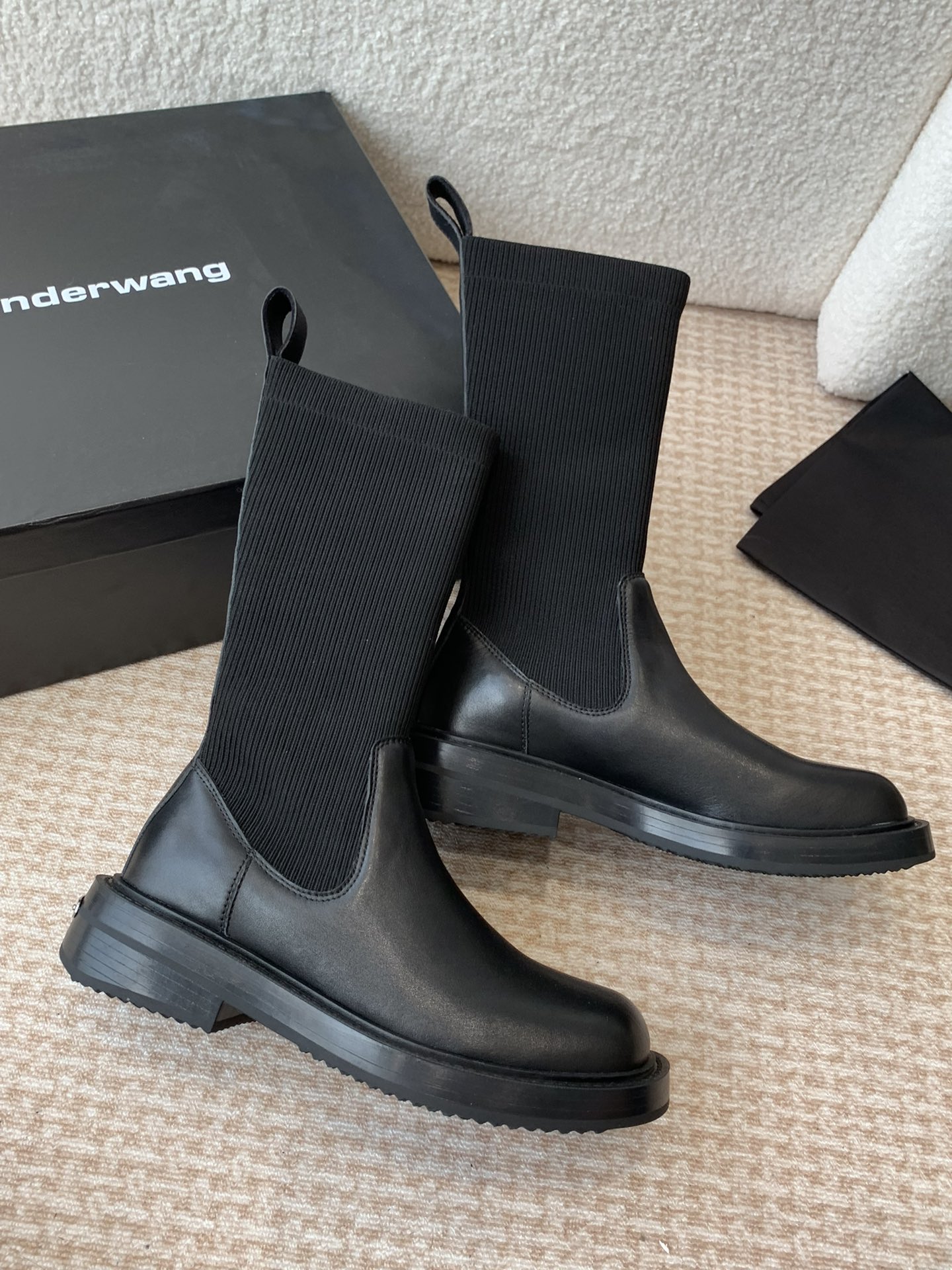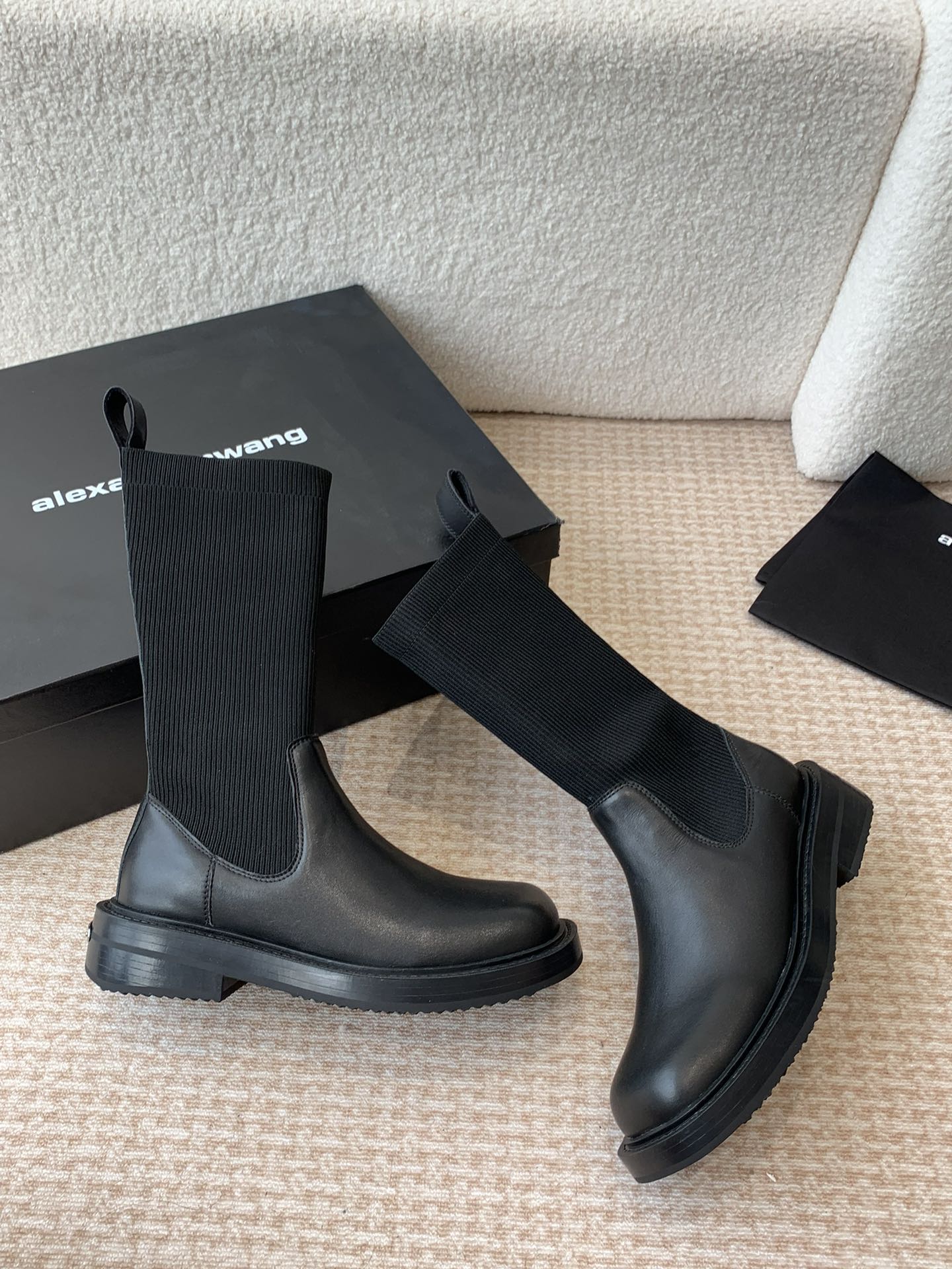 这款鞋子是AAAAA 1:1 质量 (非常棒). 使用了和原版一模一样的材料. 商标部分也保持了和亚历山大王/Alexander Wang一样. 图片拍摄是实物鞋子拍摄, 您所收到的实物保证和我们图片一模一样.