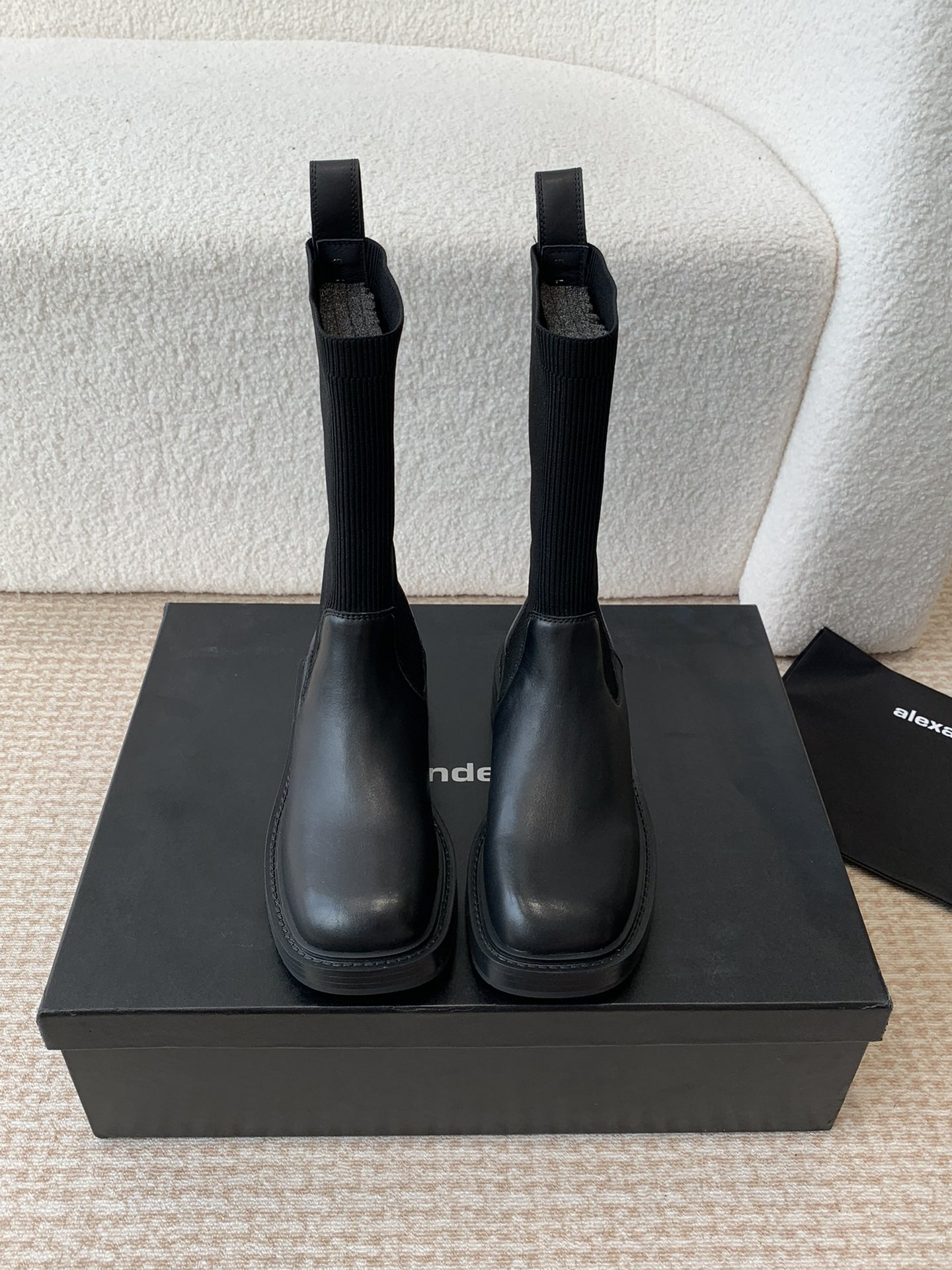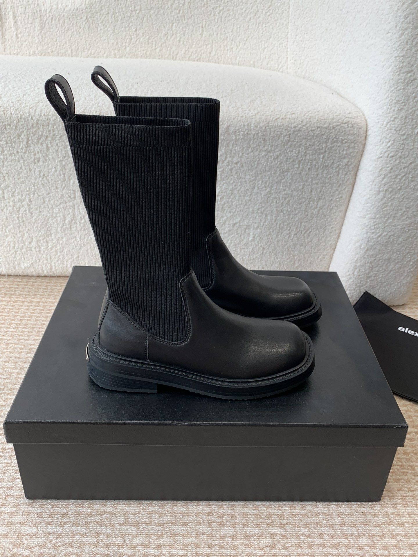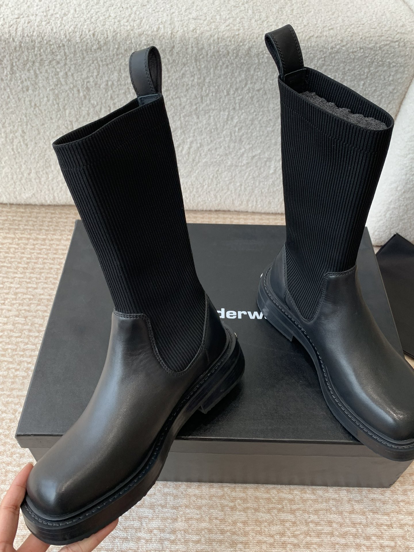 这款鞋子是AAAAA 1:1 质量 (非常棒). 使用了和原版一模一样的材料. 商标部分也保持了和亚历山大王/Alexander Wang一样. 图片拍摄是实物鞋子拍摄, 您所收到的实物保证和我们图片一模一样.